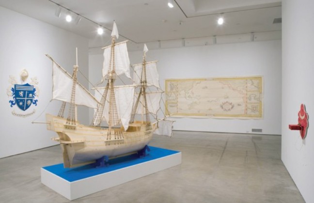 Salah satu instalasi yang ada adalah teleskop. Teropong jarak jauh saat diintip oleh para pengunjung maka akan menyajikan material-material kolonialisasi seperti rambut palsu yang biasa dipakai oleh hakim di Eropa.
