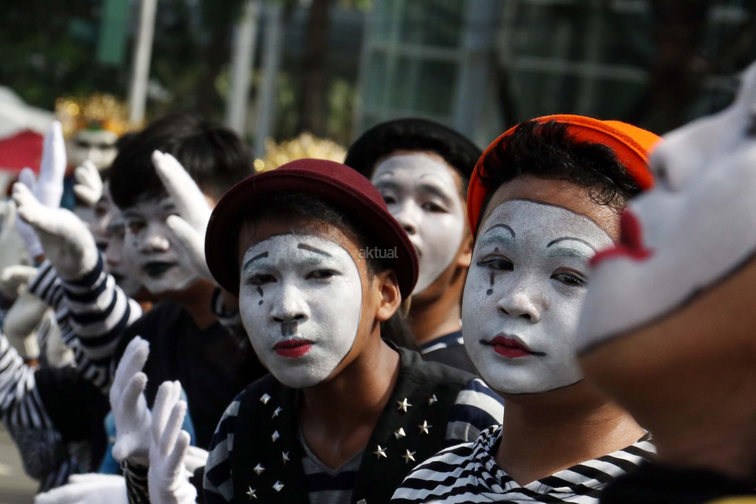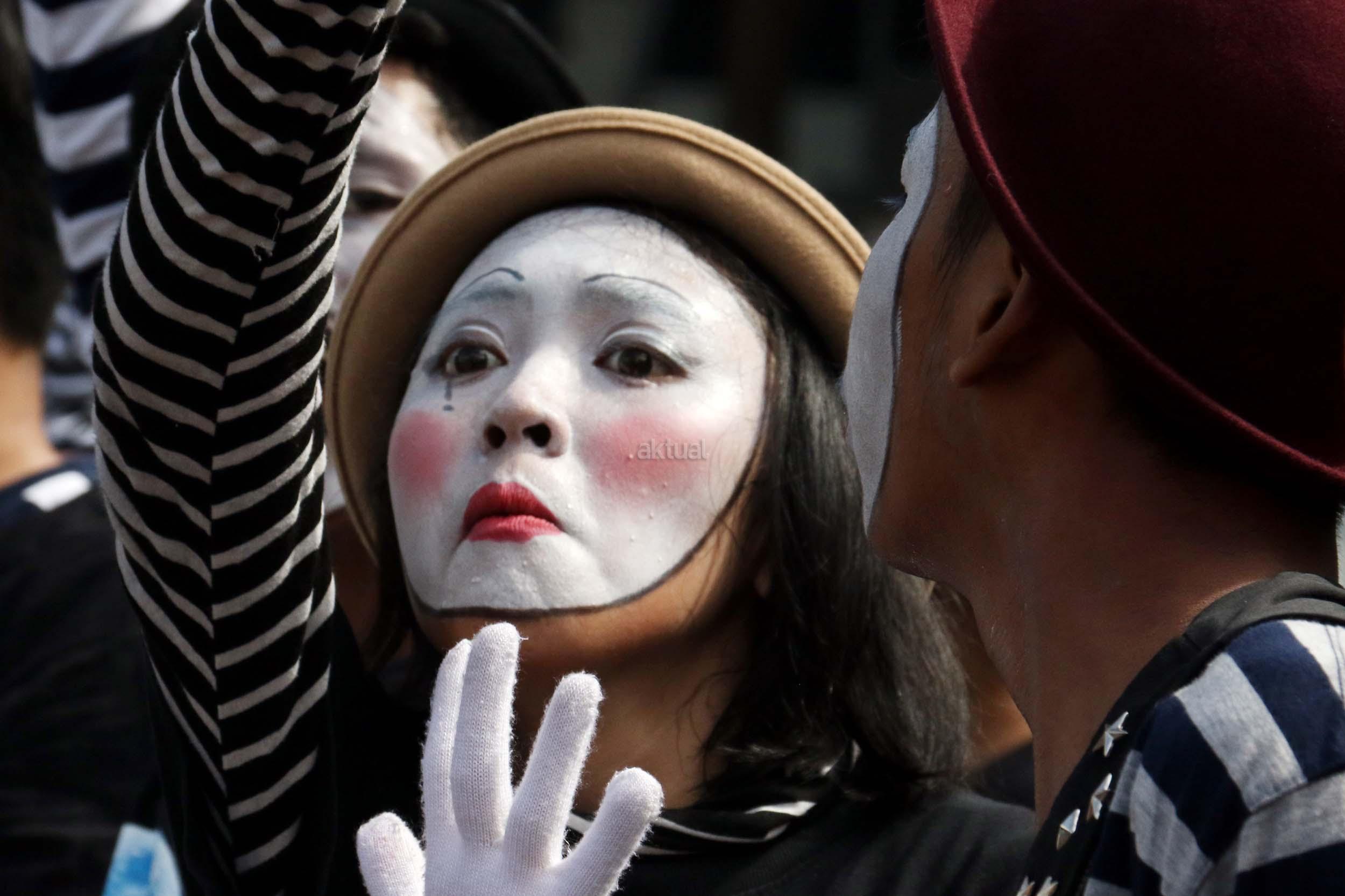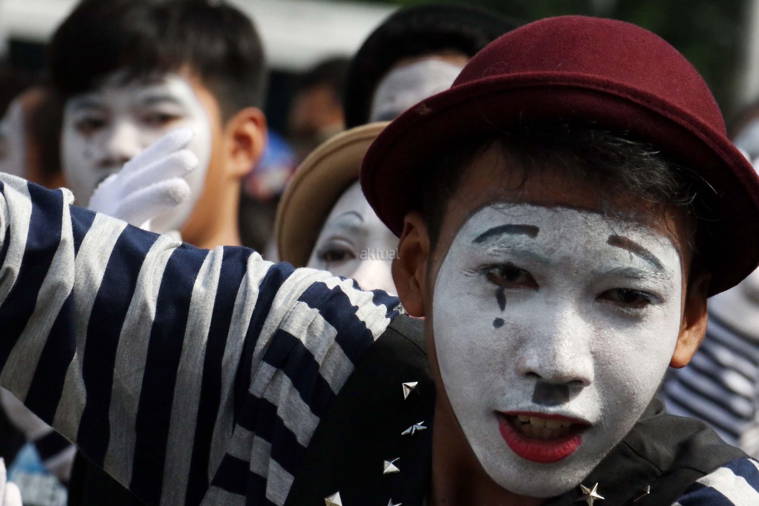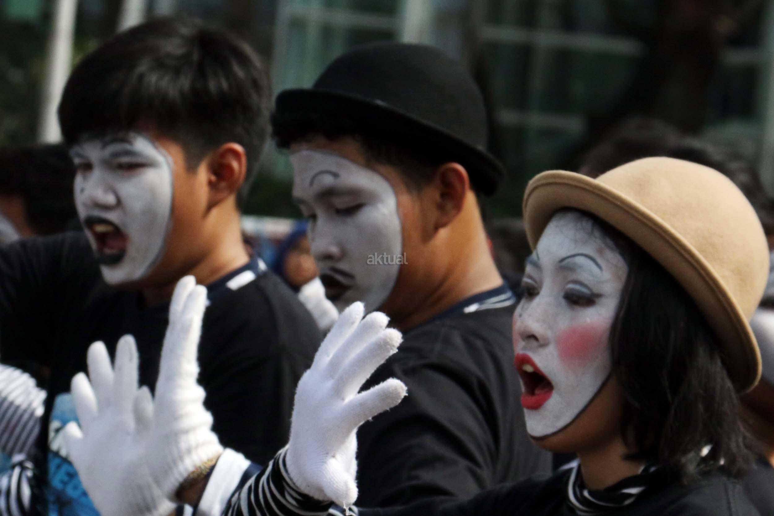 Sejumlah komunitas Pantomim saat beraksi di CFD, Jakarta, Minggu (19/3/2017). Aksi komunitas tersebut untuk memperingati World Mime Day 2017 yang jatuh setiap tanggal 22 Maret. AKTUAL/Munzir
