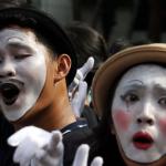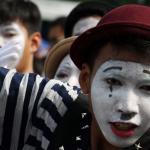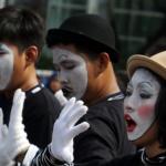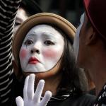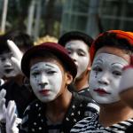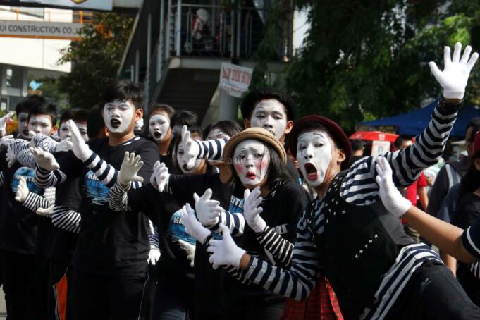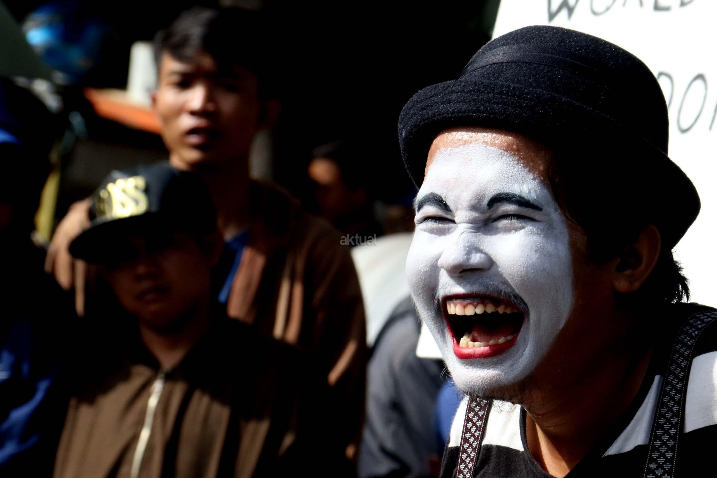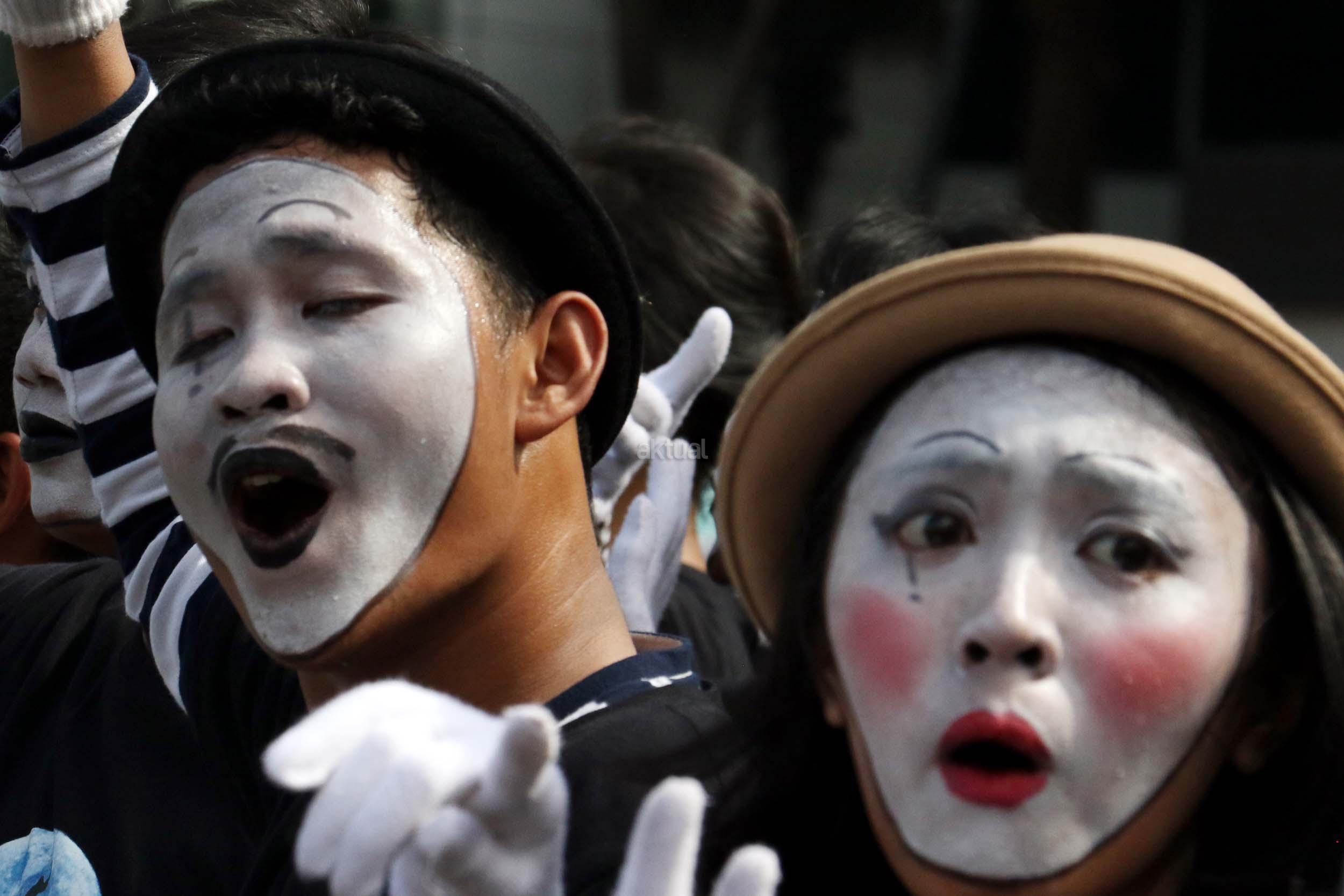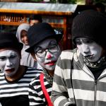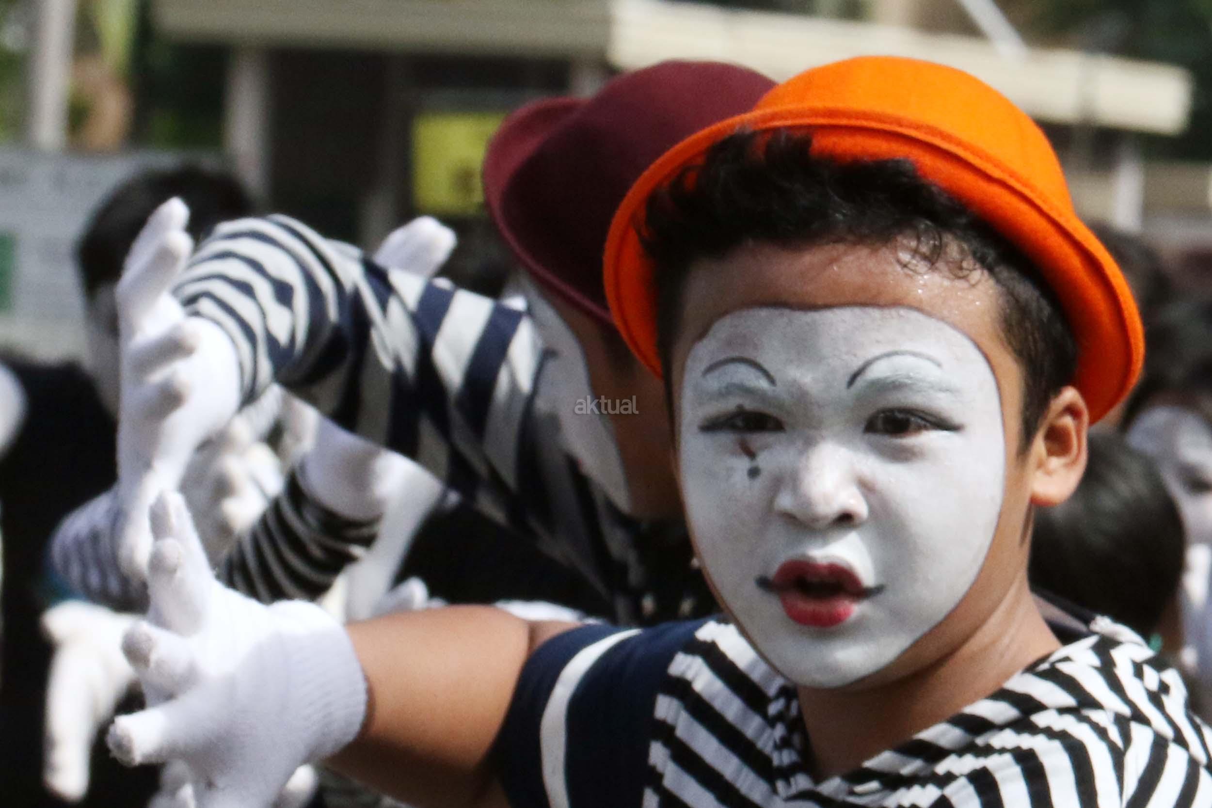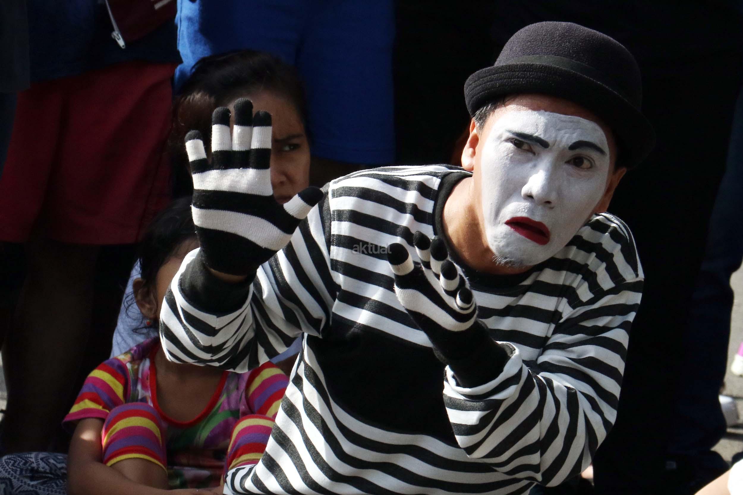 Sejumlah komunitas Pantomim saat beraksi di CFD, Jakarta, Minggu (19/3/2017). Aksi komunitas tersebut untuk memperingati World Mime Day 2017 yang jatuh setiap tanggal 22 Maret. AKTUAL/Munzir