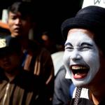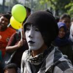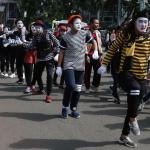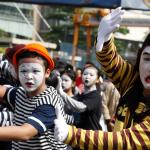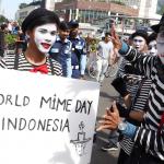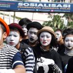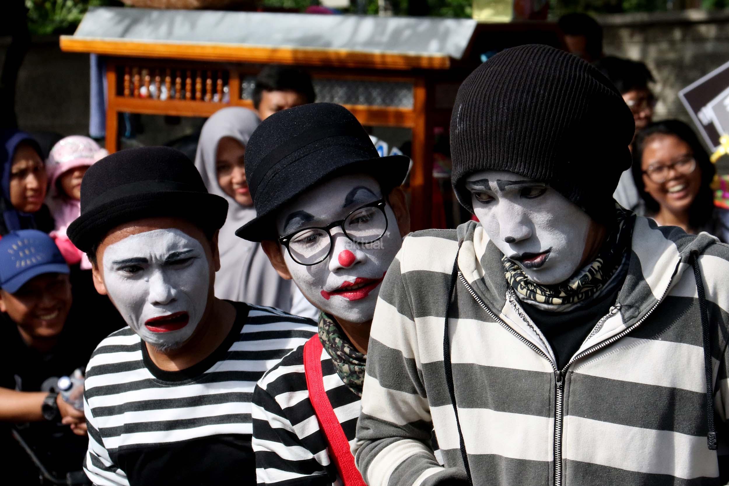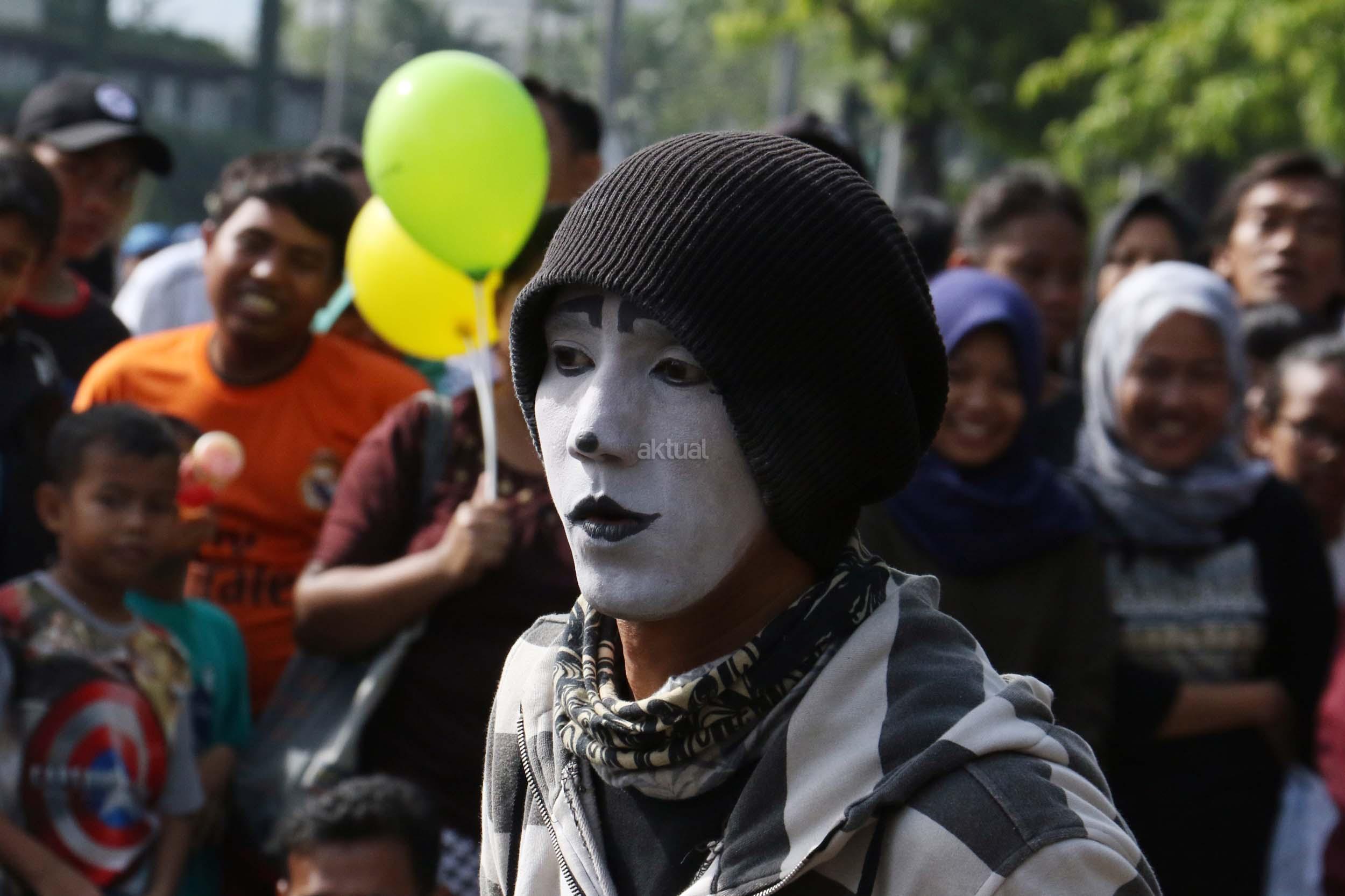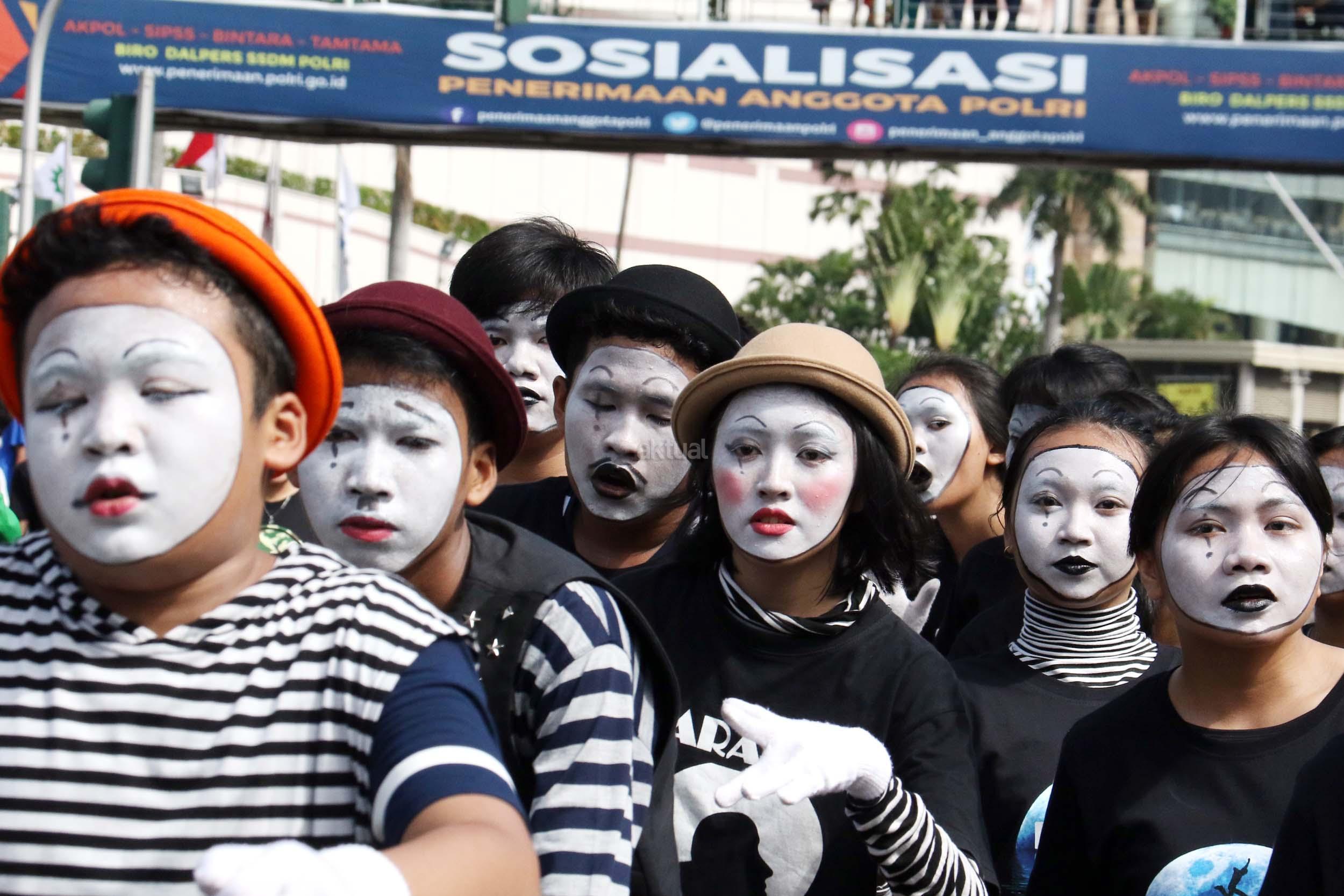Sejumlah komunitas Pantomim saat beraksi di CFD, Jakarta, Minggu (19/3/2017). Aksi komunitas tersebut untuk memperingati World Mime Day 2017 yang jatuh setiap tanggal 22 Maret.