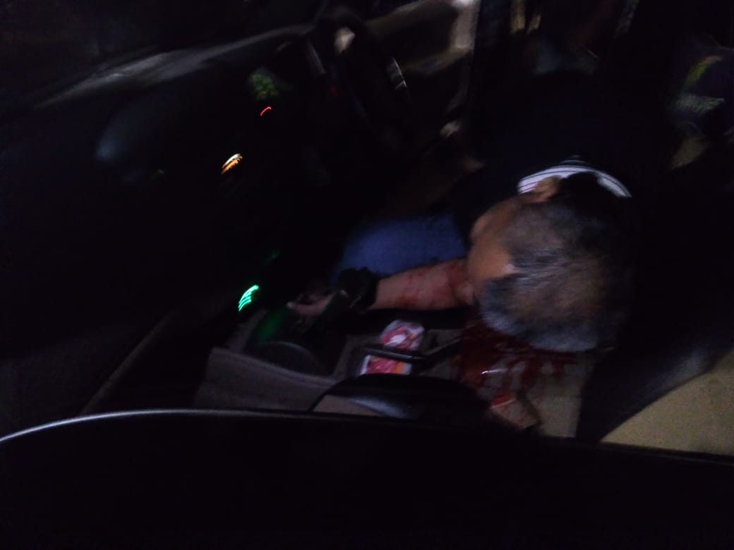 Di dalam mobil, korban terlihat pingsan dengan bersimbah darah yang memenuhi kursi kemudi. Karena darah bercipratan dimana-mana, Law-justice.co hanya mengambil gambar korban dari sisi sebelah yang tidak terlihat langsung kengerian kondisi korban.