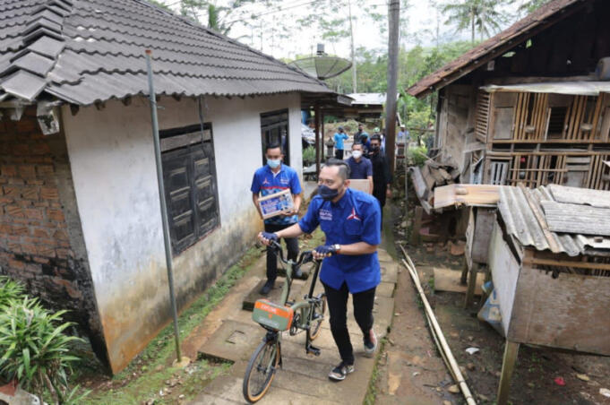 Dengan mengayuh sepedanya menuju rumah-rumah warga, Ibas menyambangi dan memberikan sembako secara langsung di Desa Ketro Wonojoyo, Kabupaten Pacitan (6/3/2022). Anggota DPR RI Dapil Jatim VII ini membagikan sebanyak 12.000 paket sembako dalam kegiatan resesnya tersebut. Terdiri dari minyak goreng, beras, susu, gula, dan mie instan.