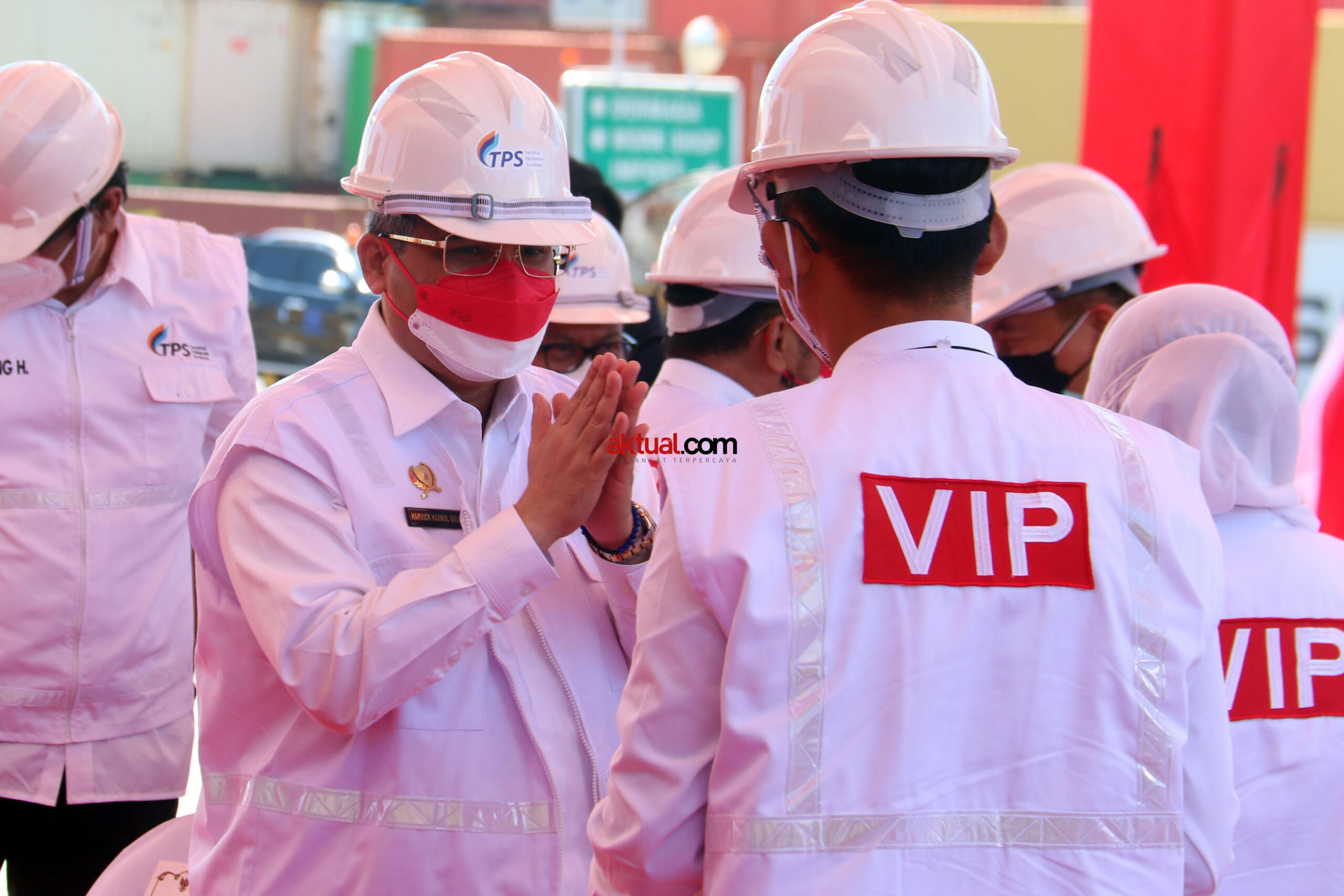 Wakil Menteri Pertanian, Harvick Hasnul Qolbi saat ramah tamah dengan sejumlah undangan yang hadir usai mengikuti seremoni pelepasan Merdeka Ekspor Pertanian oleh Presiden Joko Widodo, yang diikuti oleh jajaran kabinet juga kepala daerah secara virtual di Pelabuhan Tanjung Perak, Surabaya, pada Sabtu (14/8/2021). Kegiatan ini dilakukan secara serentak di sejumlah pelabuhan di Indonesia. (Foto: Aktual / Warnoto)