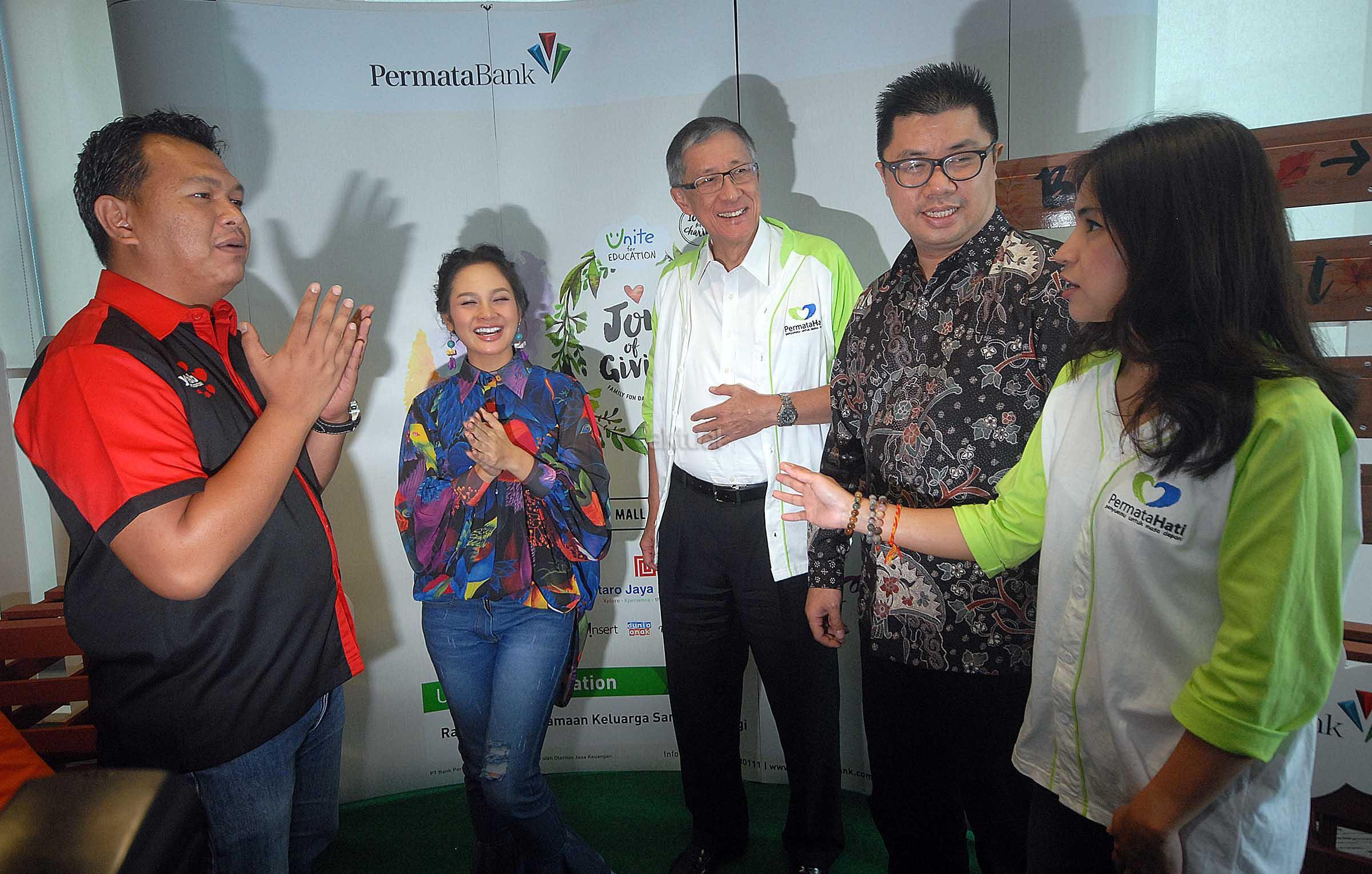 Pekerja Seni yang banyak bergiat di kegiatan sosial, Andien (tengah) bersama Chief Operating Officer Yayasan Cinta Anak Bangsa (YCAB), Firza Imam Putra saat jumpa pers rencana penyelenggaraan Unite For Education di Jakarta, Kamis, 15 September 2016. Kegaiatan penggalangan dana pendidikan melalui donasi korporasi dan masyarakat tersebut akan dikemas kembali untuk keriaan bagi masyarakat dan kleuarga bertajuk ” Joy of Giving” di Bintaro Exchange (BXC) pada tanggal 24-25 September 2015 mendatang. PermataBank bersama mitra strategis dan melalui partisipasi aktif 10.719 karyawan sebagai Employee Volunteer (EVO) telah memberikan beasiswa kepada 4.153 anak. Hingga Agustus 2016 ,kontribusi PermataHati tercatat Rp 6.019.776.500 guna meningkatkan kualitas pendidikan di Indonesia melalui beragam aktifitas berdimensi Tanggung Jawab Sosial Perusahaan.