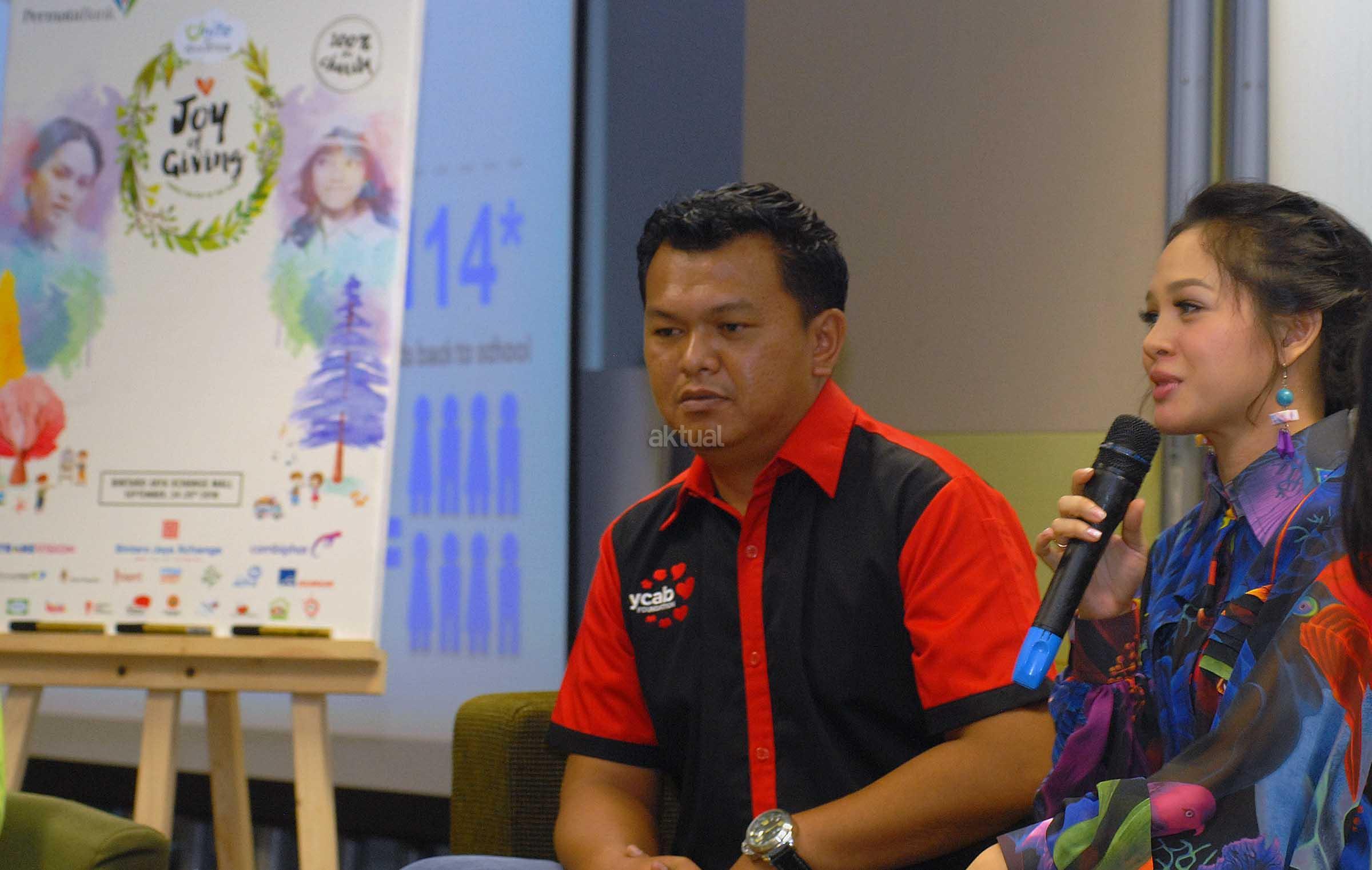 Pekerja Seni yang banyak bergiat di kegiatan sosial, Andien (kanan) bersama Chief Operating Officer Yayasan Cinta Anak Bangsa (YCAB), Firza Imam Putra saat jumpa pers rencana penyelenggaraan Unite For Education di Jakarta, Kamis, 15 September 2016. Kegaiatan penggalangan dana pendidikan melalui donasi korporasi dan masyarakat tersebut akan dikemas kembali untuk keriaan bagi masyarakat dan kleuarga bertajuk ” Joy of Giving” di Bintaro Exchange (BXC) pada tanggal 24-25 September 2015 mendatang. PermataBank bersama mitra strategis dan melalui partisipasi aktif 10.719 karyawan sebagai Employee Volunteer (EVO) telah memberikan beasiswa kepada 4.153 anak. Hingga Agustus 2016 ,kontribusi PermataHati tercatat Rp 6.019.776.500 guna meningkatkan kualitas pendidikan di Indonesia melalui beragam aktifitas berdimensi Tanggung Jawab Sosial Perusahaan.