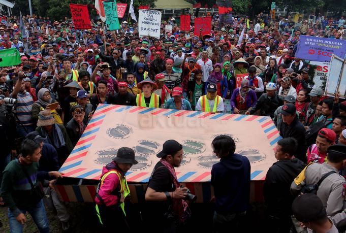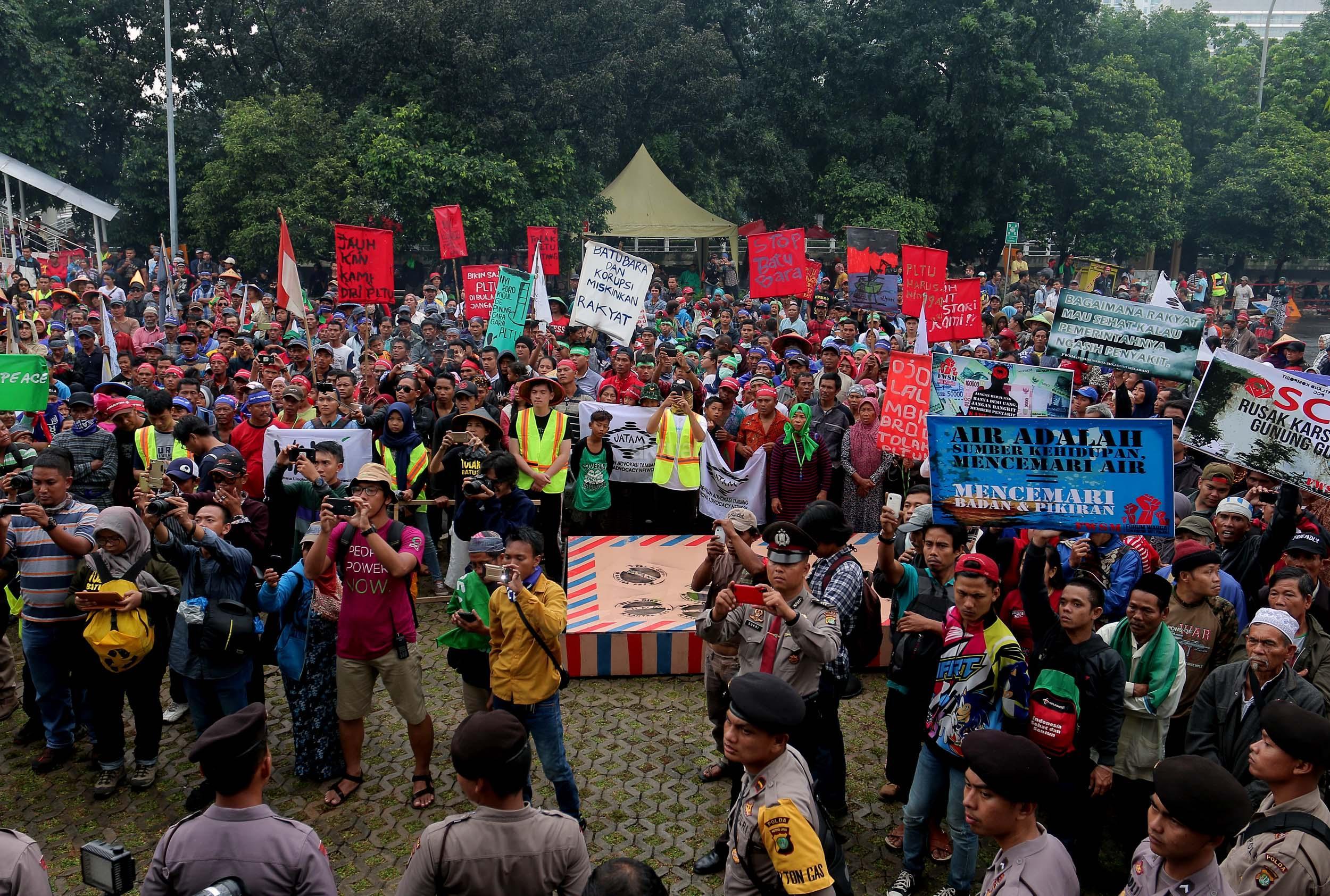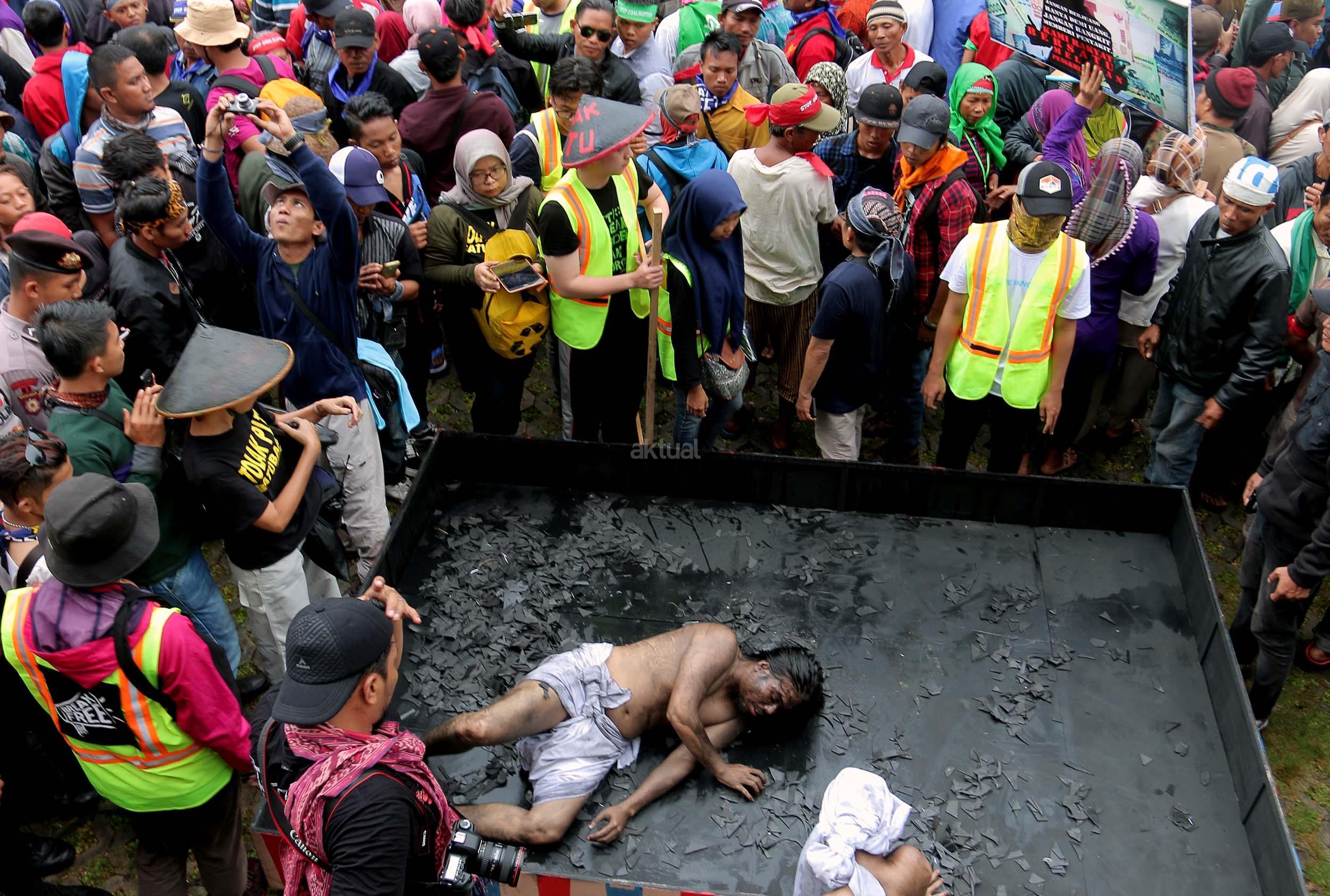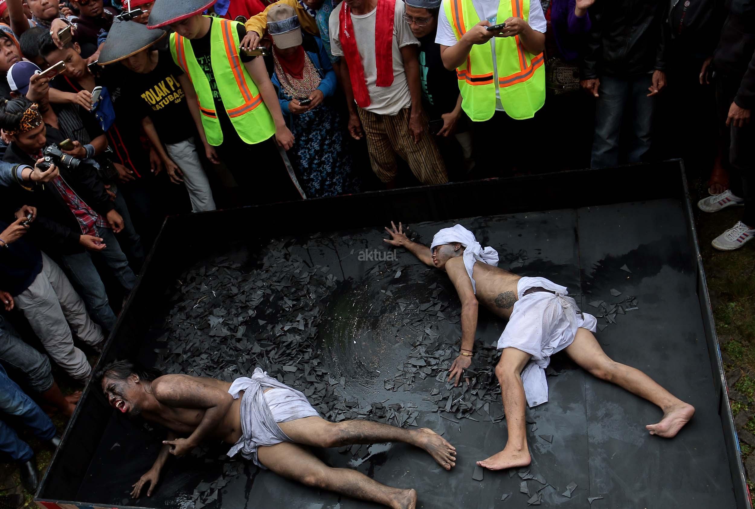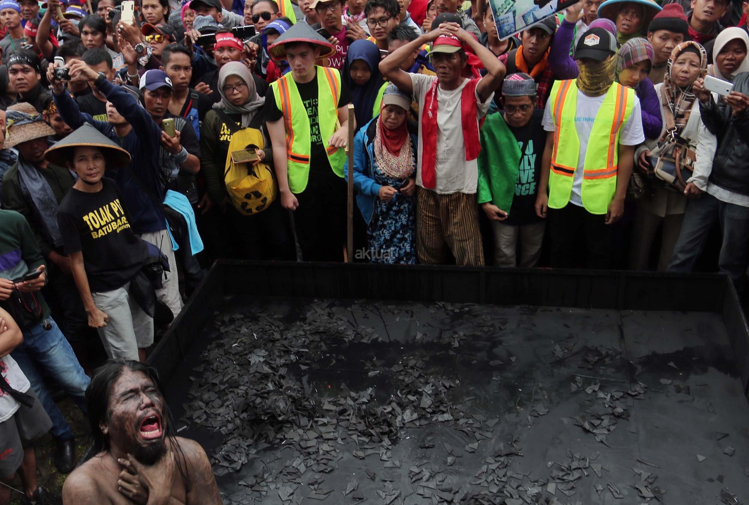Ribuan massa yang tergabung dalam Koalsisi Masyarakat Sipil melakukan aksi di depan kantor Komisi Pemberantasan Korupsi (KPK), Jakarta, Kamis (23/3/2017). Dalam aksi tersebut mereka mendesak pemerintah agar lepas dari ketergantungan terhadap bahan bakar fosil khususnya batu bara dan meminta KPK mengusut praktek korupsi industri batu bara. AKTUAL/Munzir