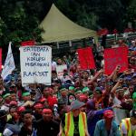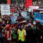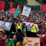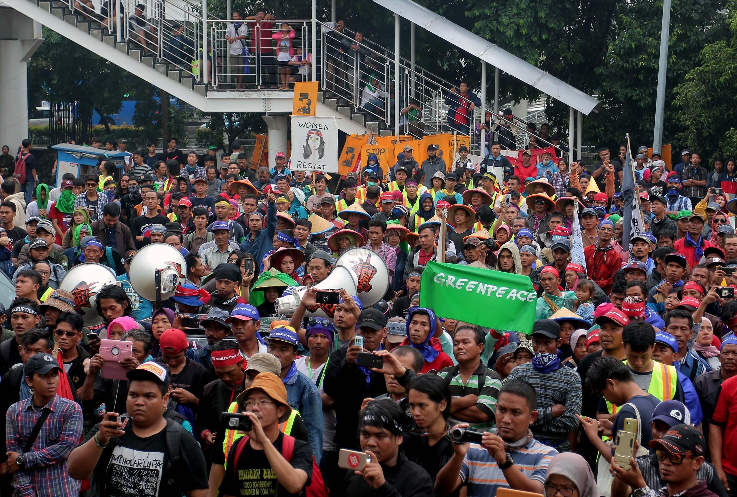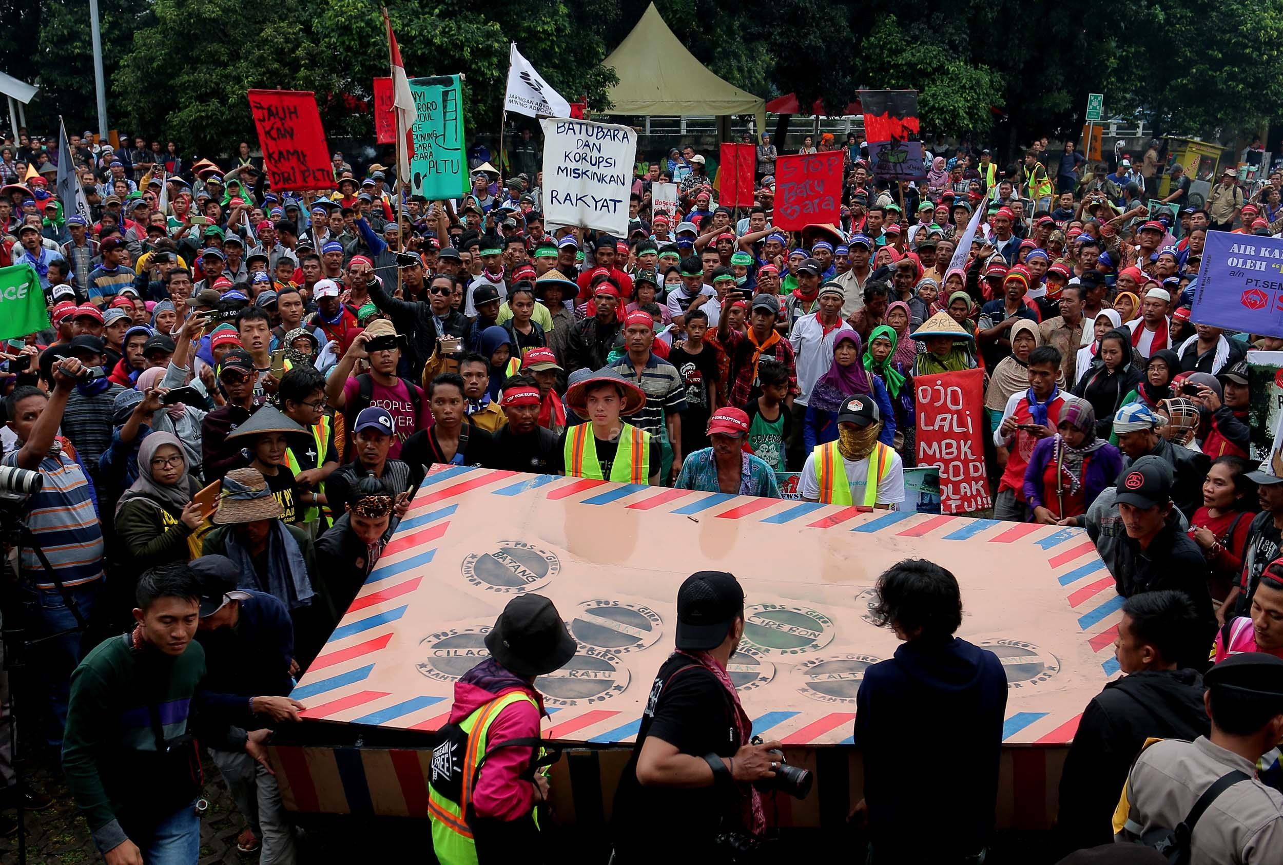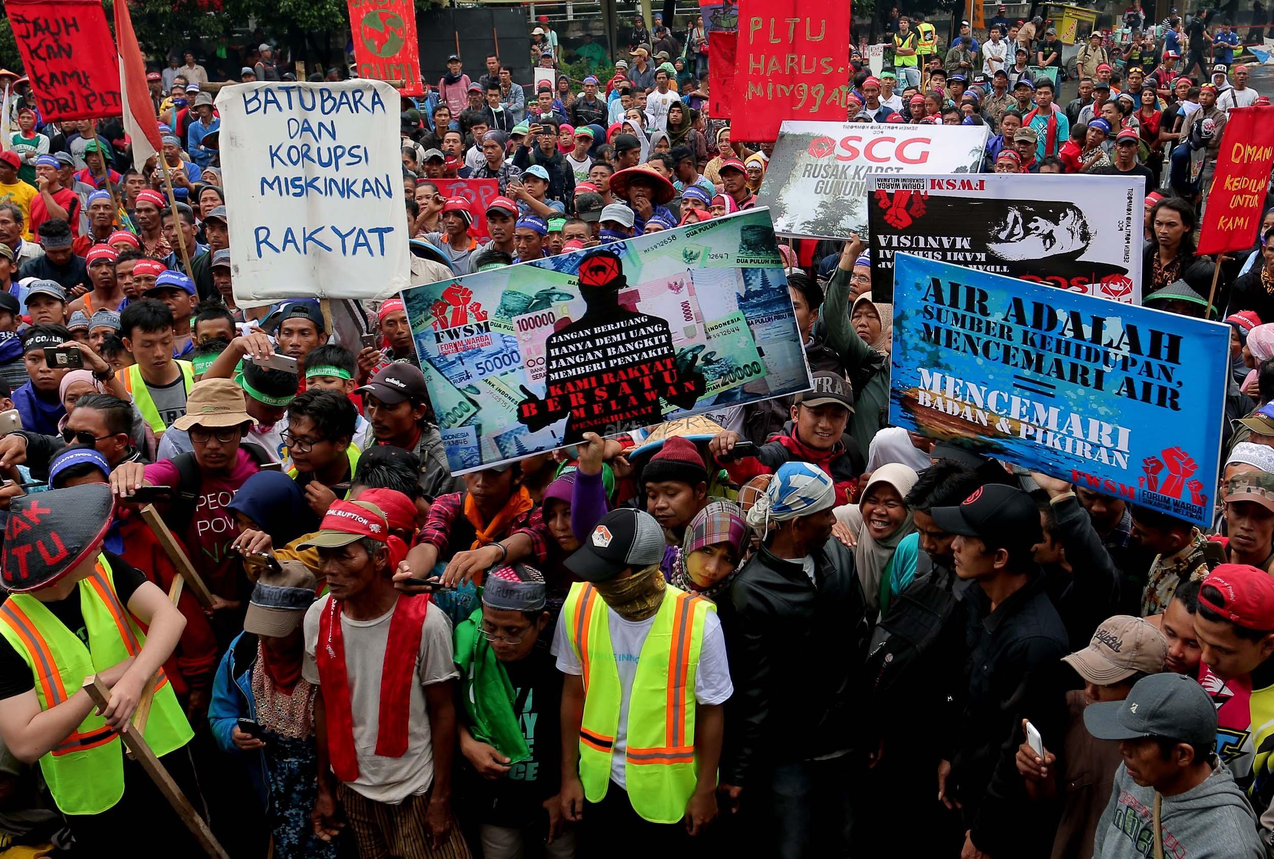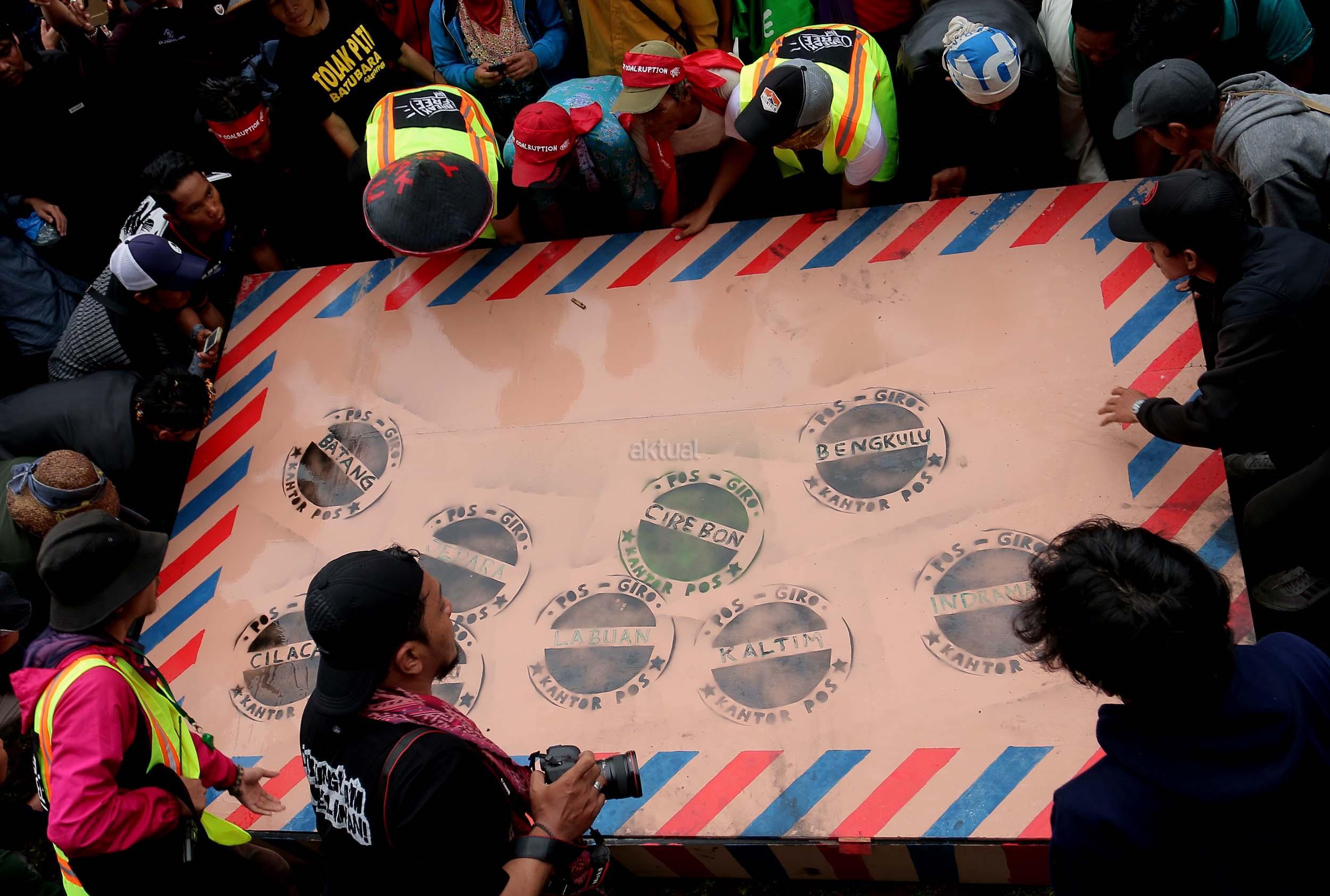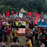 Ribuan massa yang tergabung dalam Koalsisi Masyarakat Sipil melakukan aksi di depan kantor Komisi Pemberantasan Korupsi (KPK), Jakarta, Kamis (23/3/2017). Dalam aksi tersebut mereka mendesak pemerintah agar lepas dari ketergantungan terhadap bahan bakar fosil khususnya batu bara dan meminta KPK mengusut praktek korupsi industri batu bara. AKTUAL/Munzir