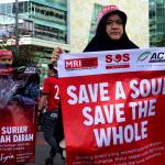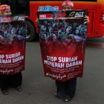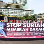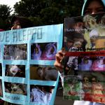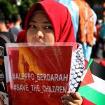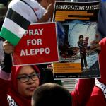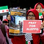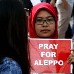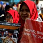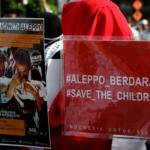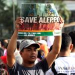 Sejumlah elemen masyarakat dari berbagai organisasi kemanusiaan melakukan aksi tolak pembataian umat muslim Aleppo, Suriah, di CFD, kawasan Bunderan HI, Jakarta, Minggu (18/12/2016). Dalam aksinya para elemen masyarakat juga melakukan penggalangan dana untuk para korban perang saudara di Aleppo, Suriah. AKTUAL/Munzir