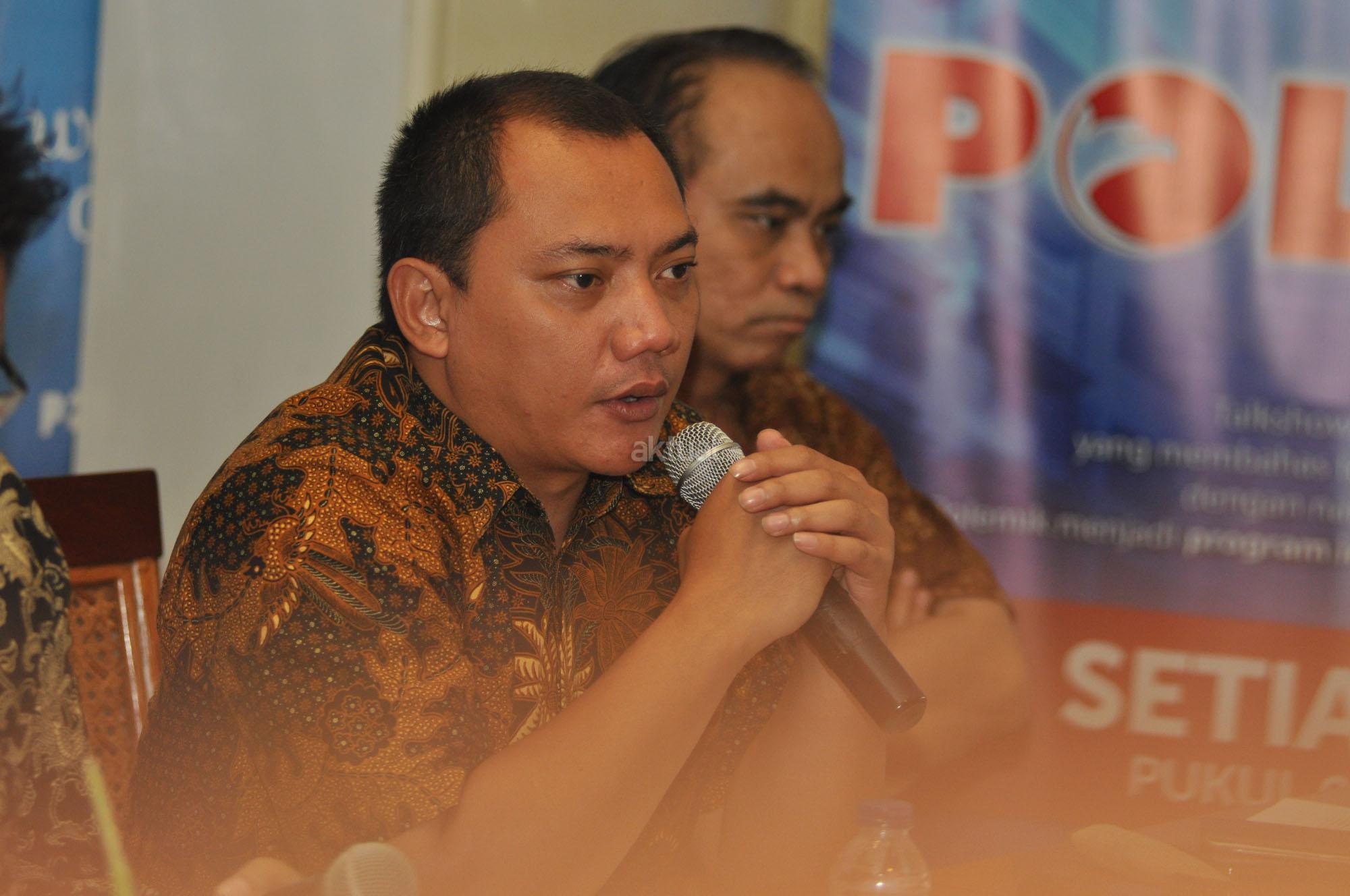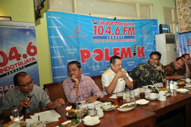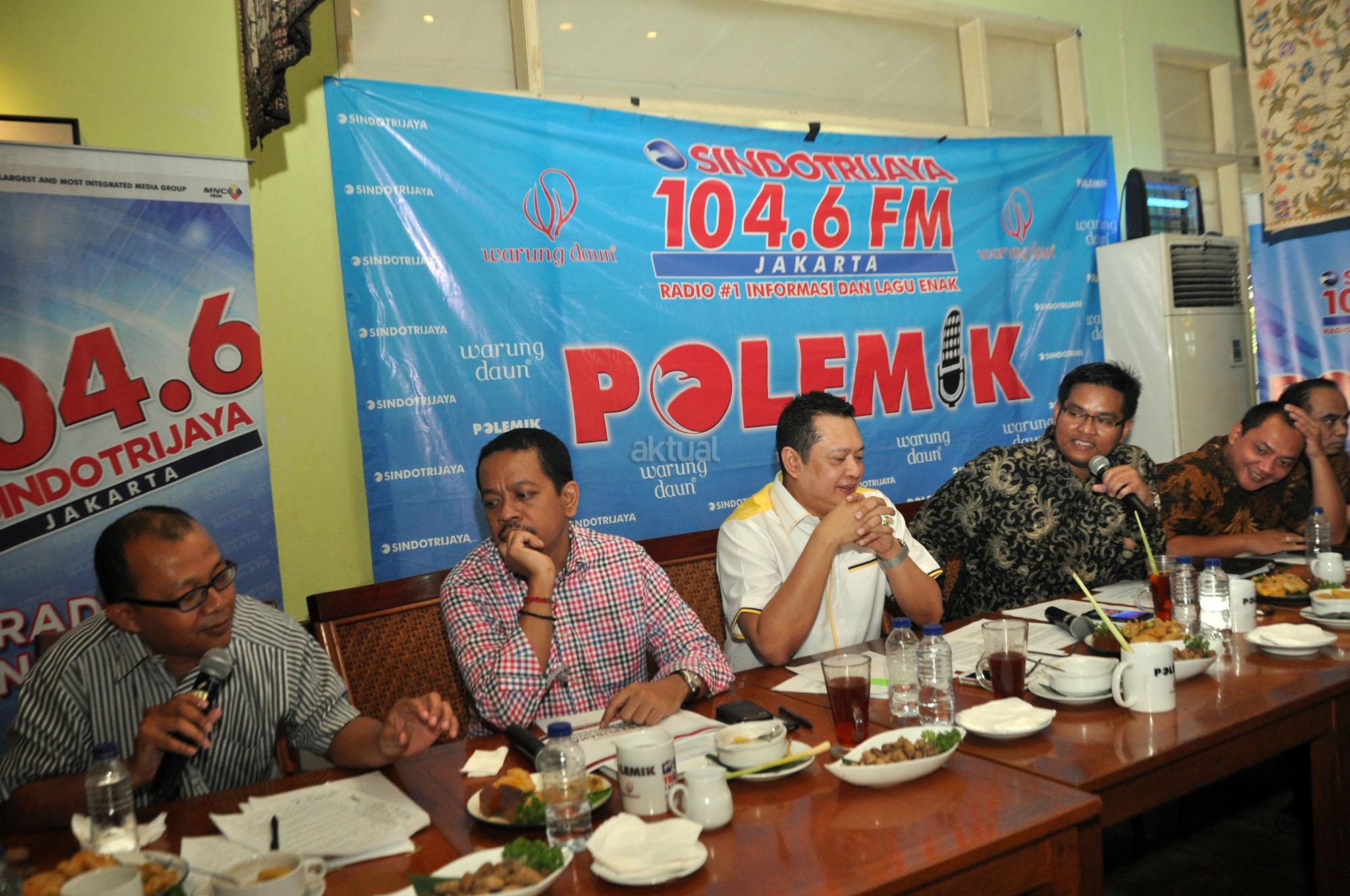 Peneliti ICW, Emerson Yuntho, Direktur Eksekutif Indo Barometer, M Qodri, Sekretari F-Partai Golkar, Bambang Soesatyo, Moderator, Pangran Ahmad, Ketua DPP Nasdem Taufik Basari, Ketua Umum Projo, Budi Arie Setiadi menjadi pembicara dalam acara diskusi di Jakarta, Sabtu (17/10/2015). Diskusi tersebut mengangkat tema "Setahun Nawacita", mereka membahas hasil dalam setahun nawacita, mereka menilai banyak kemunduran dalam ekonomi dan tindakan hukum.