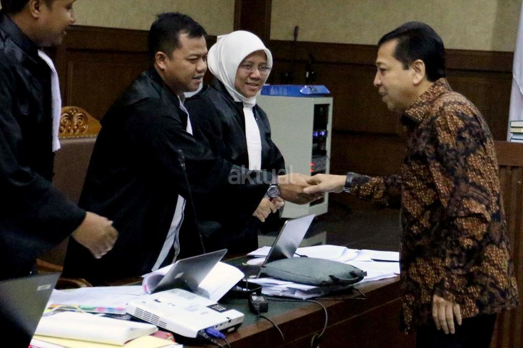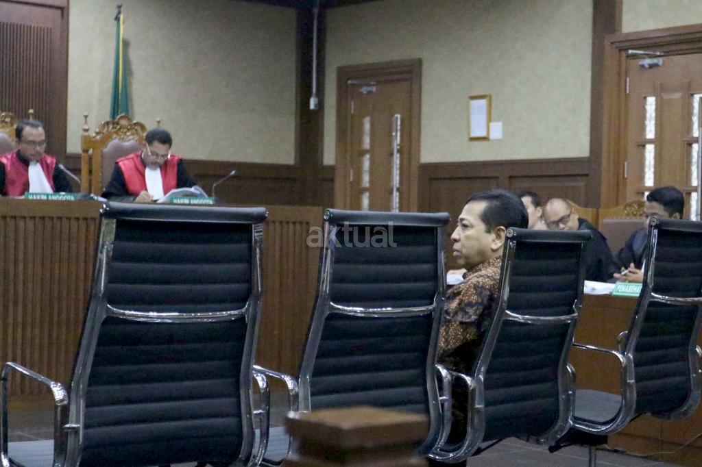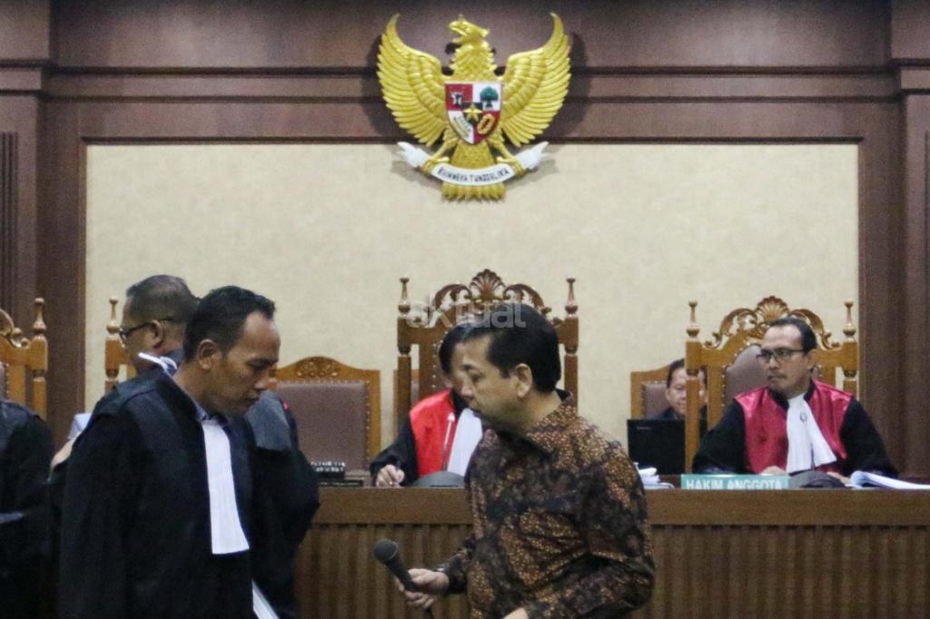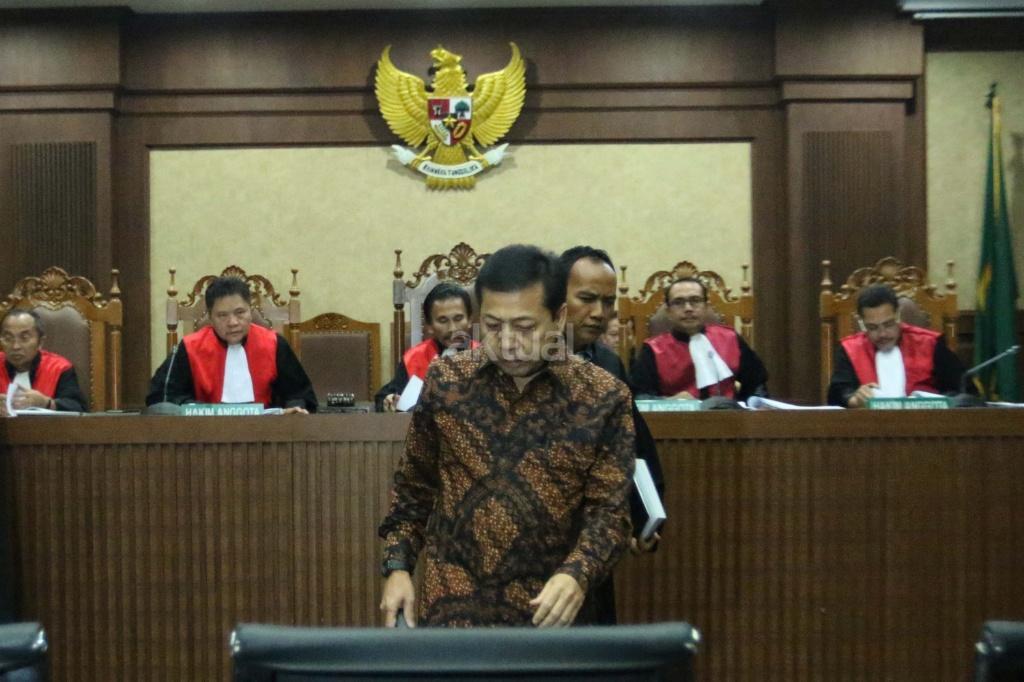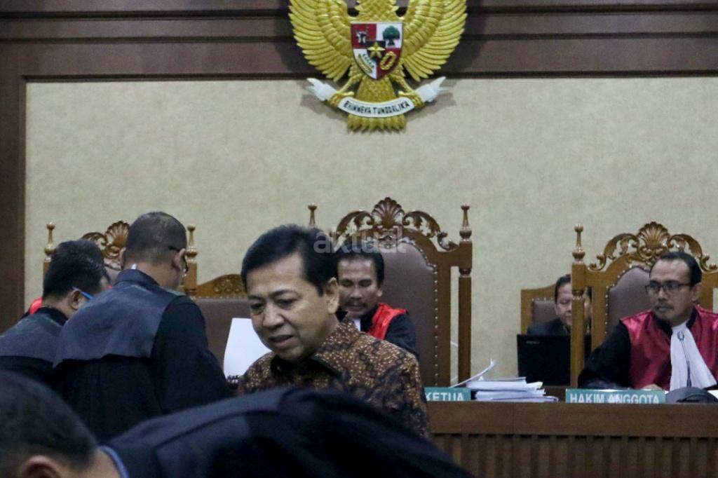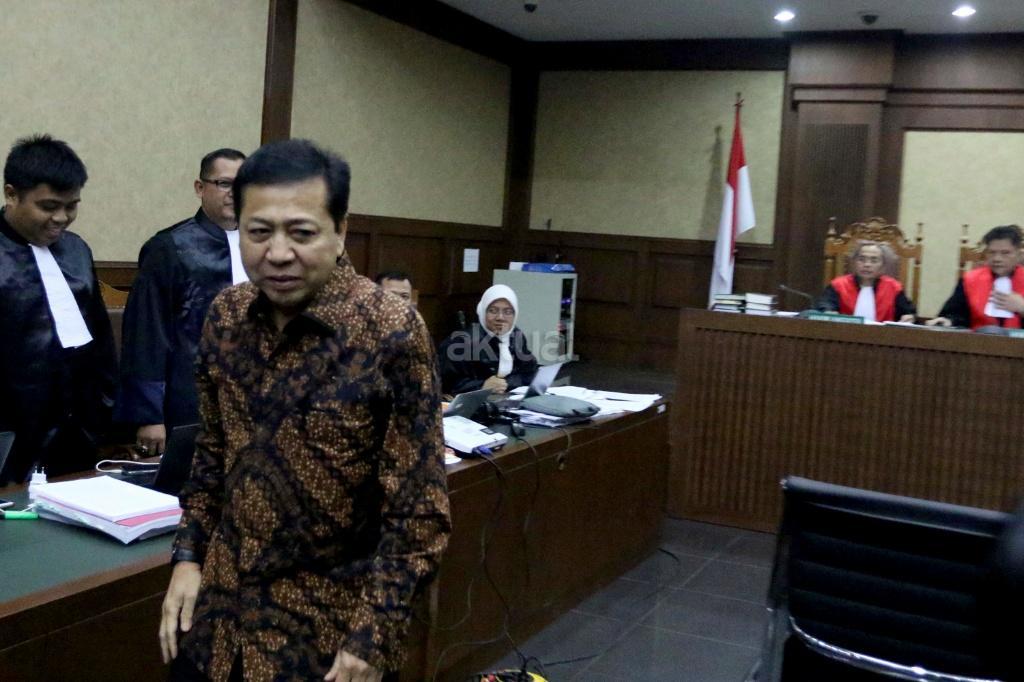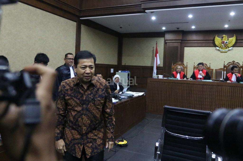 Ketua DPR Setya Novanto bersaksi dalam sidang kasus korupsi KTP elektronik (KTP-el) dengan terdakwa Andi Agustinus alias Andi Narogong di Pengadilan Tipikor Jakarta, Jumat (3/11/2017). Sidang tersebut beragenda mendengarkan sejumlah keterangan saksi yang dihadirkan Jaksa Penuntut Umum KPK salah satunya Ketua DPR Setya Novanto. AKTUAL/Munzir