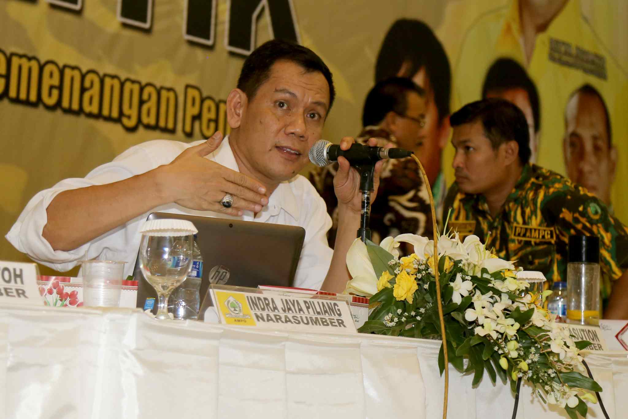 Politisi Partai Golkar, Indra Jaya Piliang saat diskusi politik dengan tema “Digital Demokrasi, Generasi Y & Perubahan Strategi Pemenangan Pemilu” di gedung DPP Partai Golkar, Jakarta, Jumat (2/9).