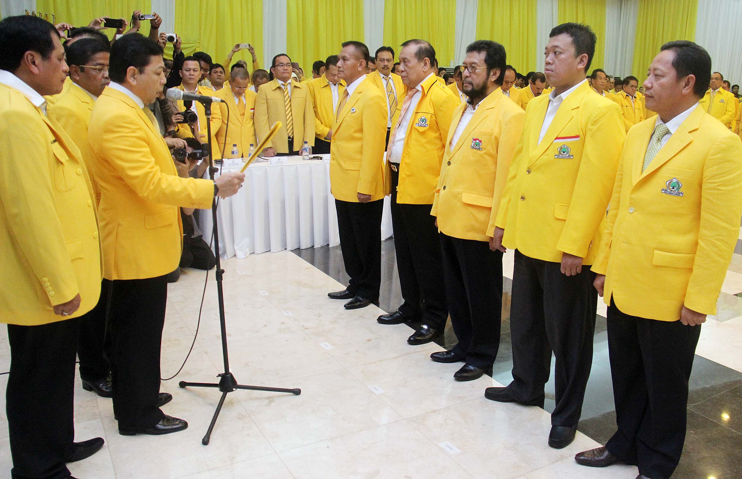 Pengukuhan 279 orang pengurus partai beringin untuk masa bakti 2014-2019 tersebut terdiri atas Pengurus Harian dan Pengurus Departemen Partai Golkar.