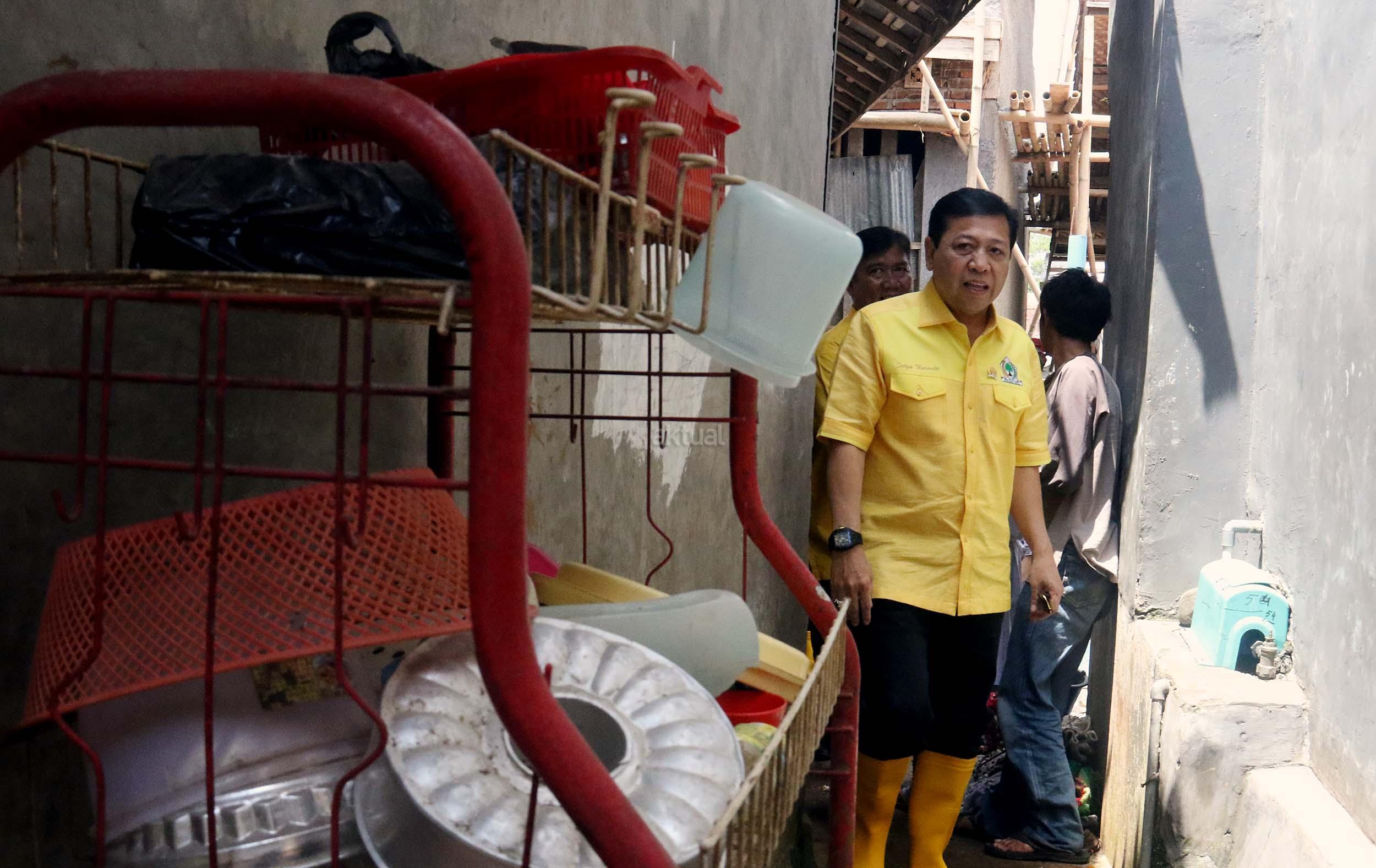 Kedatangan Ketua Umum Partai Golkar Setya Novanto beserta rombongan pengurus DPP Partai Golkar, Ikatan Istri Partai Golkar dan AMPG untuk memberikan bantuan dari Ikatan Istri Partai Golkar,berupa pompa untuk menyedot air kotor, selimut, susu bayi, pakaian perempuan dan anak-anak. AKTUAL/MUNZIR
