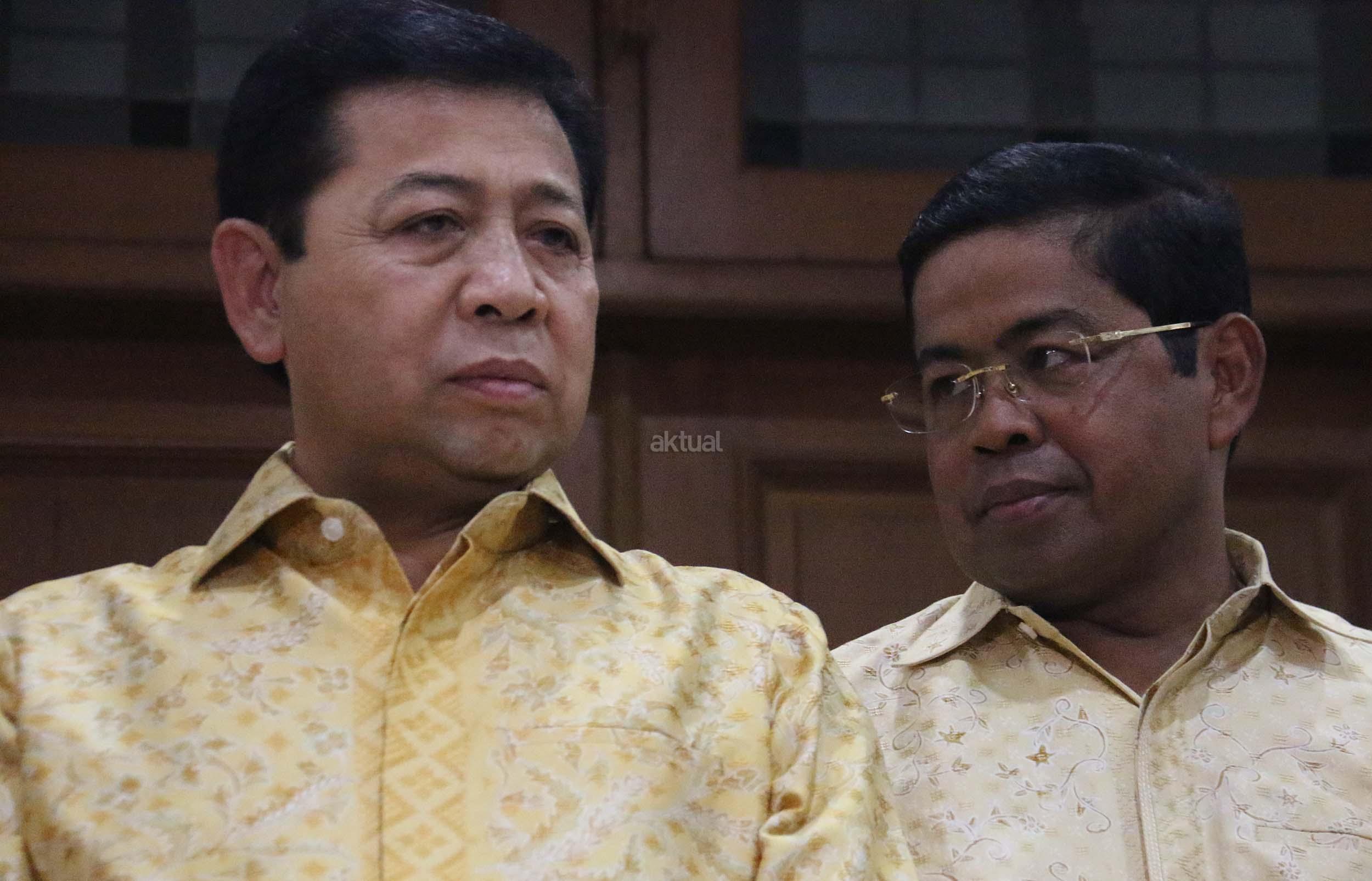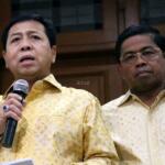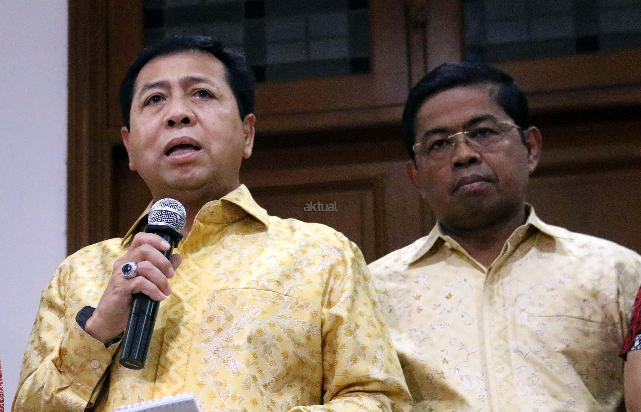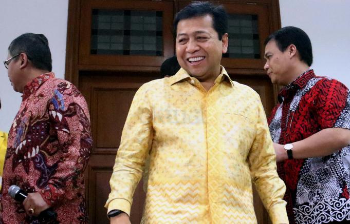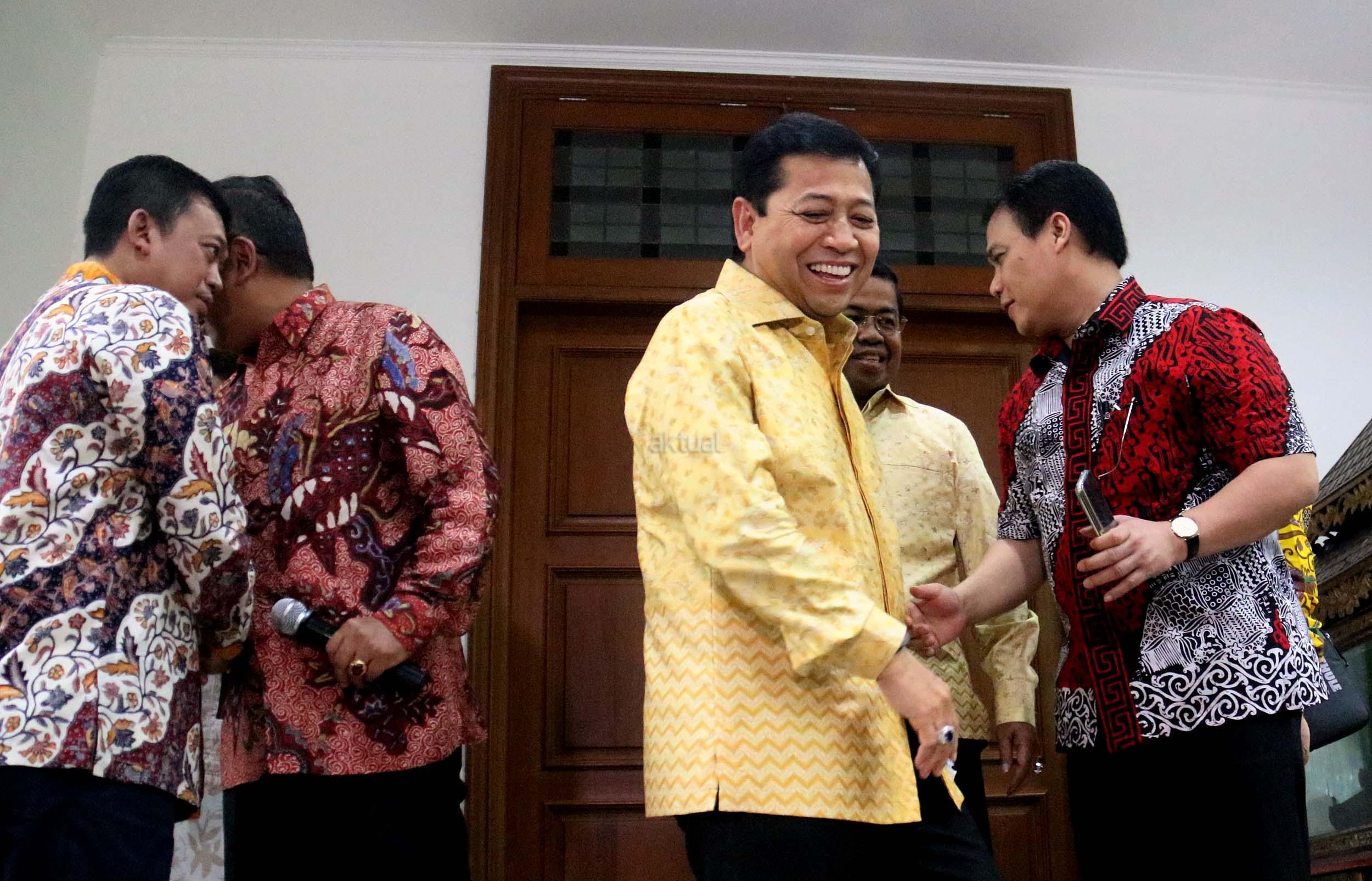 Kiri-kanan ; Sekjen DPP PDIP Hasto Kristiyanto, Ketua Umum Partai Golkas Setya Novanto, Sekjen Partai Golkar Idrus Marham, memberikan keterangan persnya usai melakukan pertemuan di rumah Ketua Umum PDIP Megawati Seokarnoputri di Jalan. Teuku Umar, Jakarta Pusat, Minggu (20/11/2016). Pertemuan tersebut membahas seputar situasi politik nasional, di antaranya susasana pertarungan para pasangan calon dalam Pilgub DKI 2017. AKTUAL/Munzir