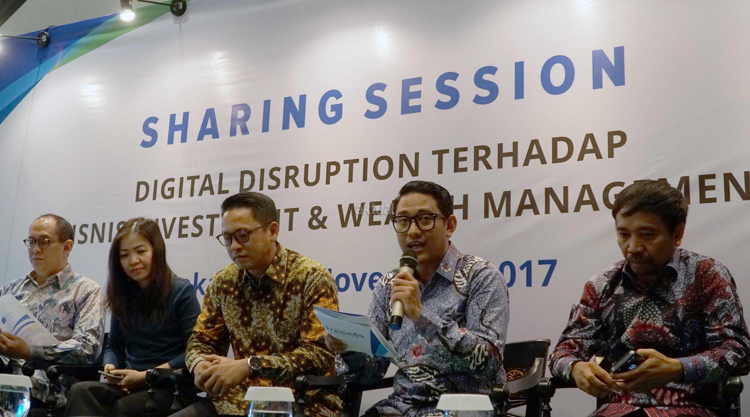 Suasana Kegiatan bertajuk ” Digital Disruption terhadap Bisnis Investment & Wealth Management” mengundang sekitar 50 klien yang terdiri dari Bank dan Manager Investasi.Hadir sebagai narasumber antara lain Vera Margaret selaku Group Head Product Wealth Management and Private Banking Bank CIMB Niaga, Alvin Pattisahusiwa selaku Direktur Utama Mandiri Investasi, Denny Rizal Thaher selaku, Direktur Utama Xdana, serta Hazairin selaku Direktur Utama Praisindo. AKTUAL/Eko S Hilman