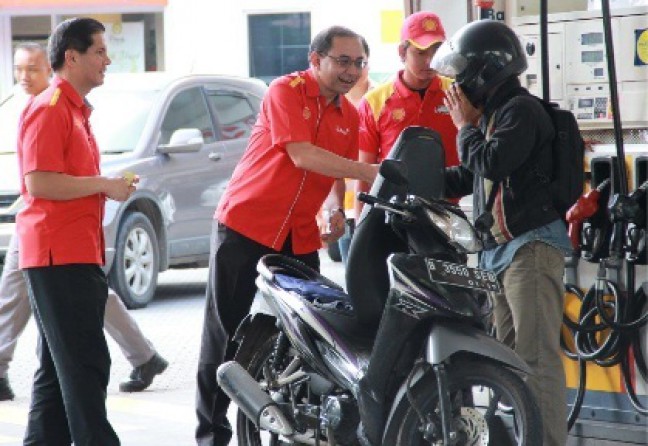 Mereka menyampaikan kartu tips tentang keselamatan dan stiker kepada para pengendara mobil dan sepeda motor yang sedang mengisi bahan bakar di SPBU Shell tersebut sebagai bentuk kepedulian Shell terhadap keselamatan para pelanggannya.