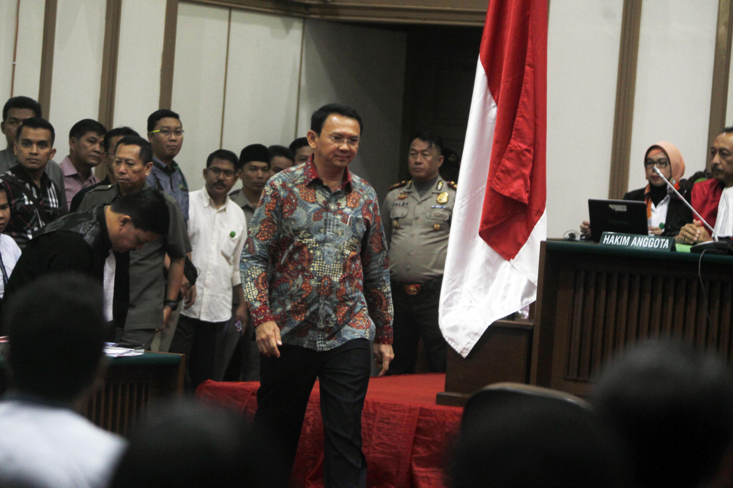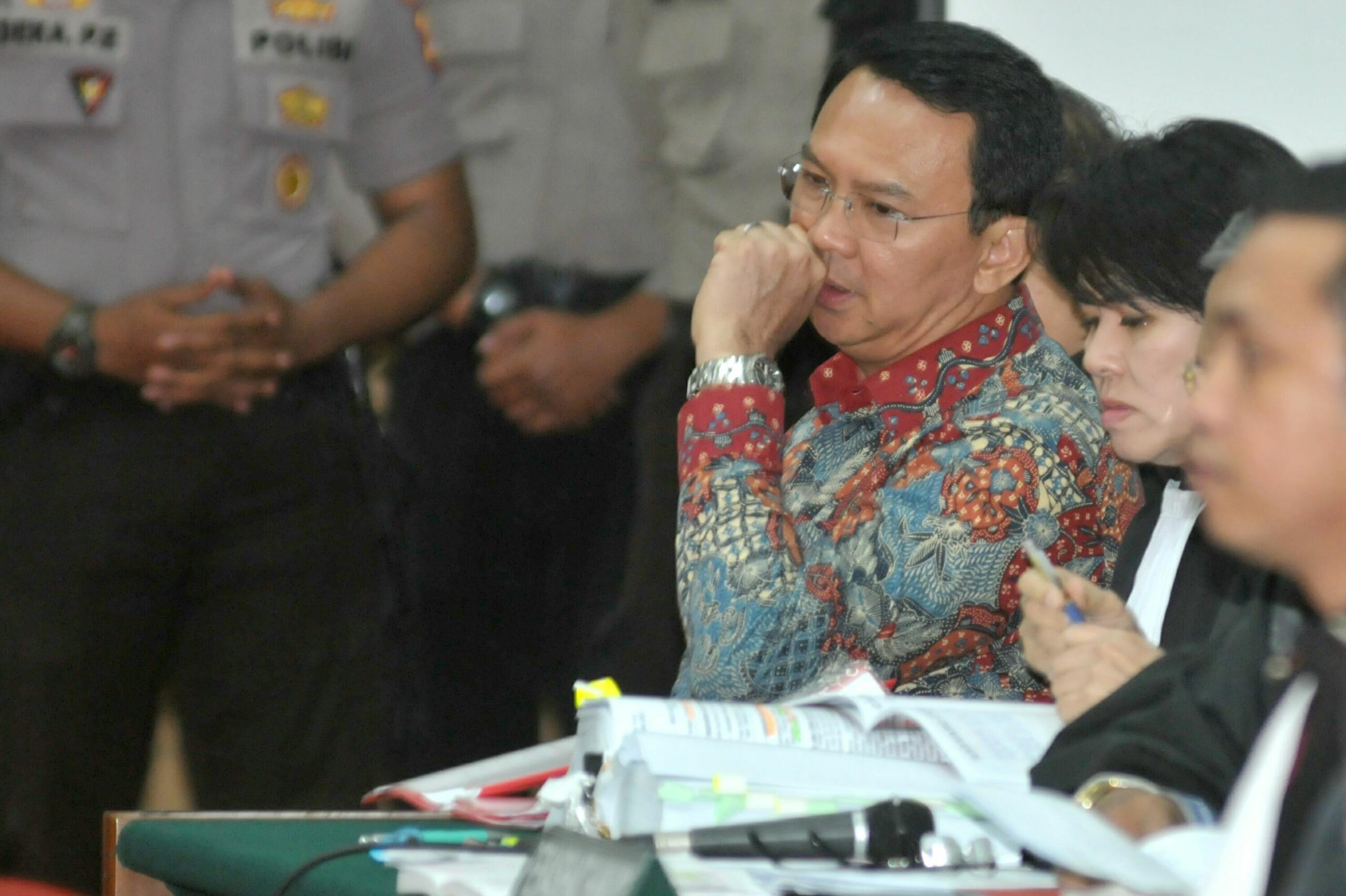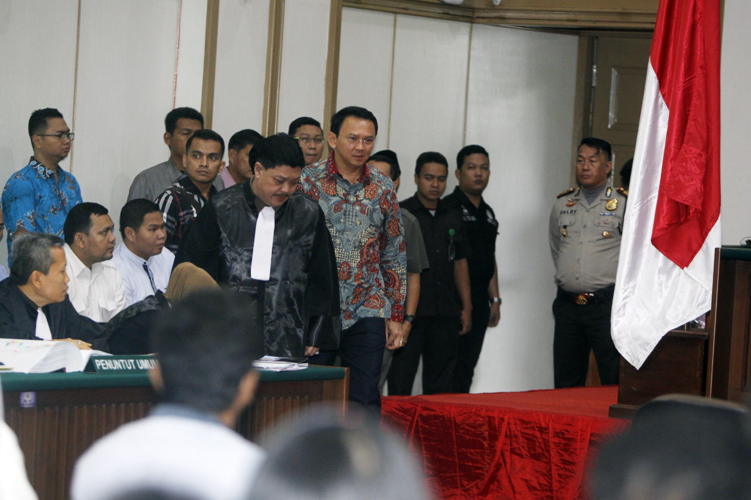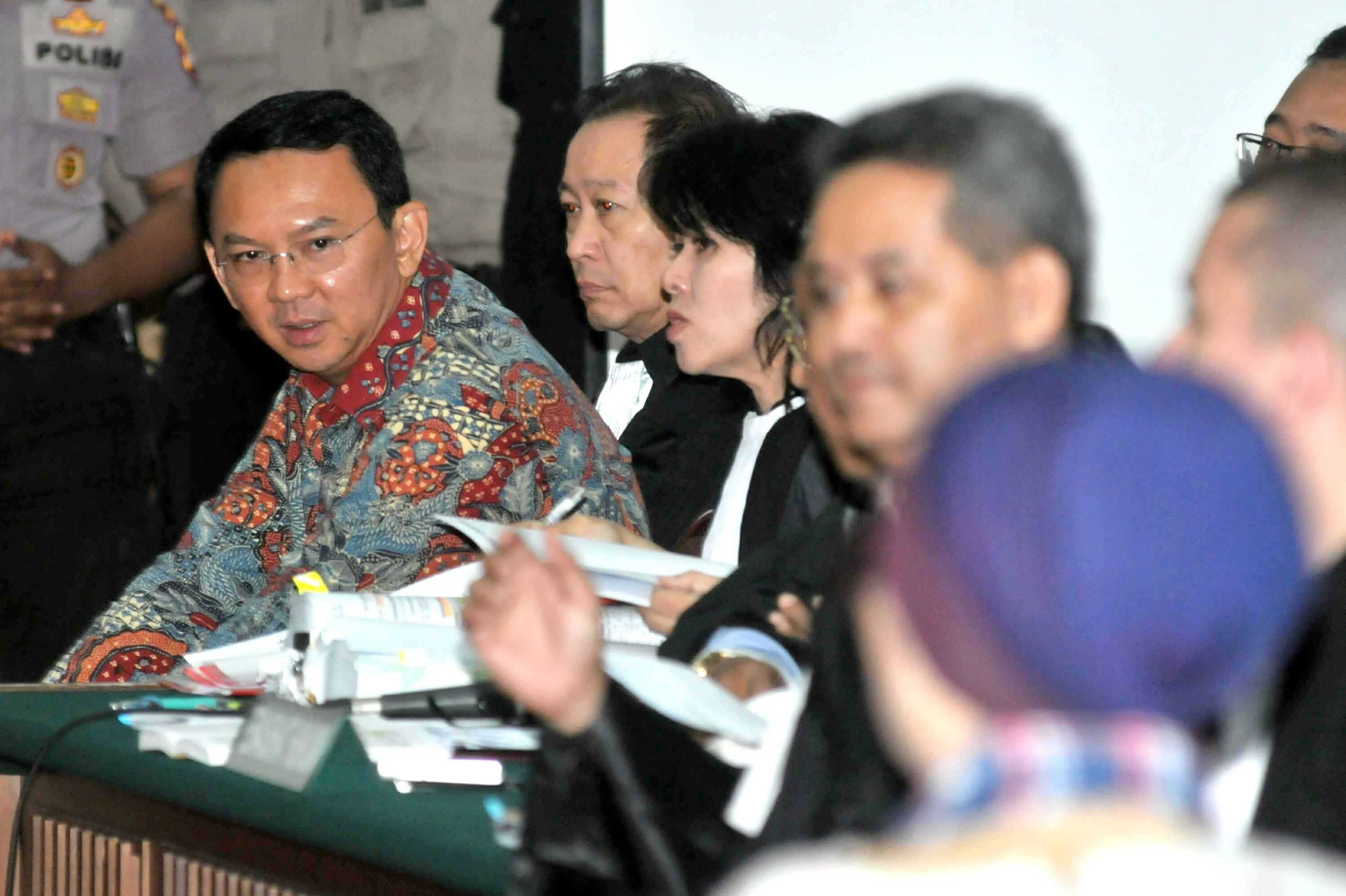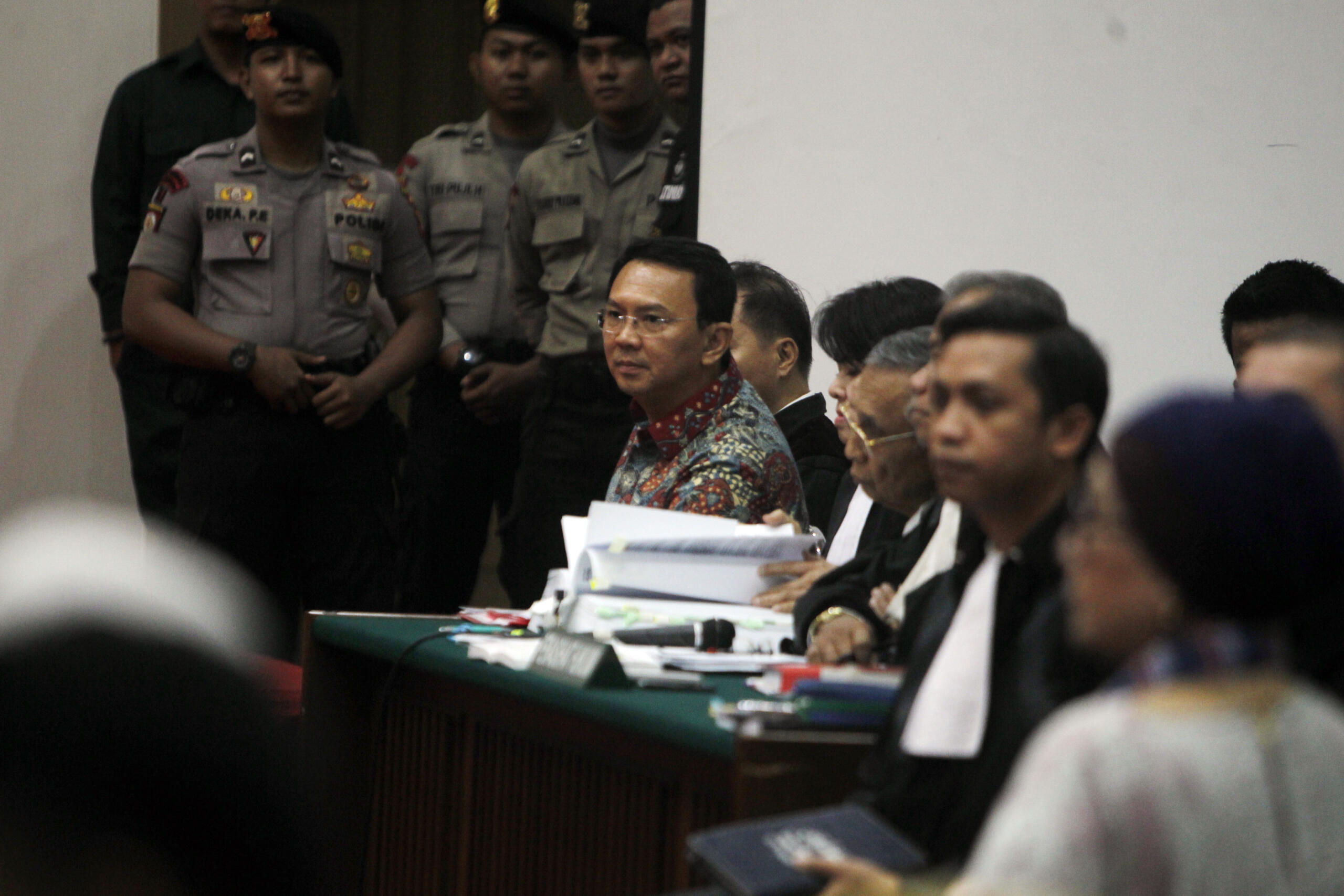 Terdakwa kasus penistaan agama Gubernur DKI Jakarta non aktif Basuki Tjahaja Purnama atau Ahok kembali menjalani persidangan ke-9 yang digelar Pengadilan Negeri Jakarta Utara (PN Jakut) di ruang sidang di Auditorium Kementan, Jakarta. Selasa (7/2/17). Persidangan kali ini beragendakan mendengarkan keterangan dua saksi fakta dan satu saksi ahli dari MUI. Foto/sindonews.com-Pool/Isra TriansyahPersidangan kali ini beragendakan mendengarkan keterangan dua saksi fakta dan satu saksi ahli dari MUI
