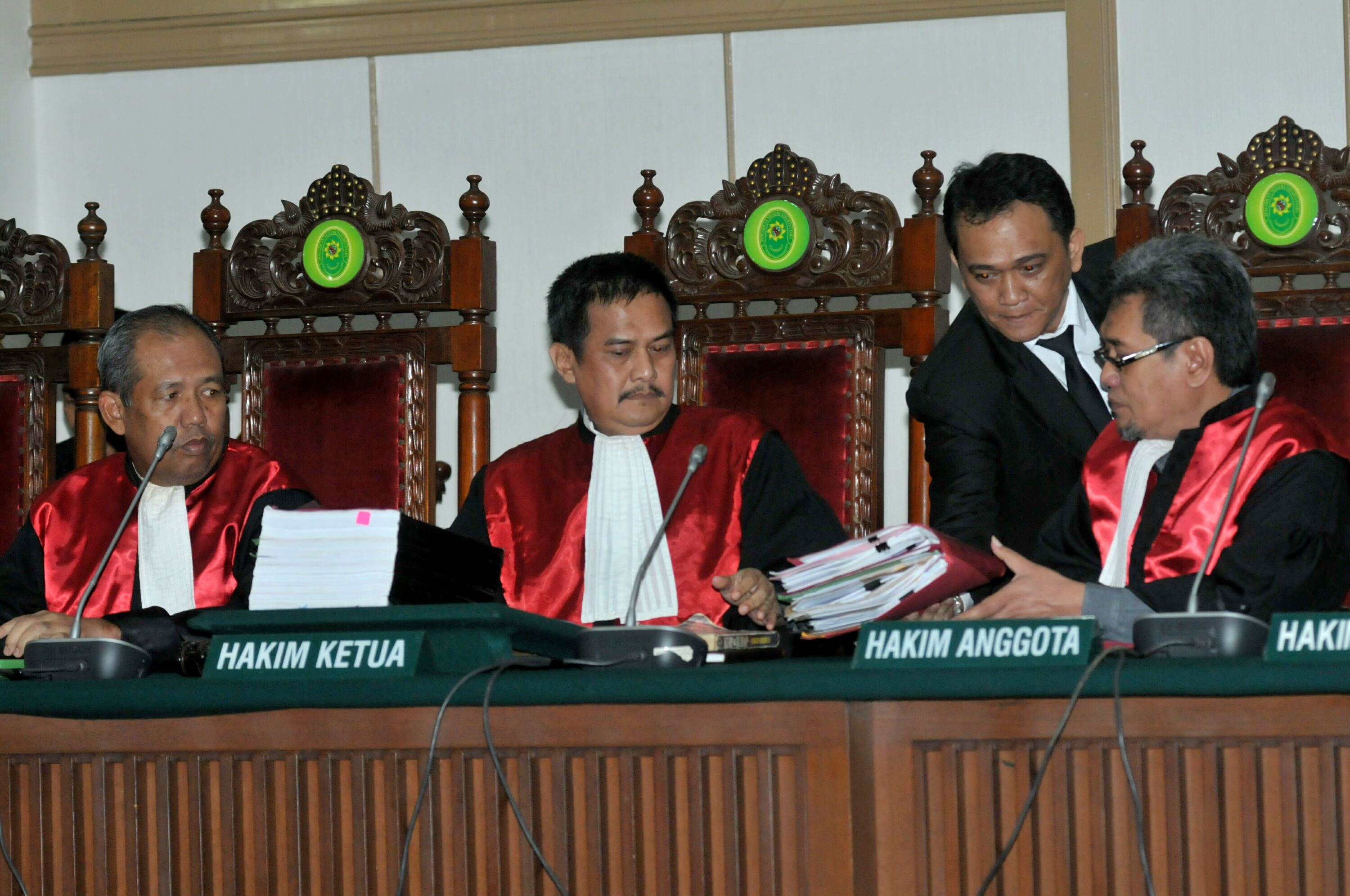 Mjelis Hakim yang memimpin sidang Terdakwa Kasus Penistaan Agama yang juga Gubernur non Aktif DKI Jakarta Basuki Tjahaja Purnama ke-9 di Auditorium Kementerian Pertanian, Jakarta, Selasa (7/2/2017). Sidang ke-9 tersebut menghadirkan 2 orang saksi fakta dari kepulauan seribu dan 1 orang saksi. Foto/merdeka.com-Pool/M. Luthfi Rahman