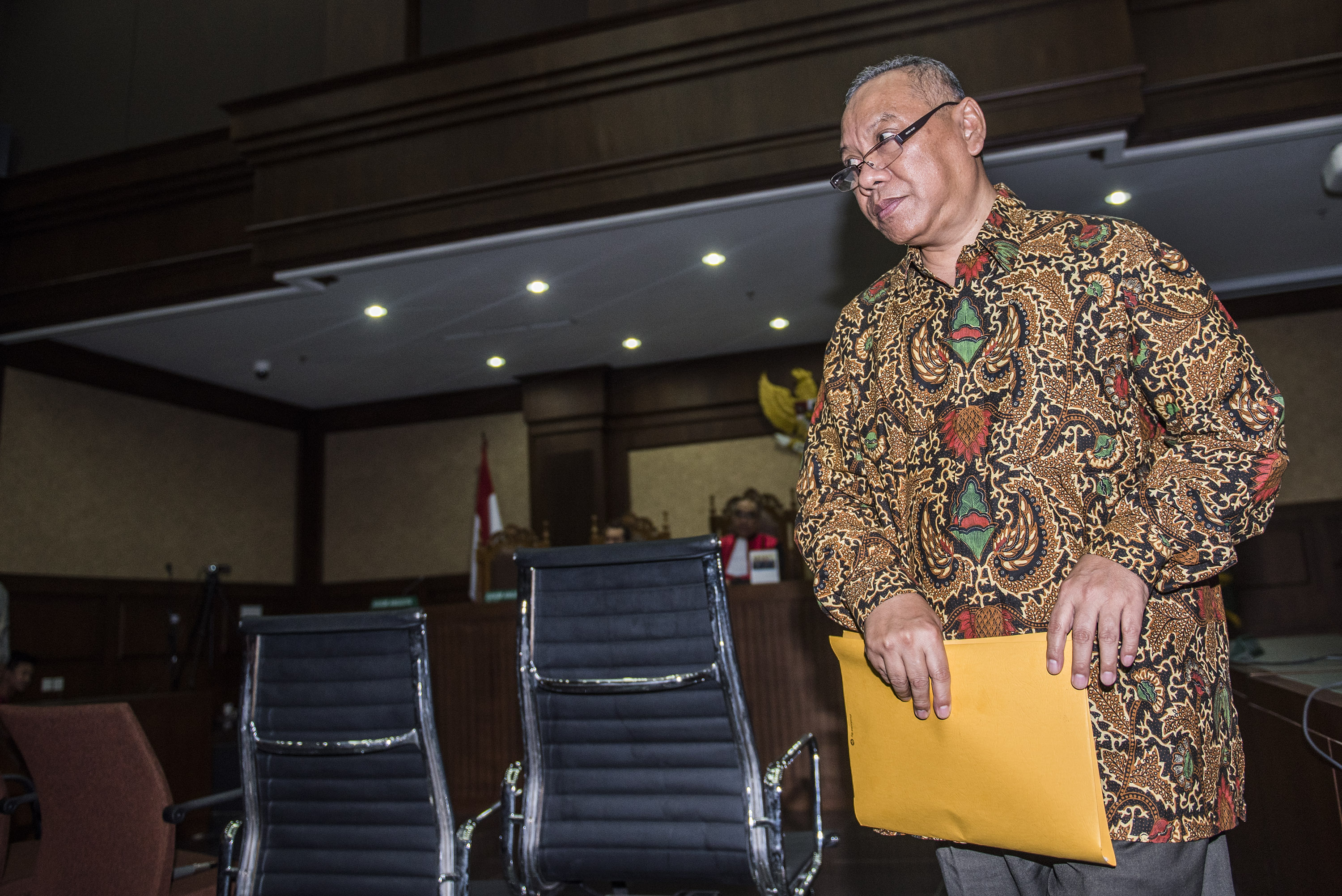 Terdakwa kasus dugaan pemberian suap penanganan peninjauan kembali (PK) terhadap Pengadilan Negeri Jakarta Pusat Doddy Aryanto berjalan keluar ruang sidang seusai menjalani sidang lanjutan dengan agenda pembacaan eksepsi atau atau nota keberatan di Pengadilan Tipikor, Jakarta, Senin (11/7). Doddy Aryanto membantah segala dakwaan jaksa penuntut umum (JPU) yang ditujukan kepadanya. ANTARA FOTO/M Agung Rajasa/Spt/16