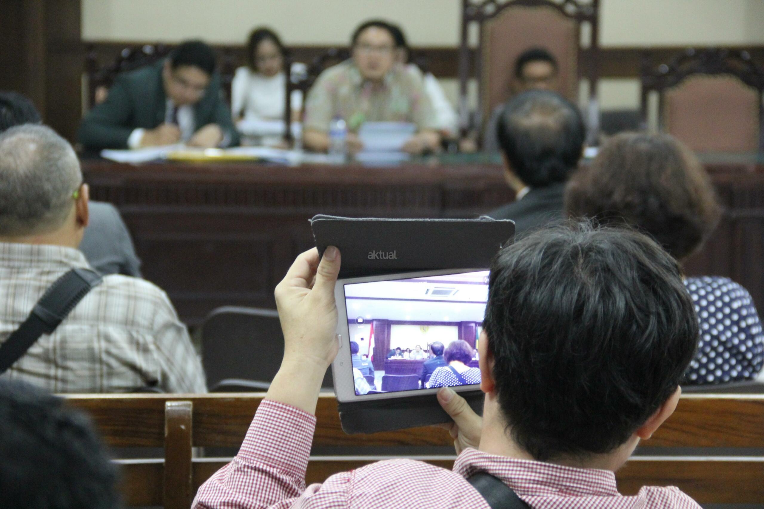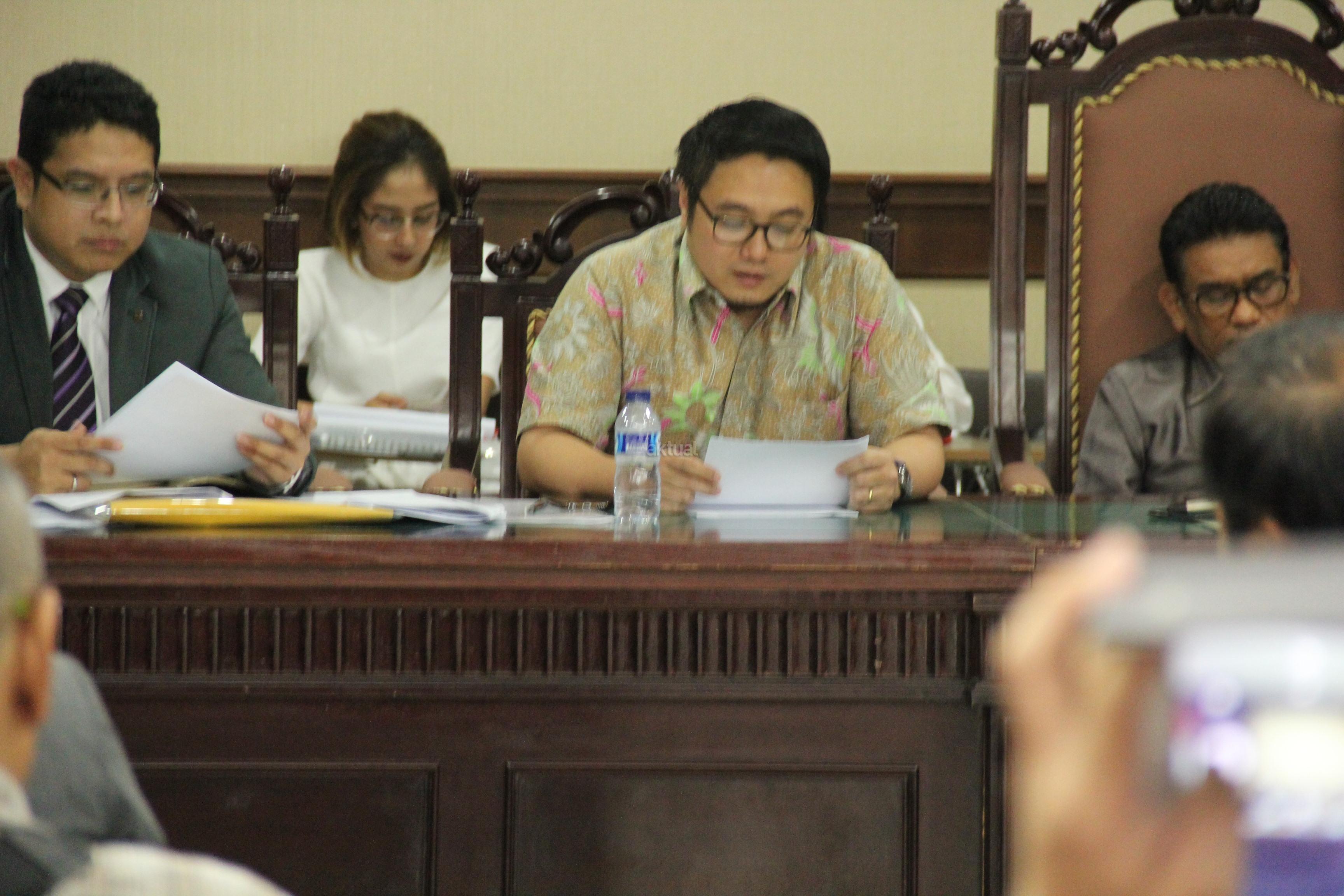 Tim Kurator Kasus kepailitan PT Berkat Bumi Citra Alamo D. Laiman menjelaskan hasil penelusuran aset debitor kepada Hakim Pengawas dan sejumlah investor BBC disela rapat kreditor di Pengadilan Niaga, Jakarta, Kamis (8/3). Berdasarkan penelusuran kurator, aset PT BBC ternyata mengalir ke pemegang saham dan keluarga Tahir Ferdian diantaranya Victory Halim dan Betty Halim dalam bentuk hutang yang nilainya sekitar Rp 800 miliar. AKTUAL/Eko S Hilman