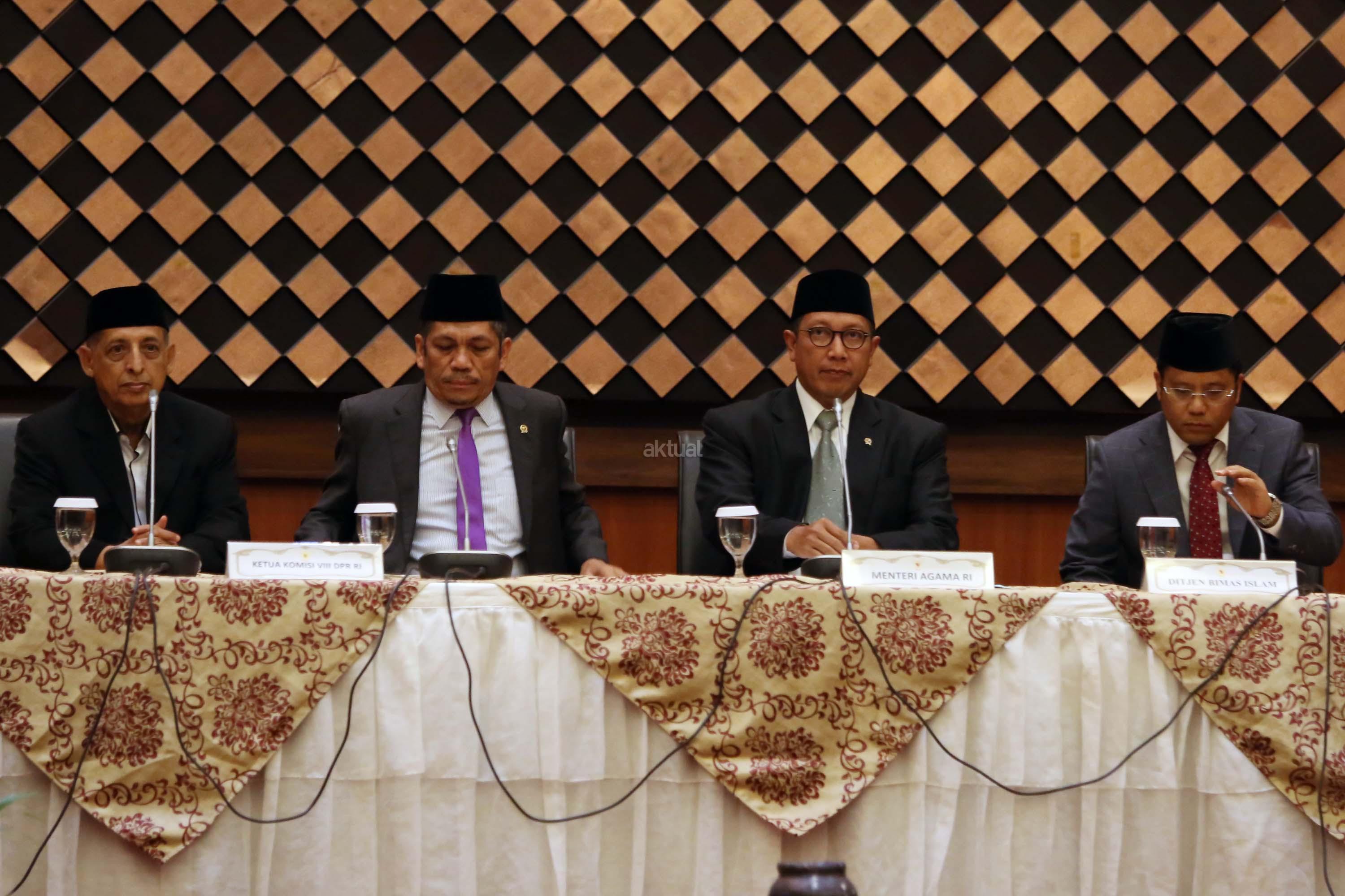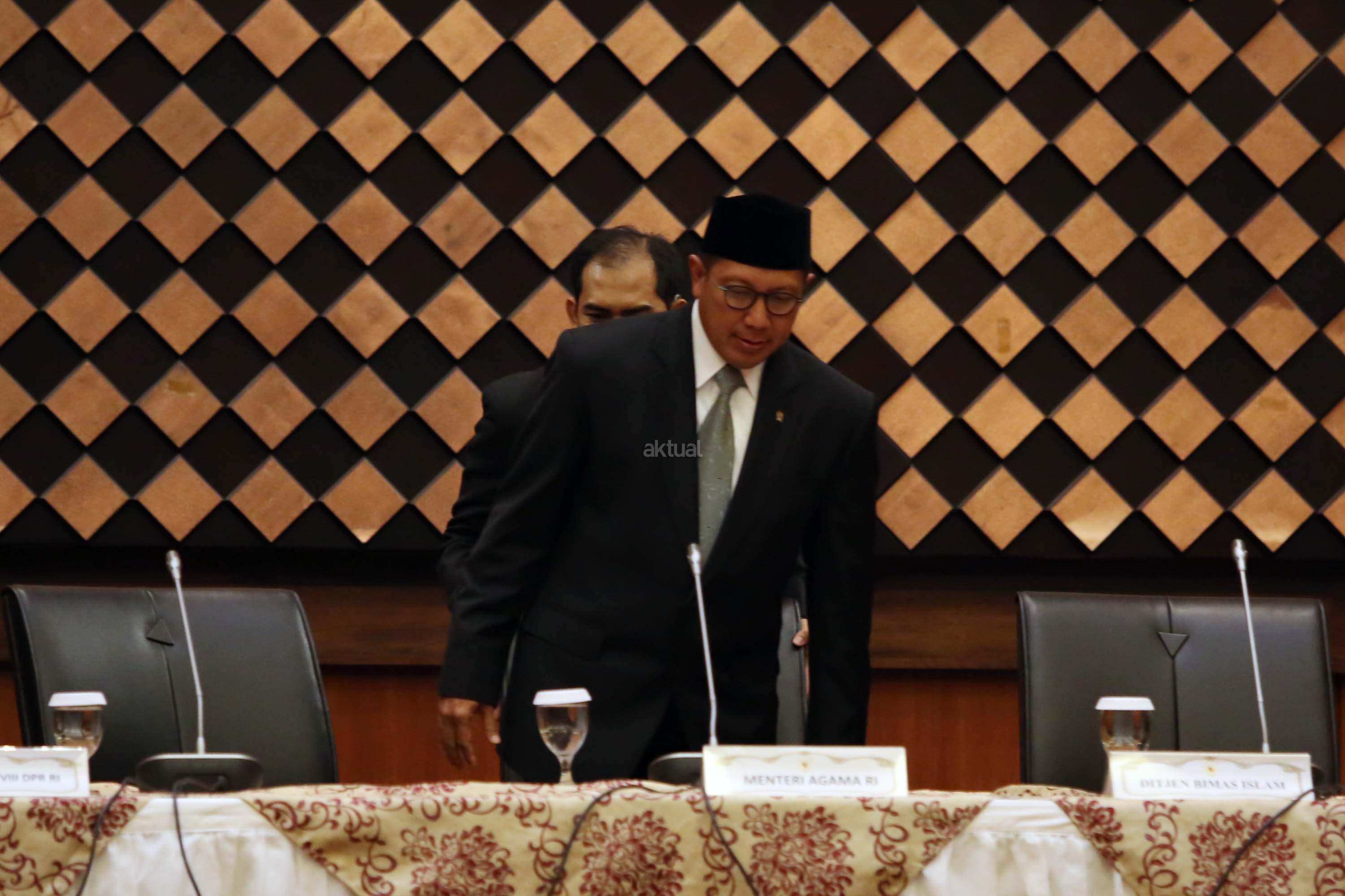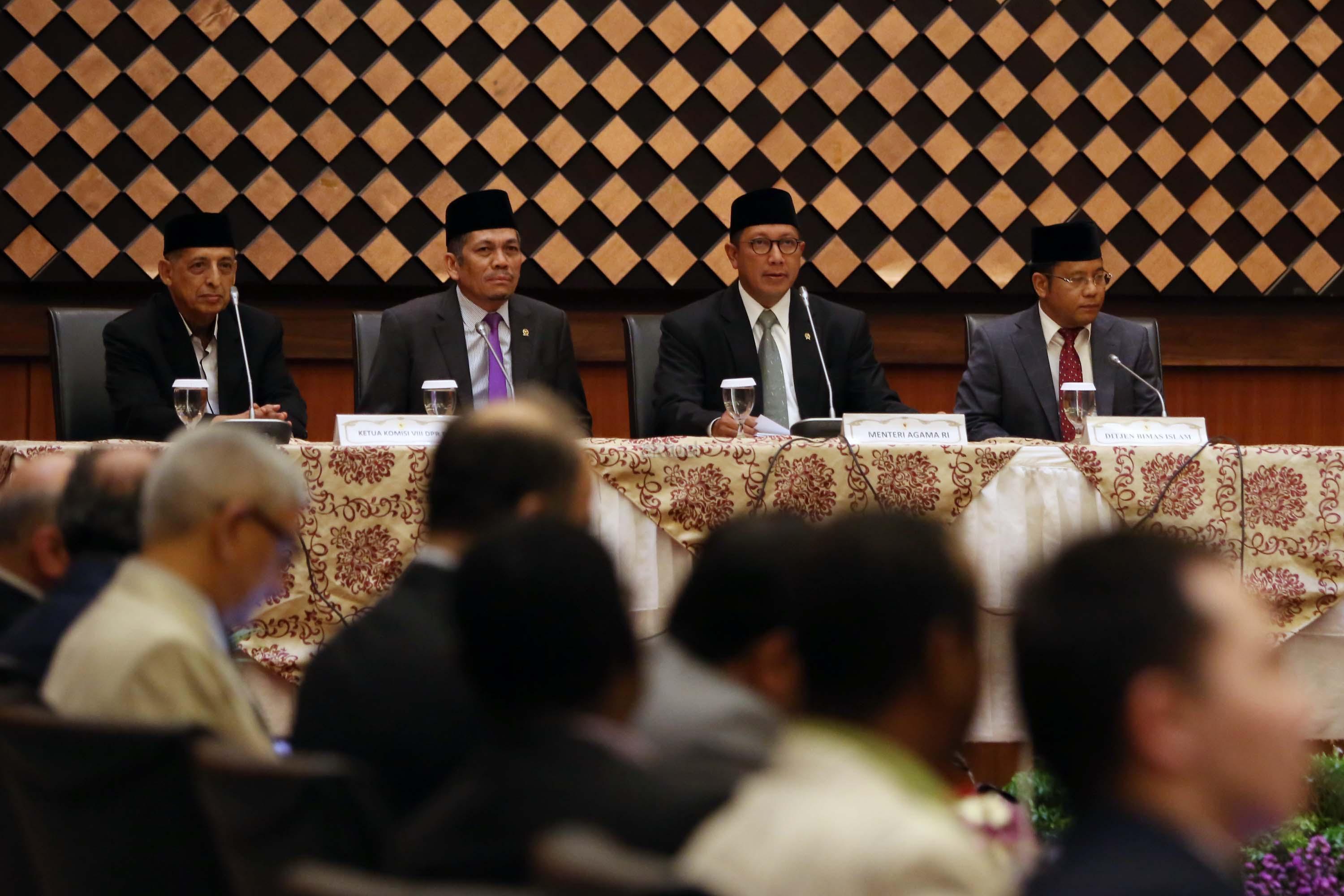 Menteri Agama Lukman Hakim Saifuddin (ketiga kiri) memimpin sidang Isbat penentuan awal Ramadan 1438 H di Kementerian Agama, Jakarta, Jumat (26/5/2017). Pemerintah memutuskan 1 Ramadan 1438 H disepakati jatuh pada Sabtu, 27 Mei 2017. AKTUAL/Munzir
