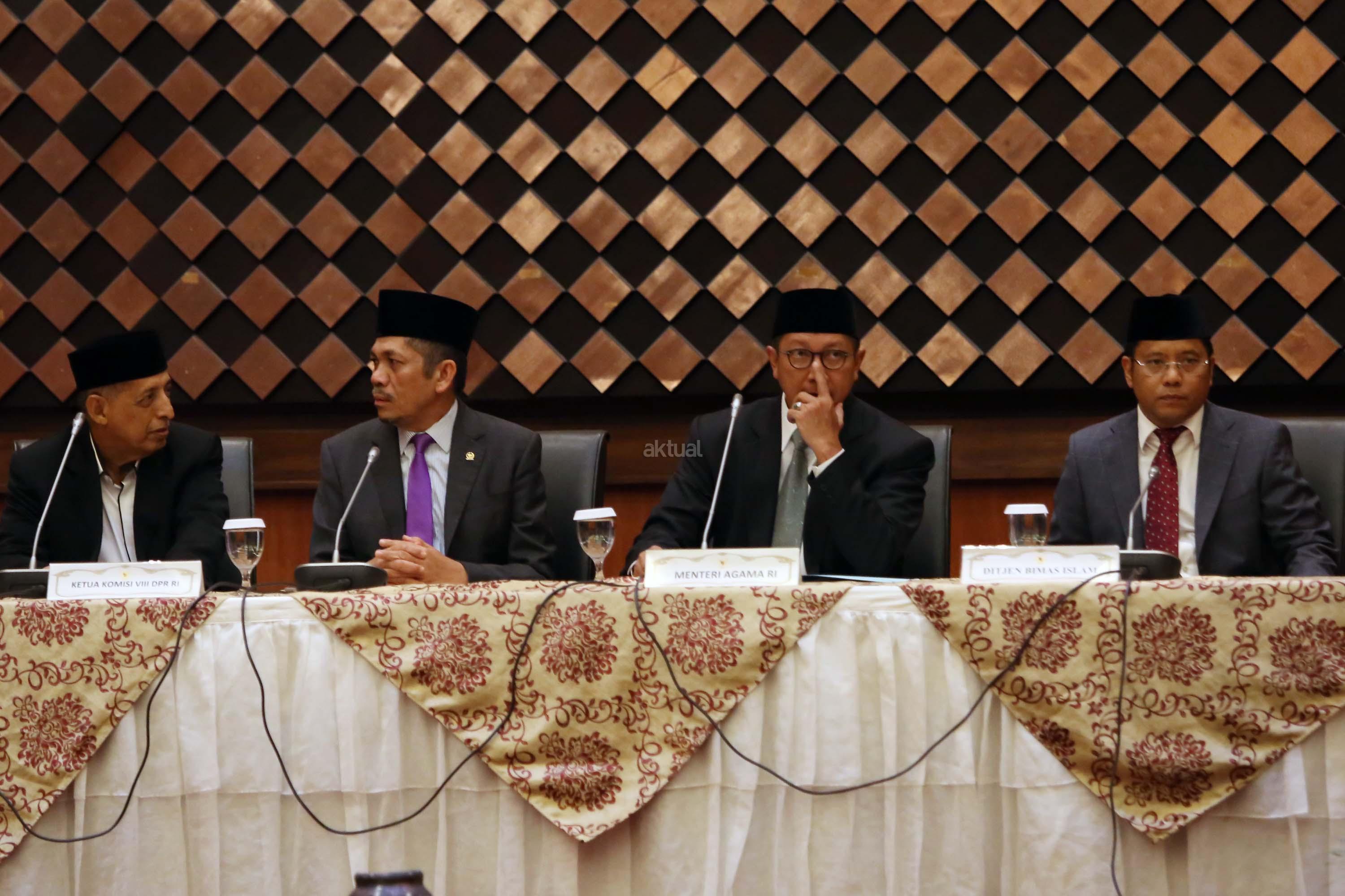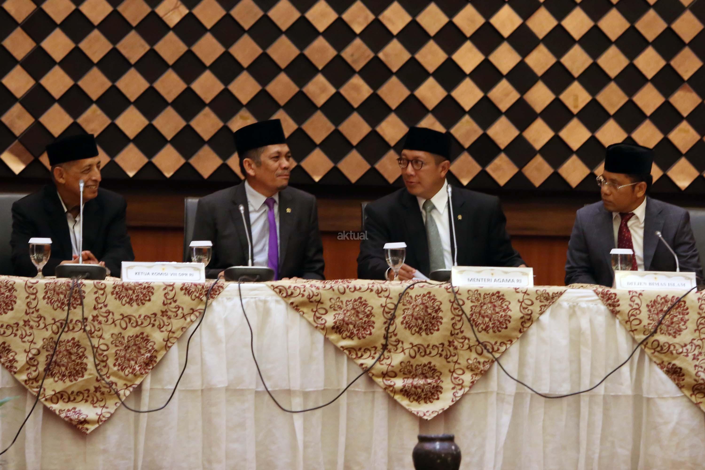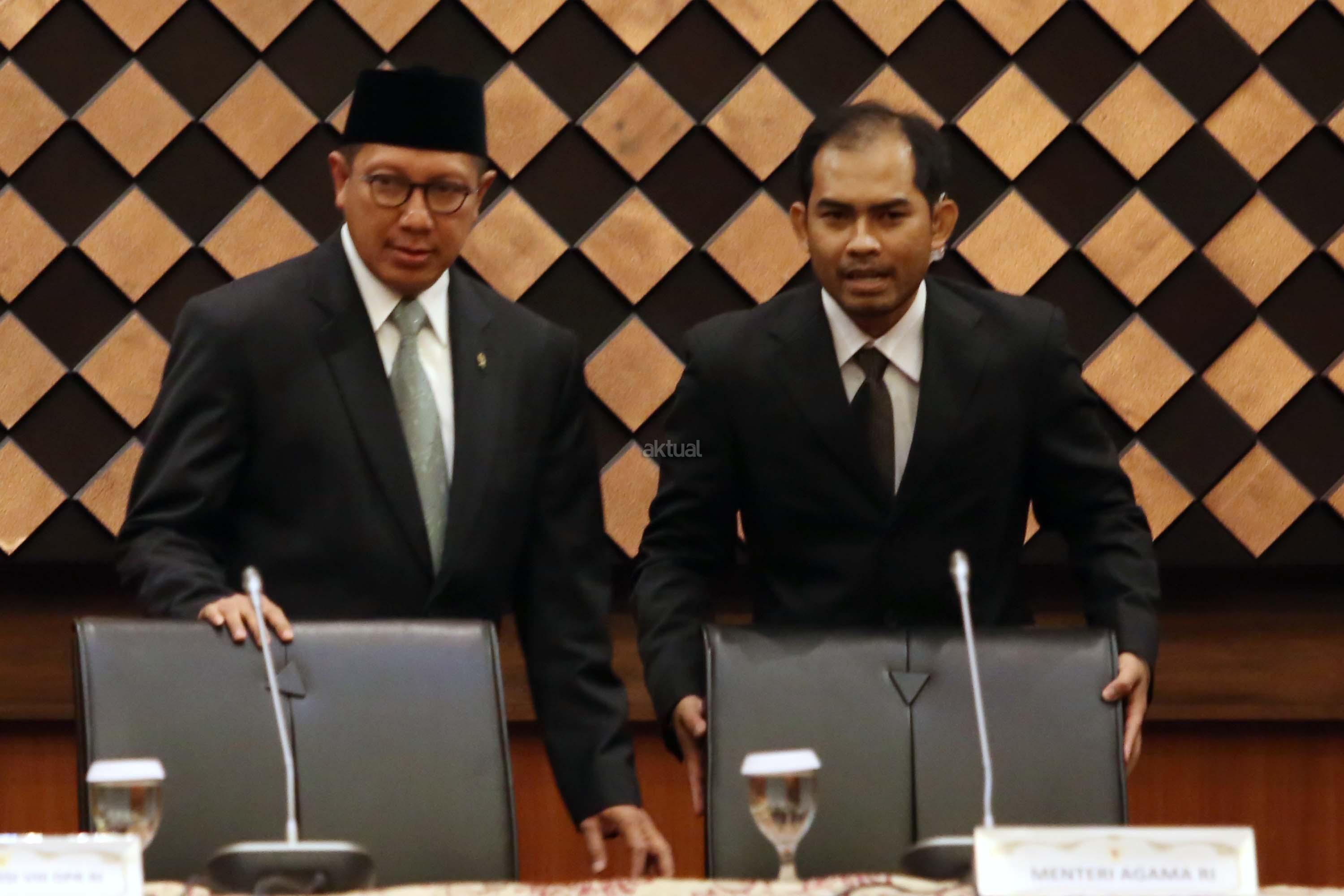 Menteri Agama Lukman Hakim Saifuddin (ketiga kiri) memimpin sidang Isbat penentuan awal Ramadan 1438 H di Kementerian Agama, Jakarta, Jumat (26/5/2017). Pemerintah memutuskan 1 Ramadan 1438 H disepakati jatuh pada Sabtu, 27 Mei 2017. AKTUAL/Munzir