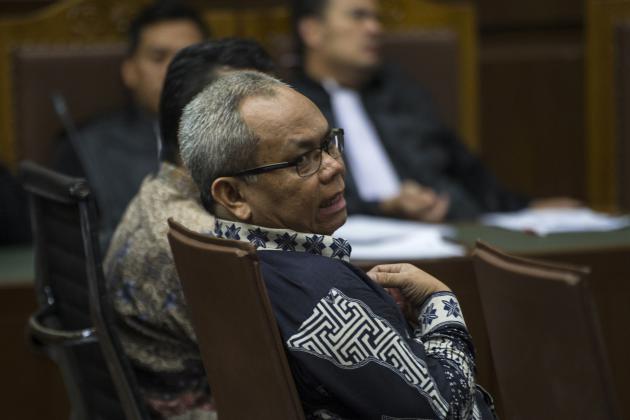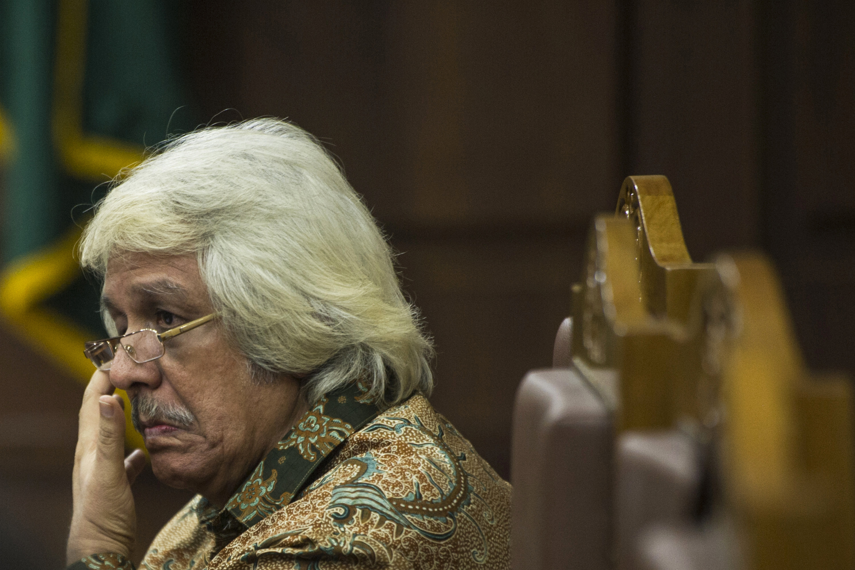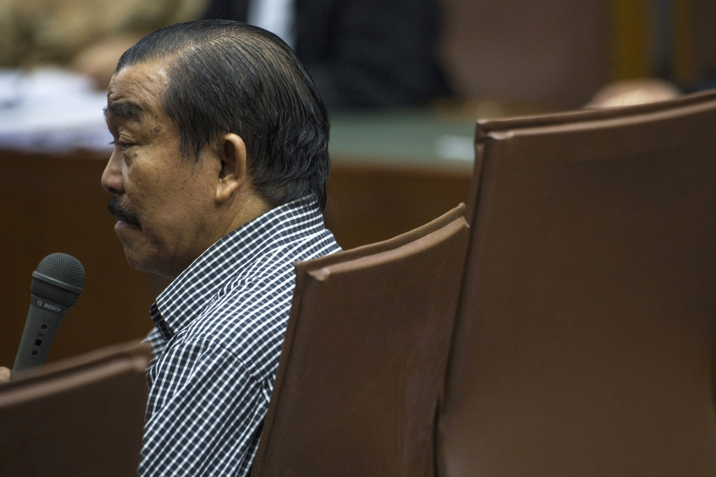 Terdakwa kasus dugaan suap persetujuan APBD Provinsi Sumatera Utara, Saleh Bangun memberikan keterangan dalam sidang lanjutan di Pengadilan Tipikor, Jakarta Pusat, Rabu (18/5). Sidang tersebut beragendakan pemeriksaan terdakwa. ANTARA FOTO/Sigid Kurniawan/pd/16.