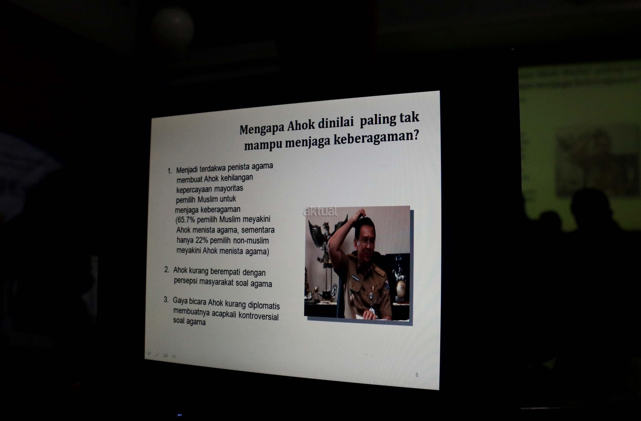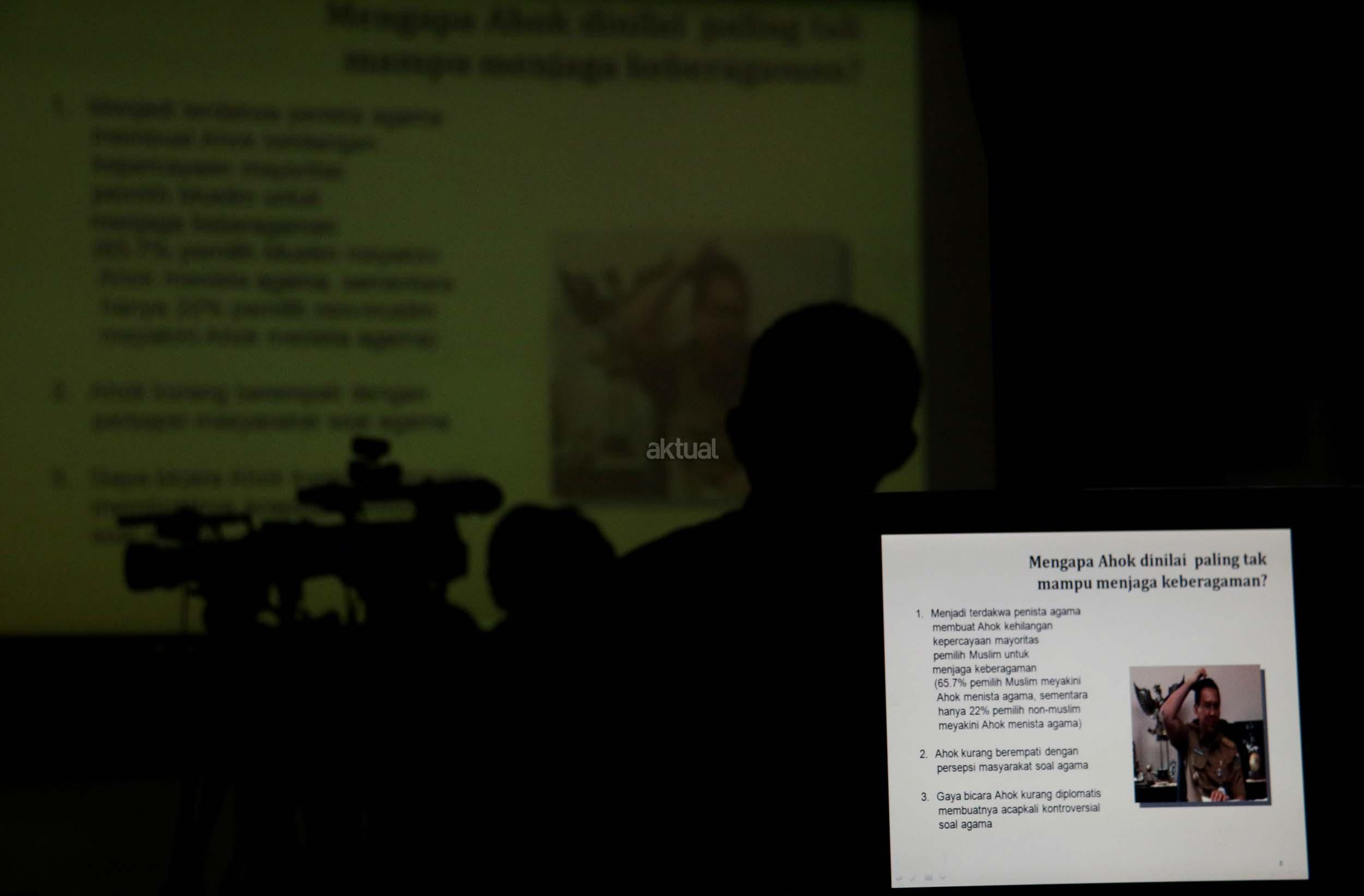 Dalam hasil survie LSI- Denny JA, Ahok kehilangan banyak pemilih muslim akibat menjadi terdakwa penistaan agama, sehingga keberagaman Jakarta berada pada angka terendah dalam pilihan responden.