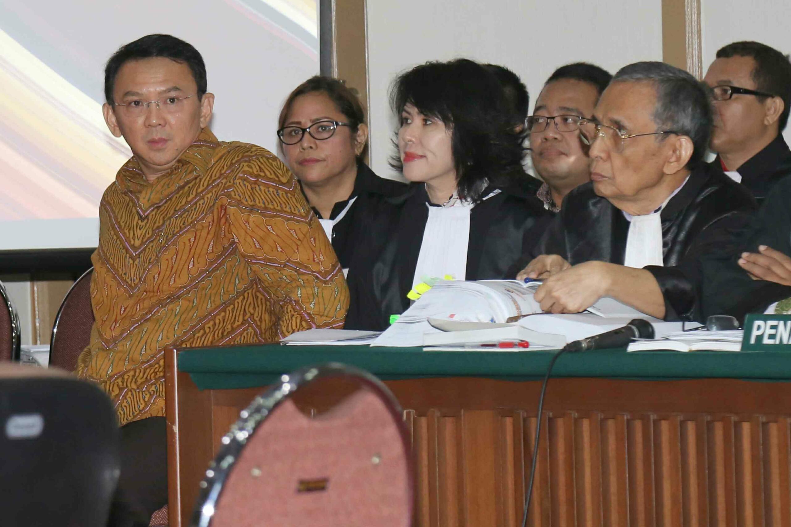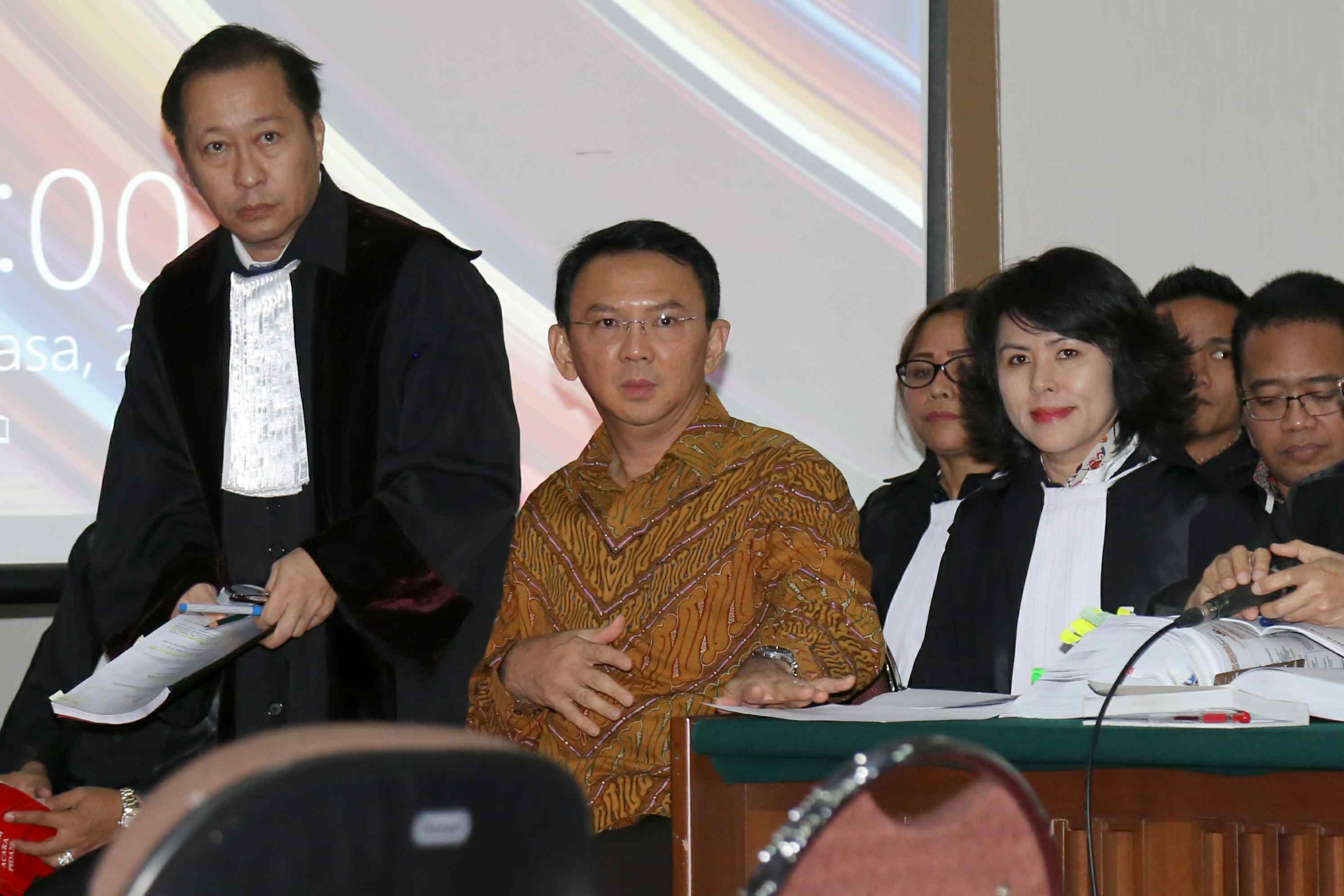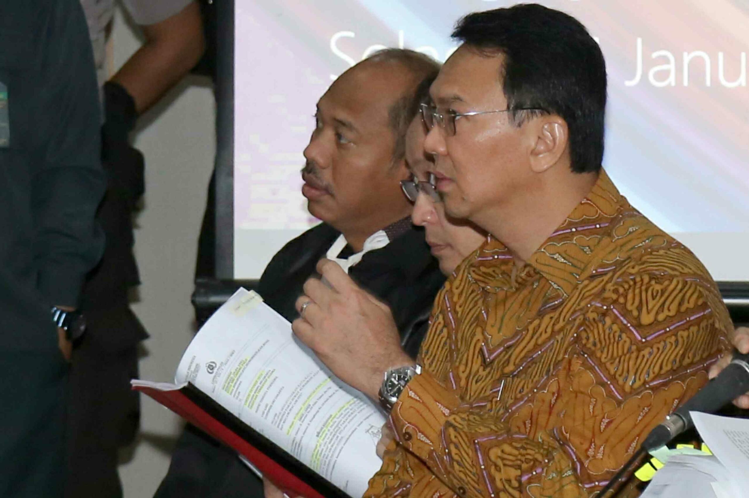 Gubernur nonaktif DKI Jakarta Basuki Tjahaja Purnama (Ahok) menjalani sidang lanjutan dugaan penistaan agama di Auditorium Kementerian Pertanian, Jakarta Selatan, Selasa (24/1). Pengadilan Negeri Jakarta Utara menggelar sidang kasus penistaan agama oleh Ahok dengan agenda mendengarkan lima keterangan saksi dari pihak Jaksa Penuntut Umum. Foto/aktual.com-Pool/Tino Oktaviano