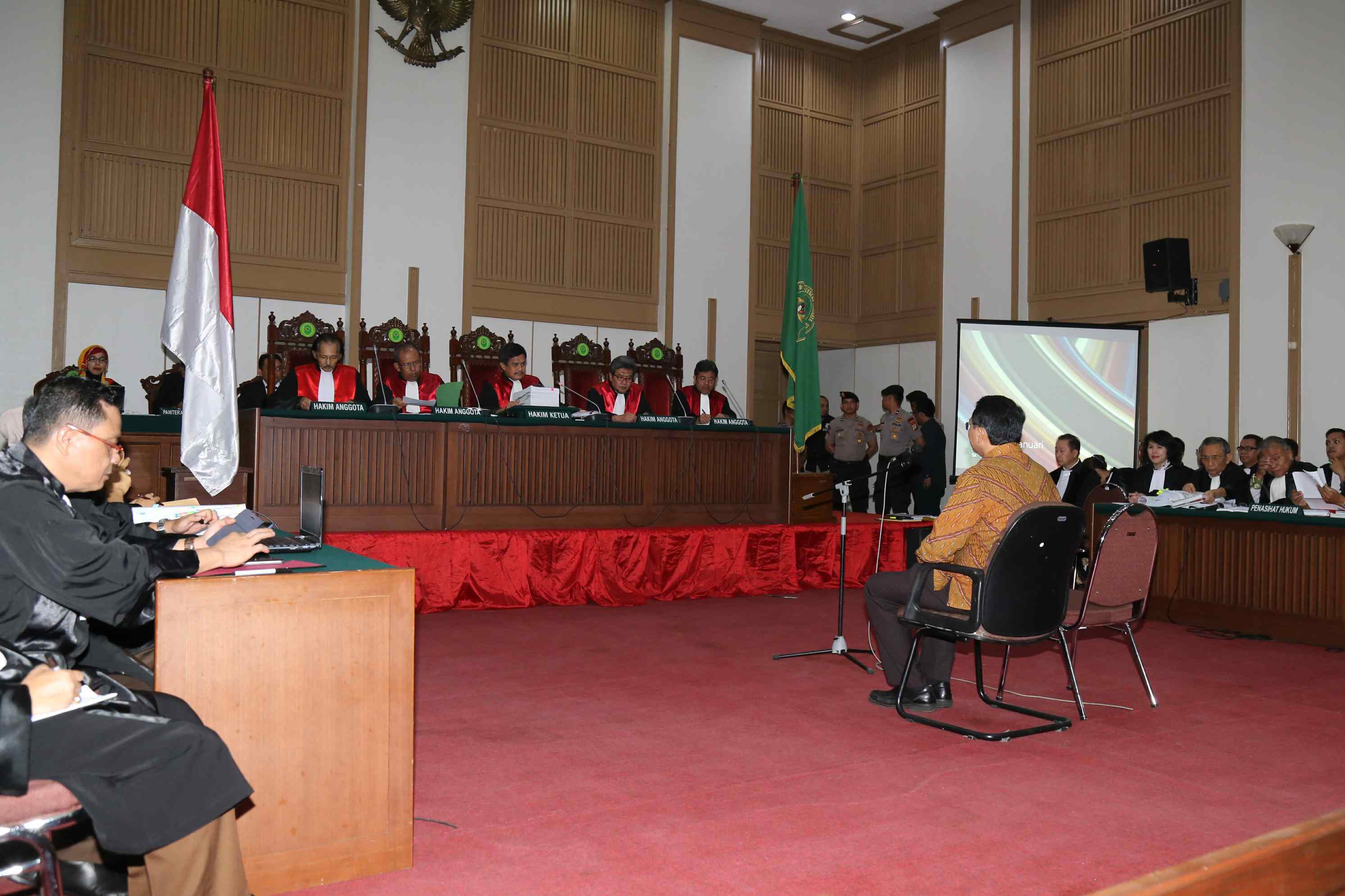 Ketua Majelis Hakim Dwiarso Budi Santiarso memimpin sidang lanjutan dugaan penistaan agama di Auditorium Kementerian Pertanian, Jakarta Selatan, Selasa (24/1). Pengadilan Negeri Jakarta Utara menggelar sidang kasus penistaan agama oleh Ahok dengan agenda mendengarkan lima keterangan saksi dari pihak Jaksa Penuntut Umum. Foto/aktual.com-Pool/Tino Oktaviano