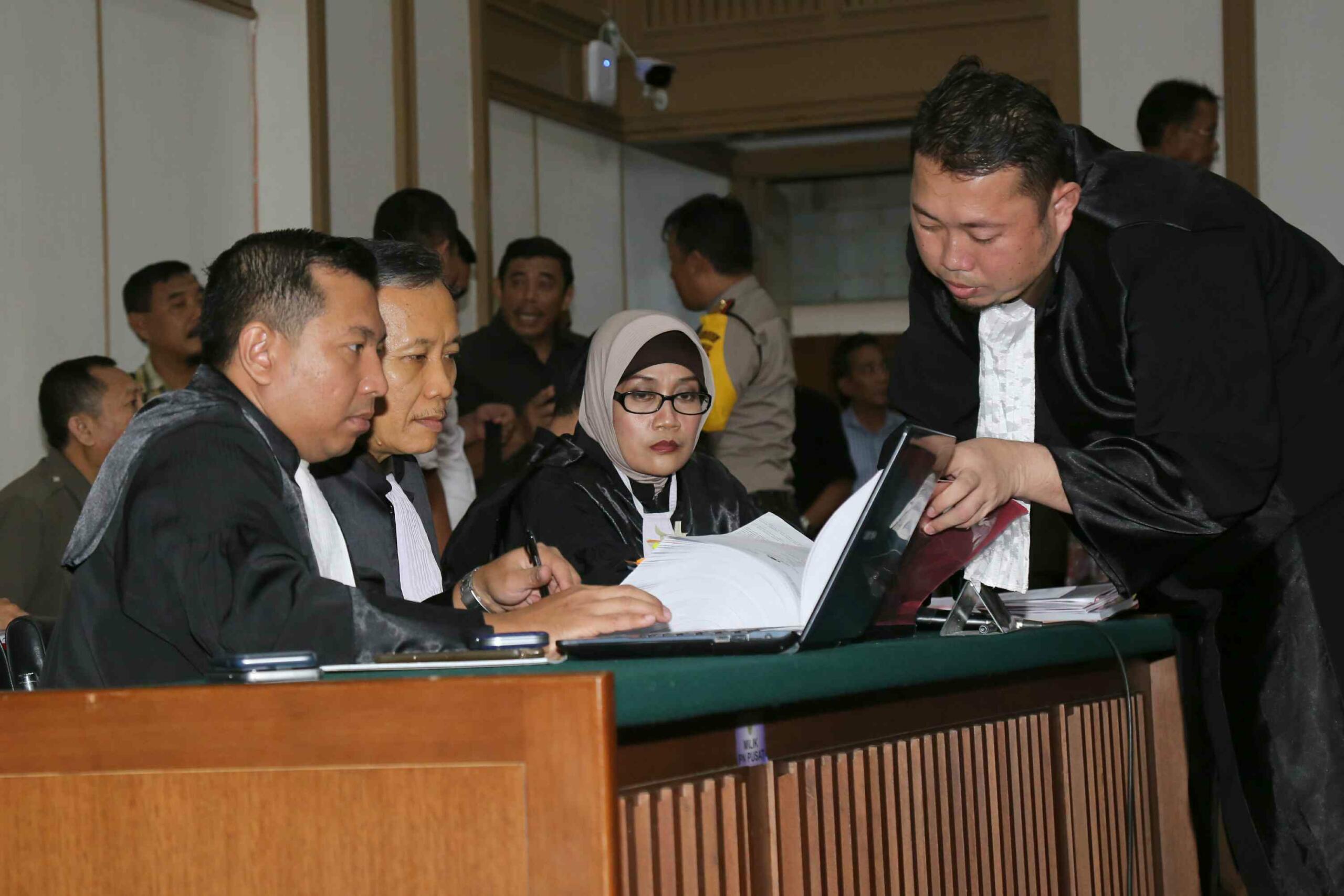 Tim Jaksa Penuntut Umum saat sidang lanjutan dugaan penistaan agama di Auditorium Kementerian Pertanian, Jakarta Selatan, Selasa (24/1). Pengadilan Negeri Jakarta Utara menggelar sidang kasus penistaan agama oleh Ahok dengan agenda mendengarkan lima keterangan saksi dari pihak Jaksa Penuntut Umum. Foto/aktual.com-Pool/Tino Oktaviano