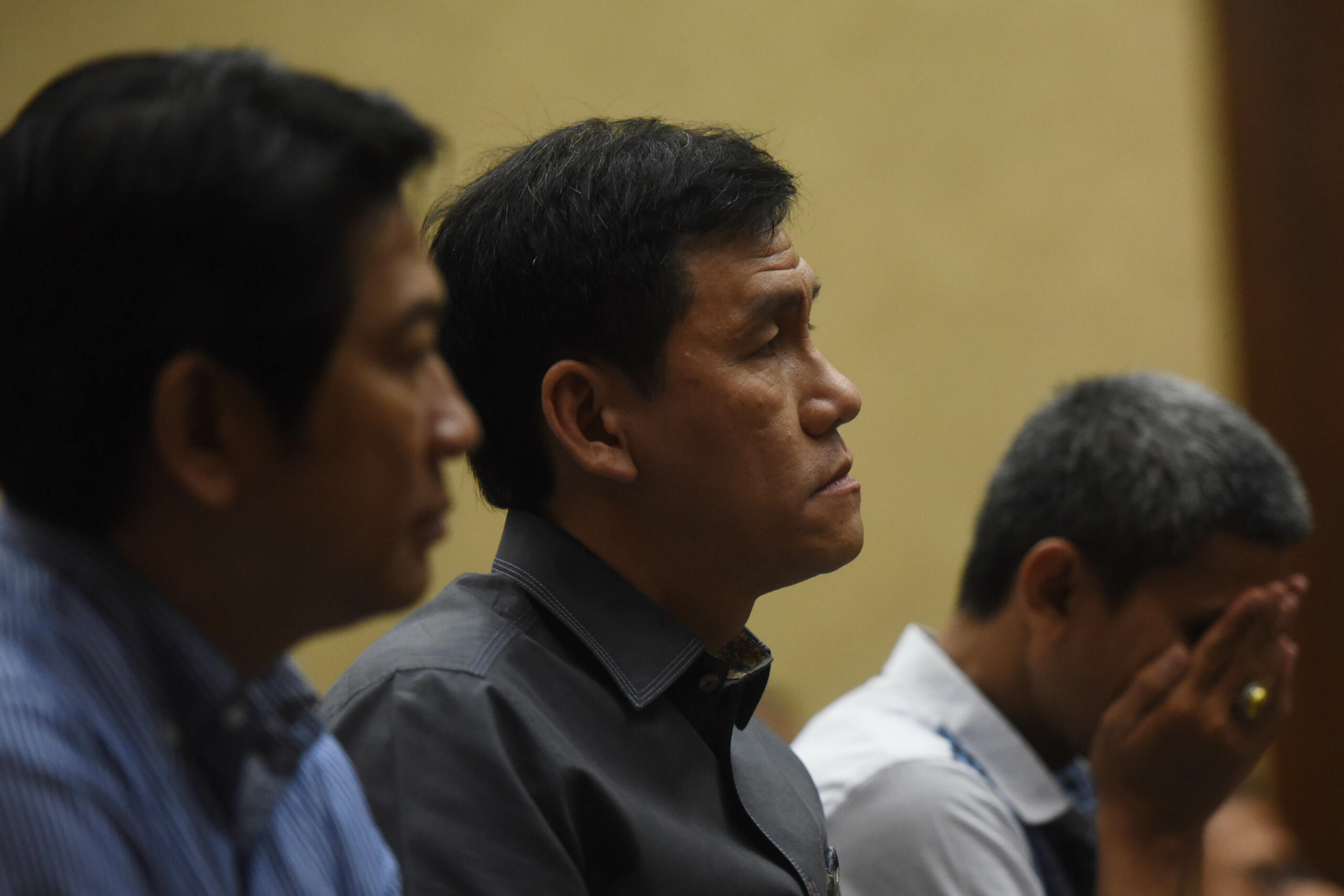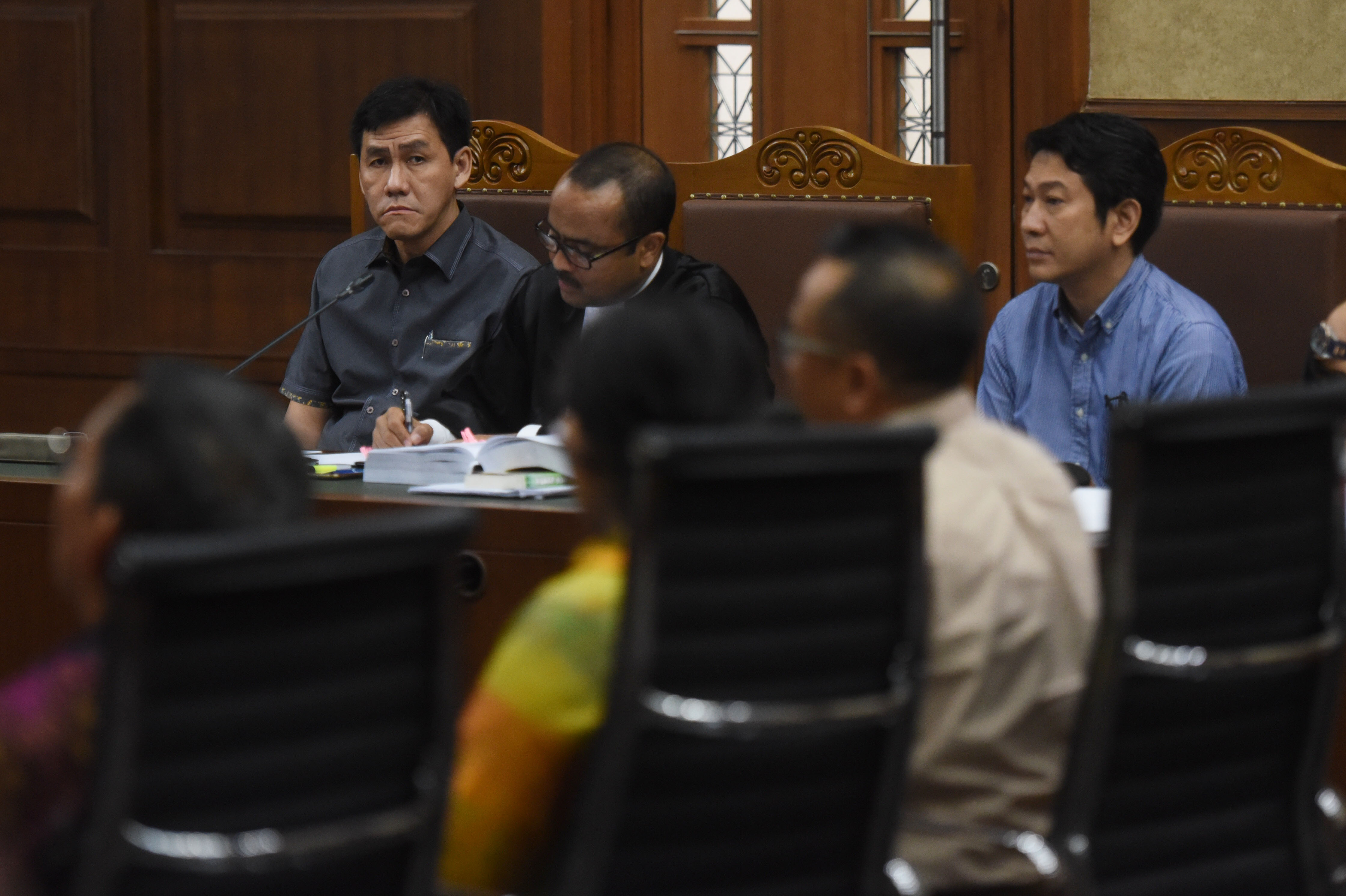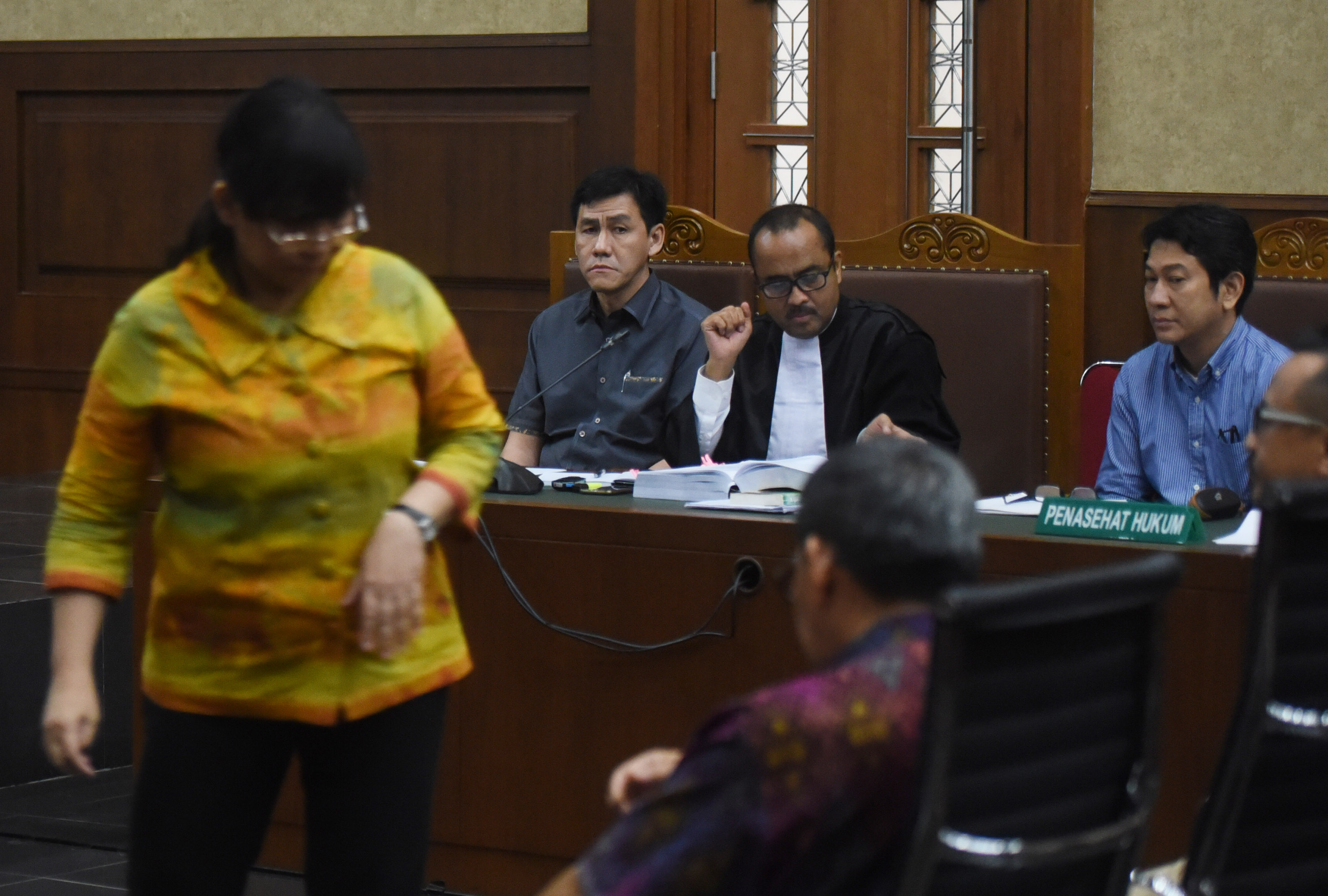 Terdakwa kasus suap pembahasan rancangan peraturan daerah tentang reklamasi Ariesman Widjaja (kedua kiri) dan Trinanda Prihantoro (kanan) mendengar keterangan saksi dalam sidang di Pengadilan Tipikor, Jakarta, Rabu (13/7). Sidang itu beragenda mendengar keterangan saksi. ANTARA FOTO/Akbar Nugroho Gumay/ama/16