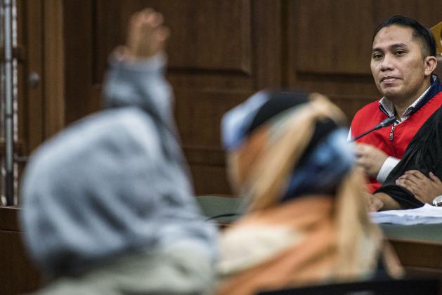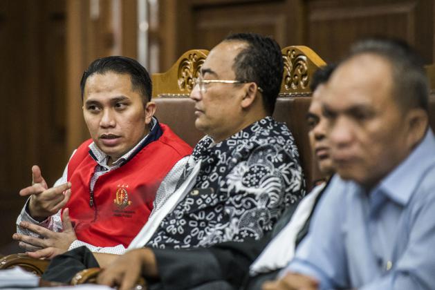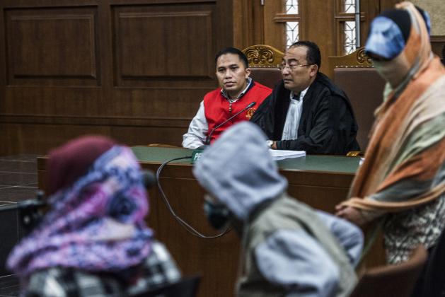 Terdakwa penganiayaan pembantu rumah tangga (PRT) Fanny Syafriansyah alias Ivan Haz (kedua kiri) menjalani sidang lanjutan di Pengadilan Negeri Jakarta Pusat, Jakarta, Rabu (15/6). Sidang lanjutan tersebut menghadirkan empat orang saksi PRT untuk dimintai keterangan. ANTARA FOTO/M Agung Rajasa/aww/16.
