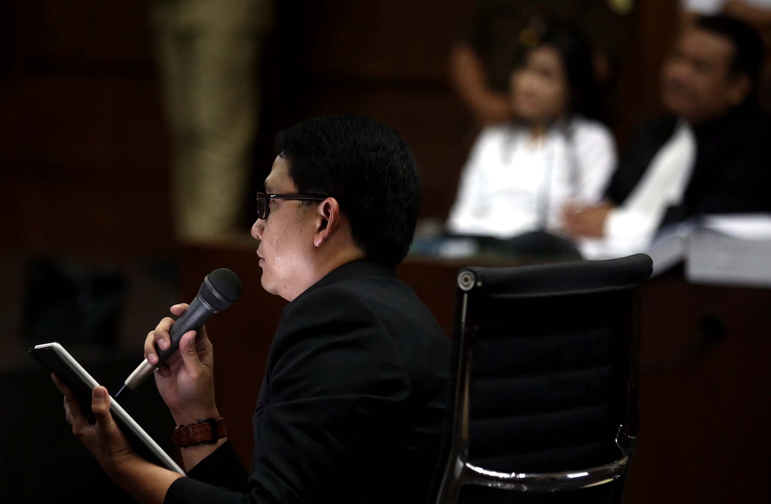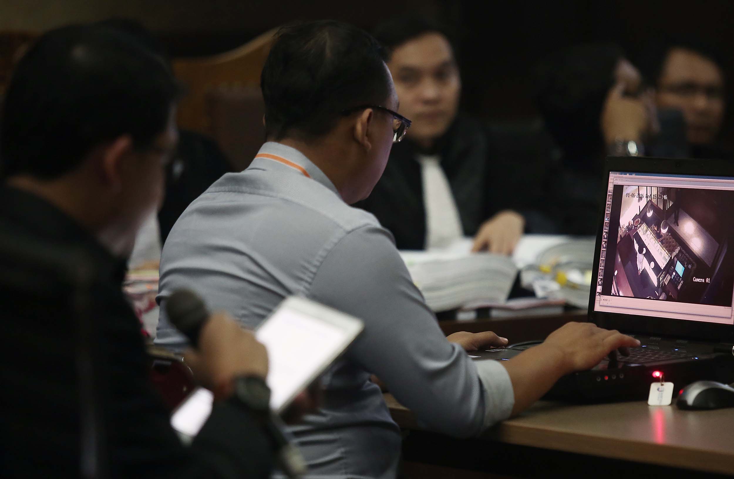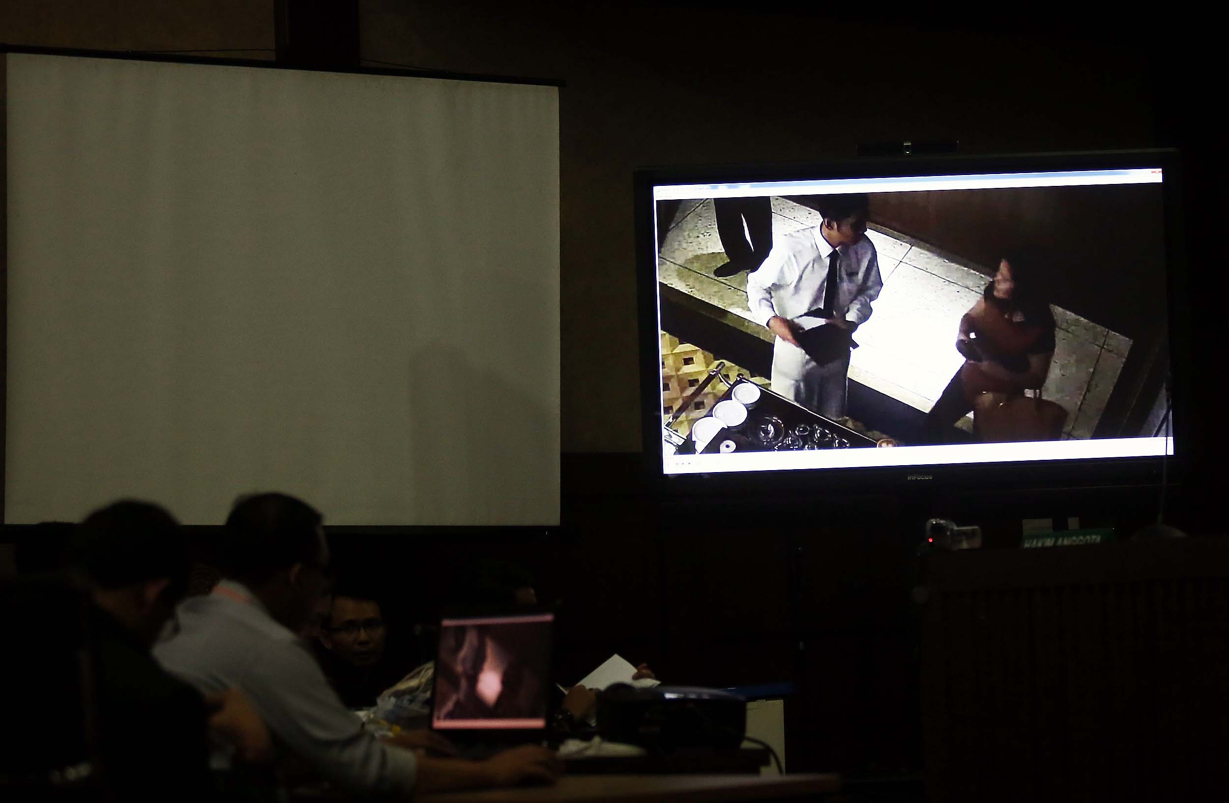 Tim ahli digital forensik membedah rekaman CCTV saat sidang lanjutan kasus kopi maut di PN Jakarta Pusat, Rabu (10/8/2016). Rekaman tersebut memperlihatkan sebelum dan sesudah kejadian di Cafe Olivier.