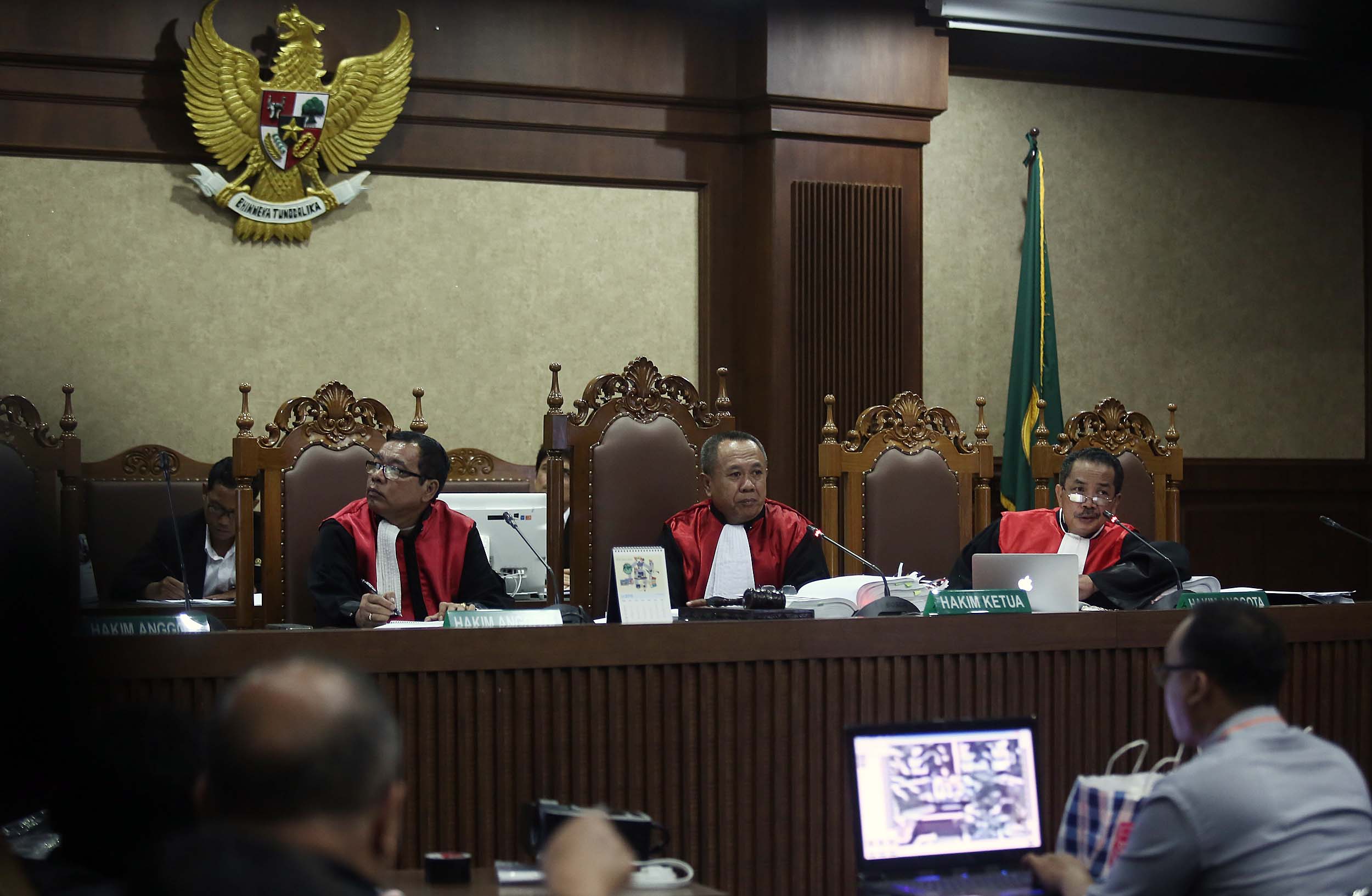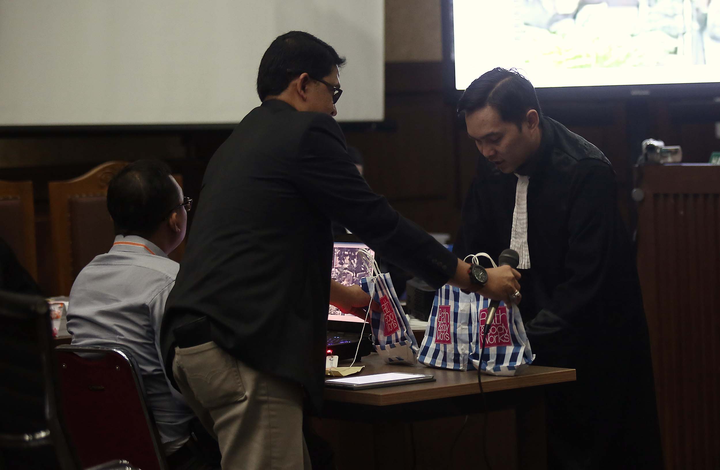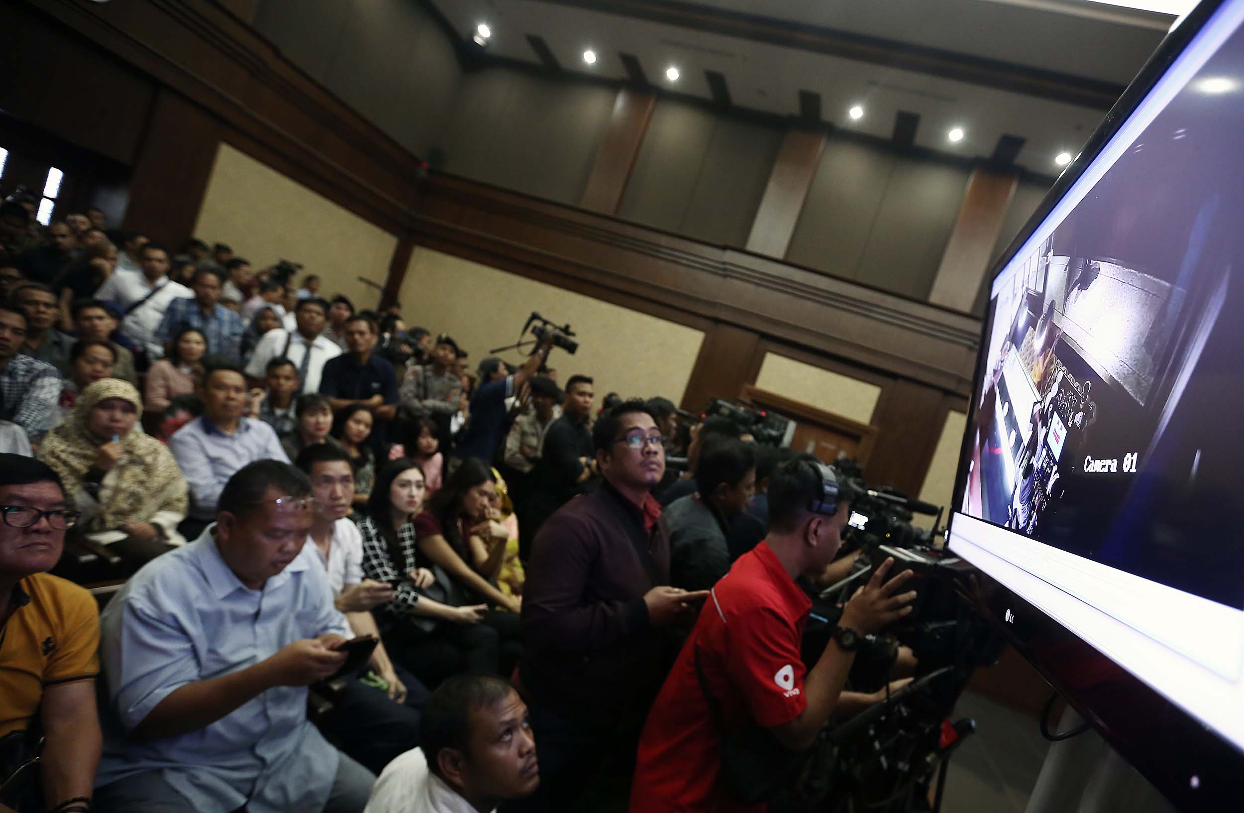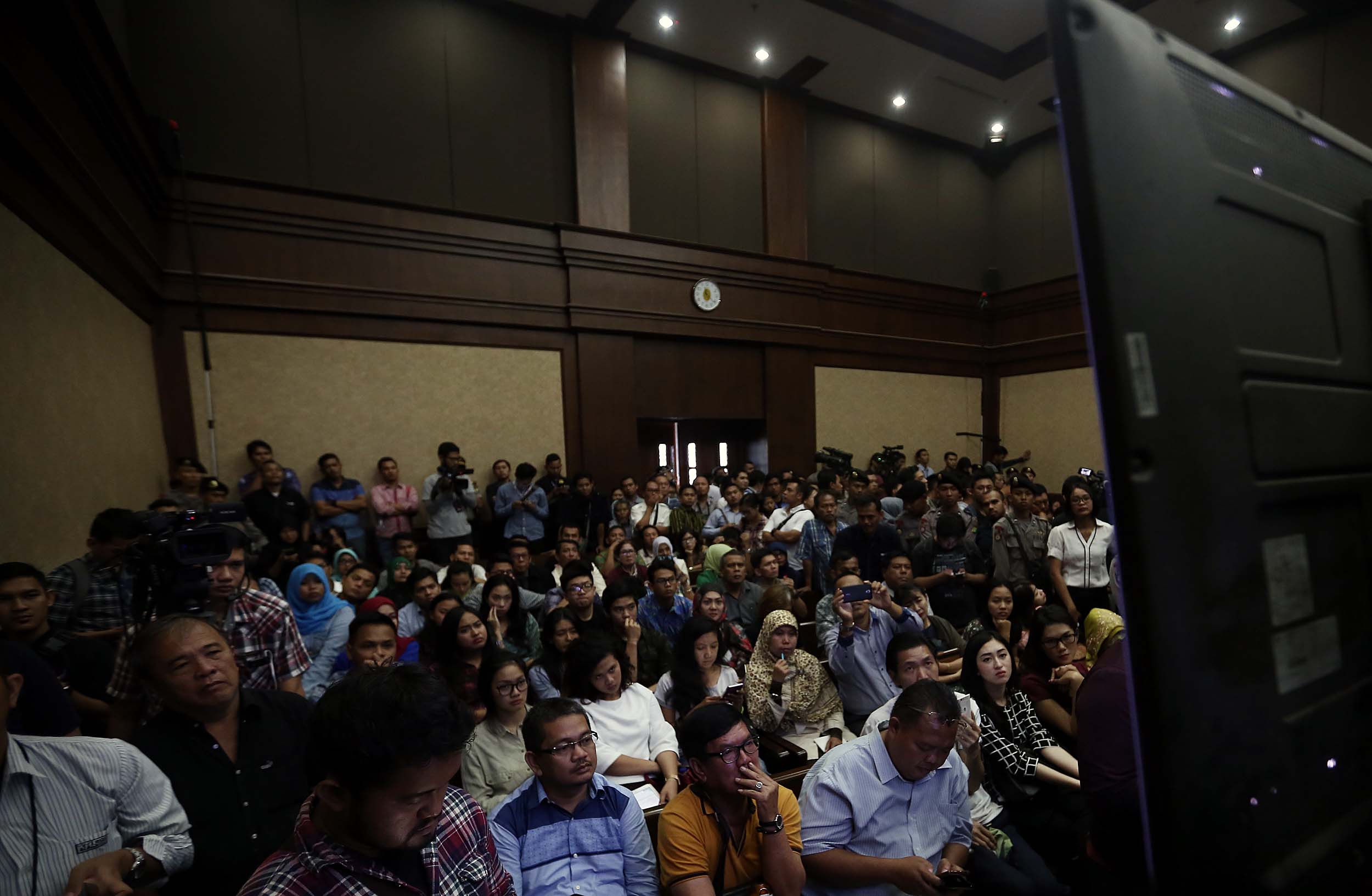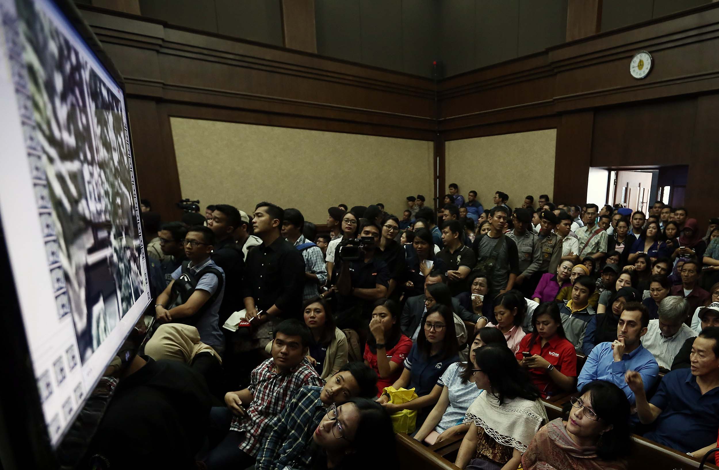 Suasana sidang Terdakwa Jessica Kumala Wongso kasus kopi maut di PN Jakarta Pusat, Rabu (10/8/2016). Rekaman tersebut memperlihatkan sebelum dan sesudah kejadian di Cafe Olivier.