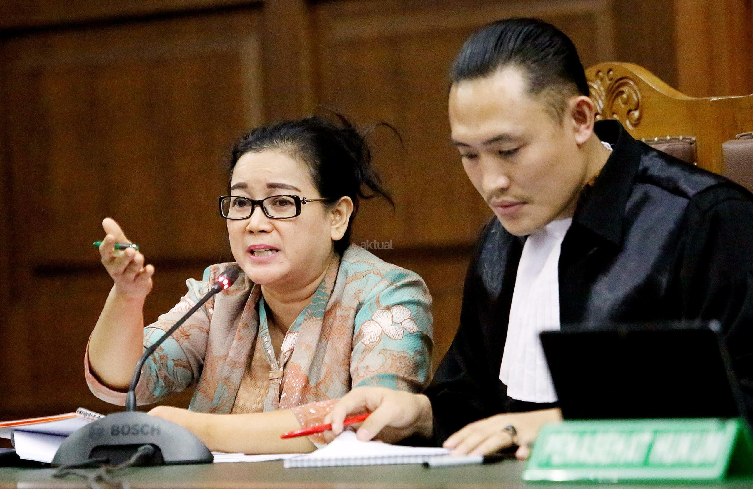 Terdakwa kasus dugaan pemberian keterangan palsu dalam sidang kasus KTP Elektronik Miryam S Haryani mengikuti sidang lanjutan di Pengadilan Tipikor, Jakarta, Senin (28/8/2017). Sidang tersebut beragendakan pemeriksaan saksi. AKTUAL/Munzir