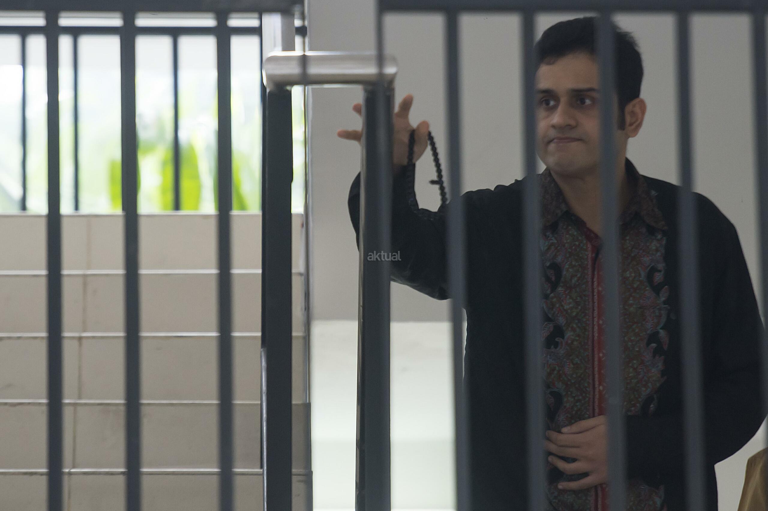 Terdakwa kasus dugaan tindak pidana pencucian uang (TPPU) Muhammad Nazaruddin duduk menunggu dimulainya sidang lanjutan di Pengadilan Tipikor, Jakarta, Rabu (20/4). Jaksa Penuntut Umum menghadirkan dua orang saksi untuk dimintai keterangannya terkait perkara tersebut. ANTARA FOTO/Widodo S. Jusuf/Spt/16.