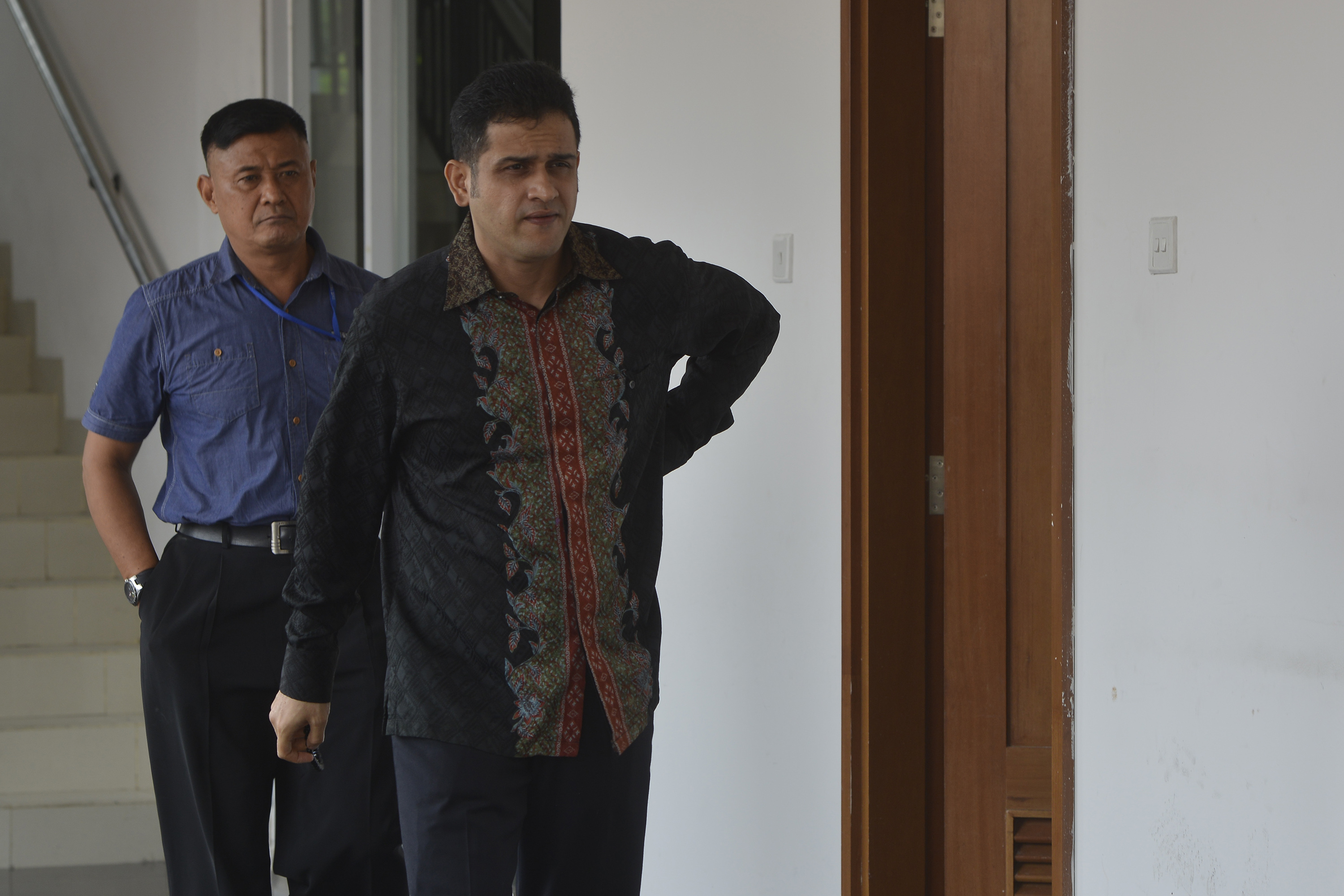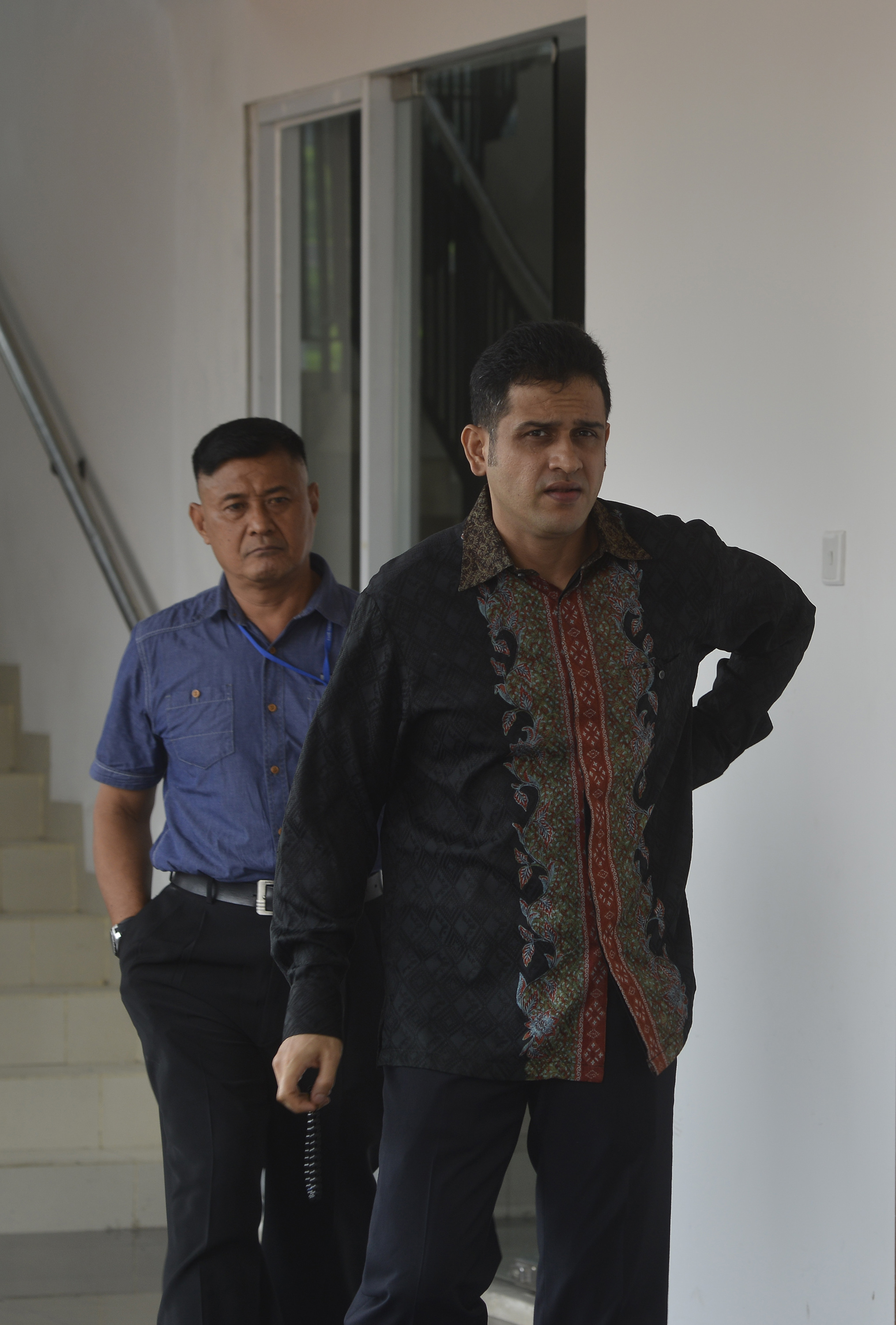 Mantan Bendahara Umum Partai Demokrat Muhammad Nazaruddin (kanan) berjalan sebelum sidang lanjutan di Pengadilan Tipikor, Jakarta, Rabu (27/1). Sidang untuk perkara dugaan pencucian uang pembelian saham Garuda itu menghadirkan sejumlah saksi dari pihak sekuritas. ANTARA FOTO/Rosa Panggabean/ama/16.