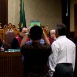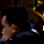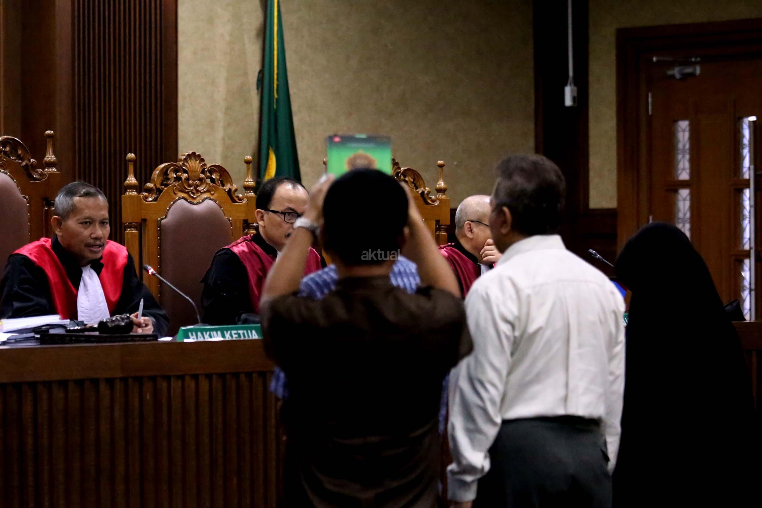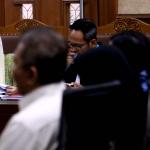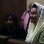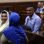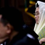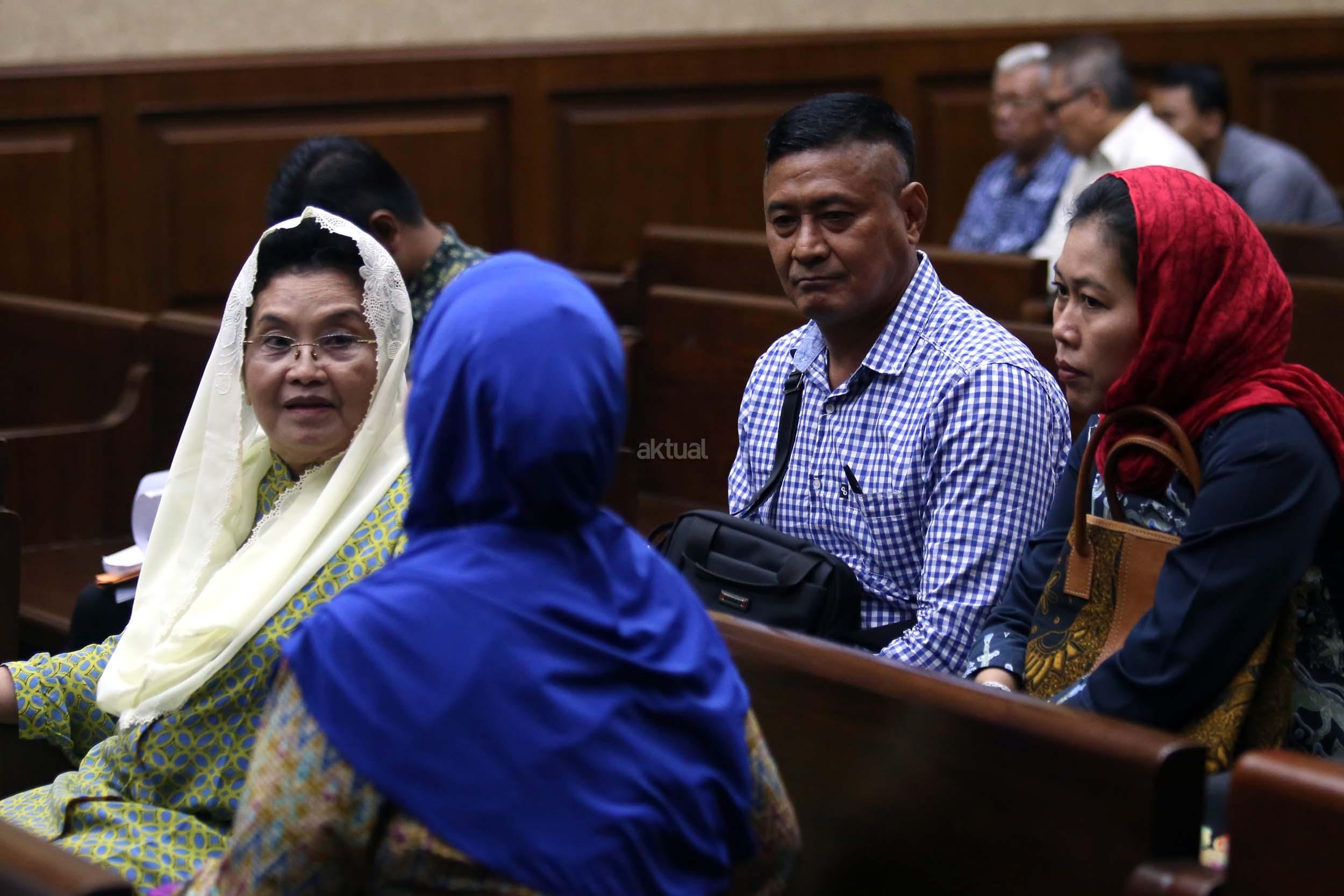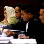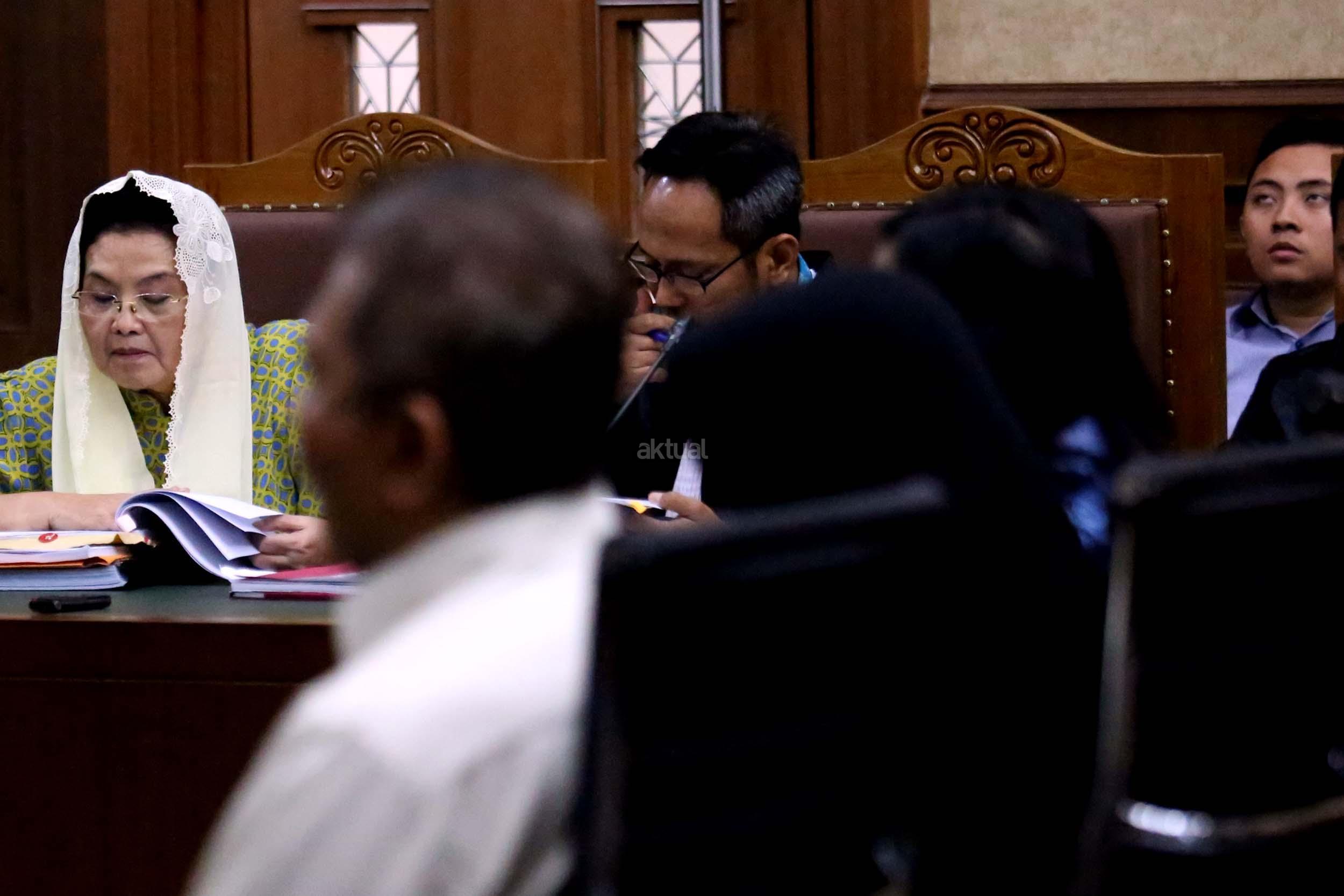 Terdakwa kasus dugaan korupsi pengadaan alat kesehatan (alkes) tahun 2005 Siti Fadilah Supari (kanan) mendengarkan keterangan saksi dalam sidang lanjutan di Pengadilan Tipikor, Jakarta, Rabu (15/3/2017). Jaksa penuntut umum menghadirkan empat saksi dari internal Kementerian Kesehatan untuk dikonfrontir soal pengadaan alat kesehatan dari anggaran Daftar Isian Pelaksanaan Anggaran (DIPA) tahun 2005-2007. AKTUAL/Munzir