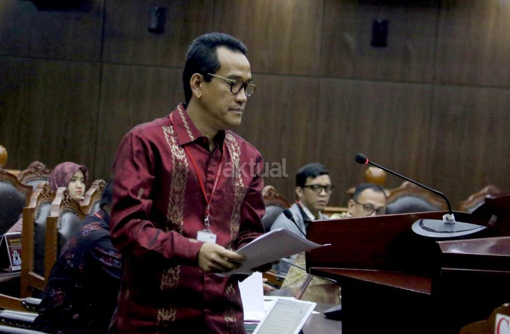 Pakar Hukum Tata Negara Refly Harun sebagai ahli dari KPK. saat menyampaikan paparannya di depan majelis hakim MK saat sidang lanjutan uji materi Pasal 79 UU MD3 di Mahkamah Konstitusi, Jakarta, Rabu (25/10/2017). Sidang lanjutan ini beragenda mendengarkan saksi ahli,Uji materi ini berkaitan dengan pembentukan pansus hak angket KPK dan beberapa ahli dihadirkan di antaranya Pakar Hukum Acara Pidana Arif Setiawan dan Pakar Hukum Tata Negara Refly Harun sebagai ahli dari KPK, Mantan Hakim Mahkamah Konstitusi Maruarar Siahaan sebagai saksi ahli dari Pemerintah. AKTUAL/Munzir