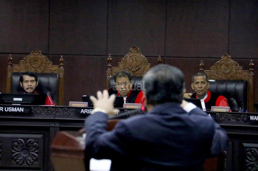 Sidang lanjutan ini beragenda mendengarkan saksi ahli,Uji materi ini berkaitan dengan pembentukan pansus hak angket KPK dan beberapa ahli dihadirkan di antaranya Pakar Hukum Acara Pidana Arif Setiawan dan Pakar Hukum Tata Negara Refly Harun sebagai ahli dari KPK, Mantan Hakim Mahkamah Konstitusi Maruarar Siahaan sebagai saksi ahli dari Pemerintah. AKTUAL/Munzir