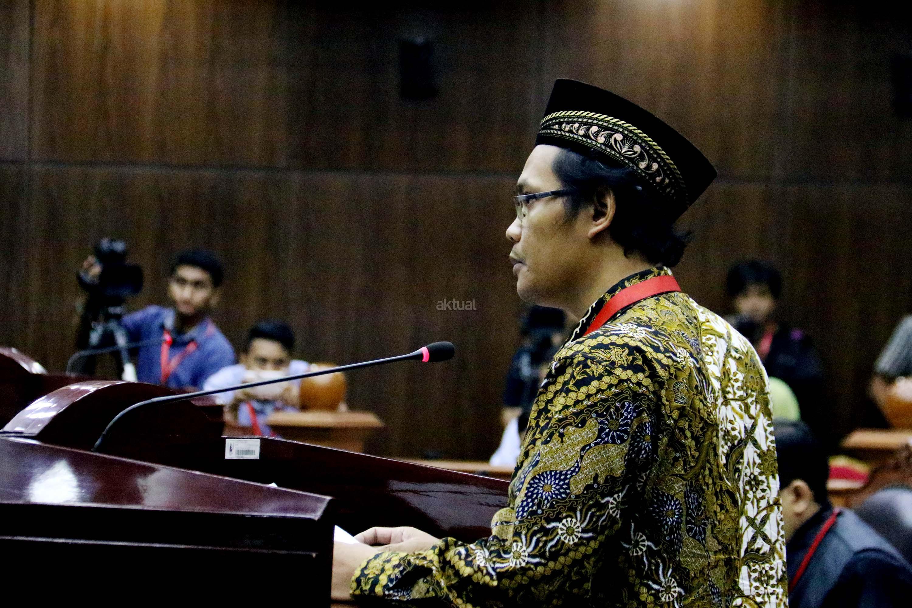Peneliti LIPI, Ahmad Najib Burhani memberikan pendapatnya secara bergantian dalam sidang uji materi Mahkamah Konstitusi, Jakarta, Selasa (7/11/2017). Pendapat keduanya terkait dengan uji materi penodaan agama yang diajukan oleh Jamaah Ahmadiyah Indonesia (JAI). JAI menguji Undang-Undang Nomor 1/PNPS/1965 tentang Pencegahan Penyalahgunaan dan/atau Penodaan Agama juncto Undang-Undang Nomor 5 Tahun 1969 tentang Pernyataan Berbagai Penetapan Presiden dan Peraturan Presiden sebagai Undang-Undang. AKTUAL/Munzir