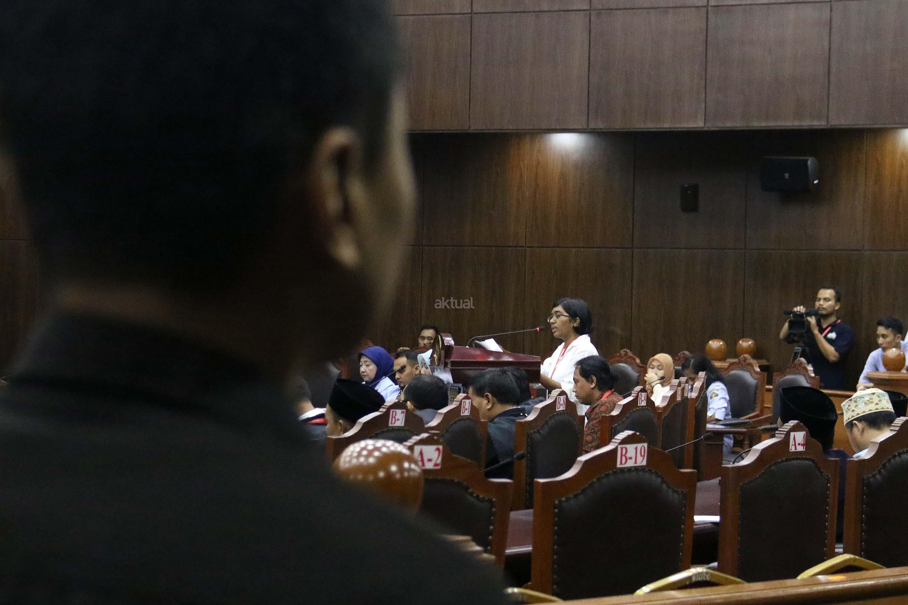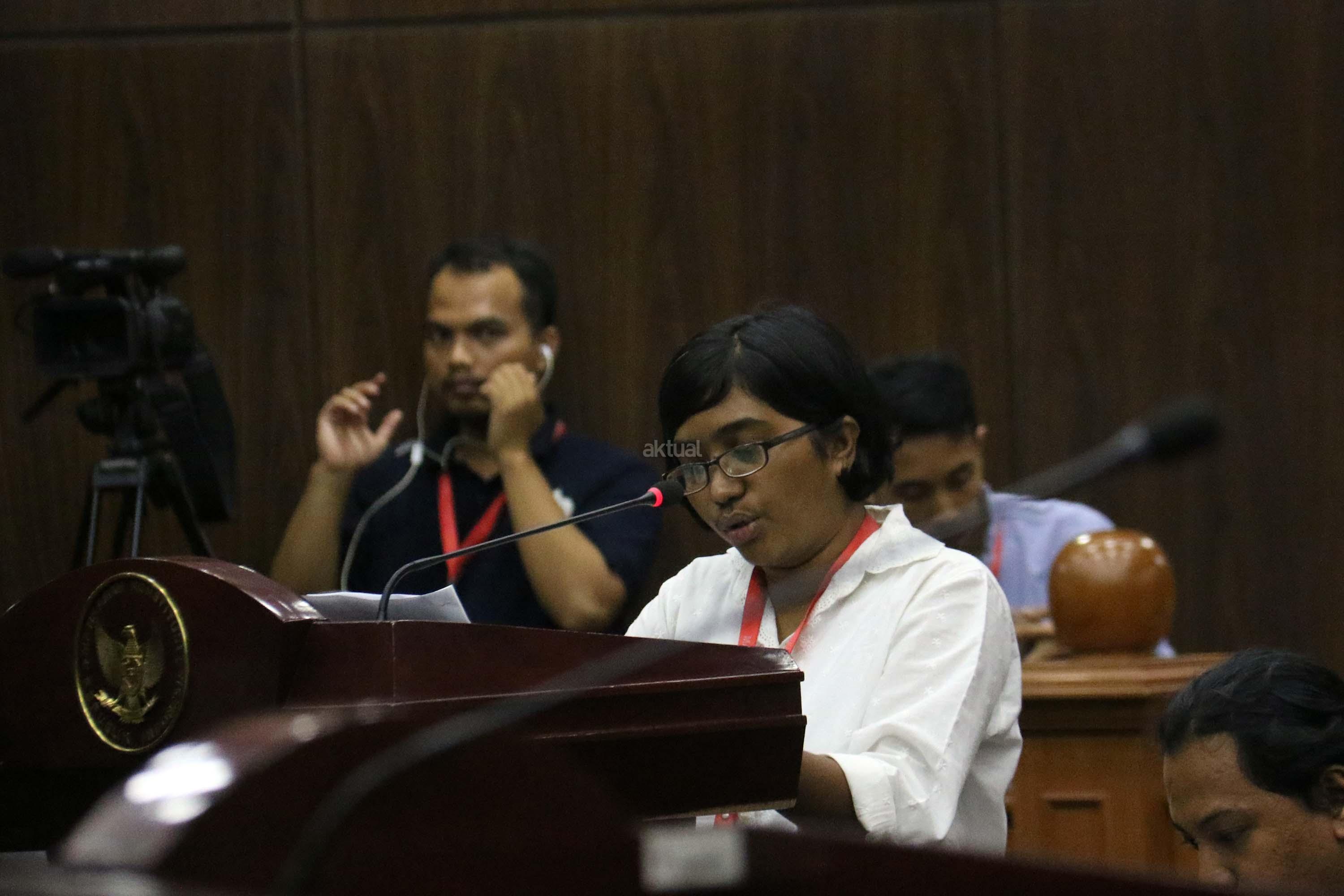 Ketua Yayasan Lembaga Bantuan Hukum Indonesia (YLBHI),Asfinawati memberikan pendapatnya secara bergantian dalam sidang uji materi Mahkamah Konstitusi, Jakarta, Selasa (7/11/2017). Pendapat keduanya terkait dengan uji materi penodaan agama yang diajukan oleh Jamaah Ahmadiyah Indonesia (JAI). JAI menguji Undang-Undang Nomor 1/PNPS/1965 tentang Pencegahan Penyalahgunaan dan/atau Penodaan Agama juncto Undang-Undang Nomor 5 Tahun 1969 tentang Pernyataan Berbagai Penetapan Presiden dan Peraturan Presiden sebagai Undang-Undang. AKTUAL/Munzir
