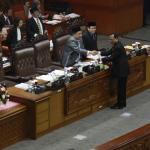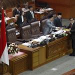Ketua Komisi V DPR RI, Fary Djemy Francis meyerahkan laporan kepada Wakil Ketua DPR RI Fahri Hamzah dan Wakil Ketua DPR RI Taufik Kurniawan saat rapat paripurna penutupan masa sidang II di gedung Perlemen, Jakarta, Kamis (15/12/2016). Badan Legislasi (Baleg) DPR memutuskan secara resmi memasukkan revisi Undang-undang Nomor 14 Tahun 2014 tentang perubahan UU Nomor 17 Tahun 2014 tentang MPR, DPR, DPD dan DPRD (UU MD3) ke dalam Program Legislasi Nasional (Prolegnas) 2016. Keputusan ini diambil dalam rapat bersama Menteri Hukum dan HAM Yasonna H Laoly. AKTUAL/Tino Oktaviano