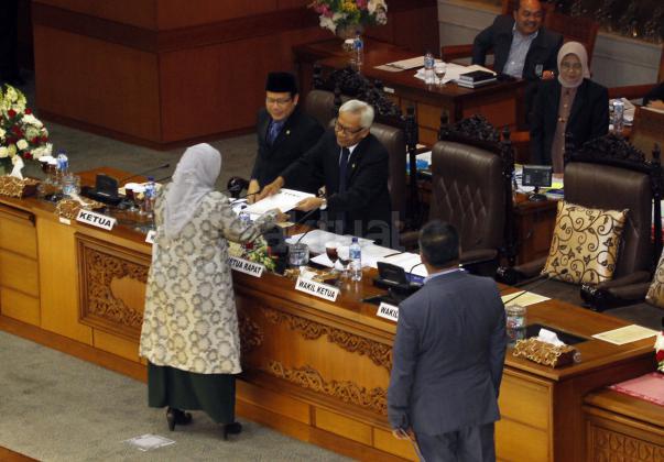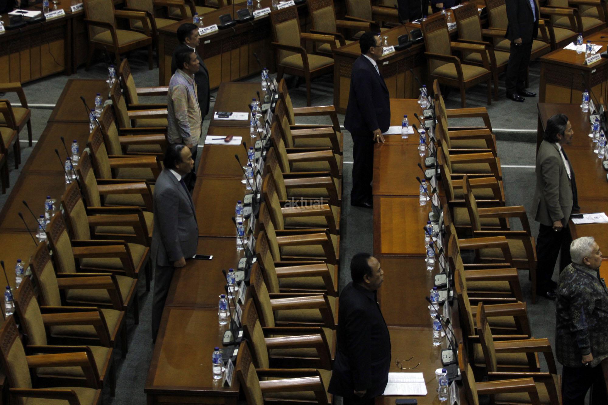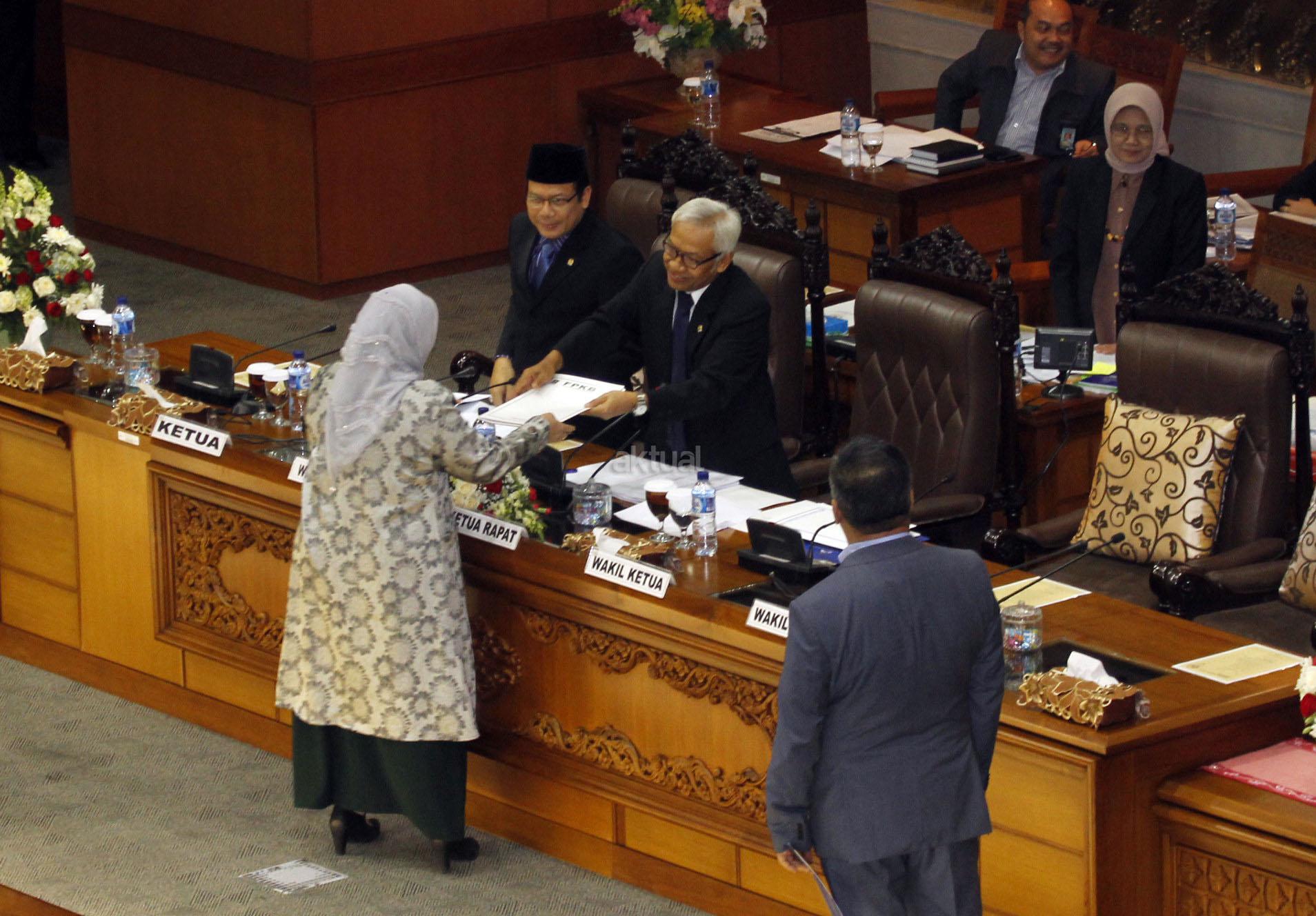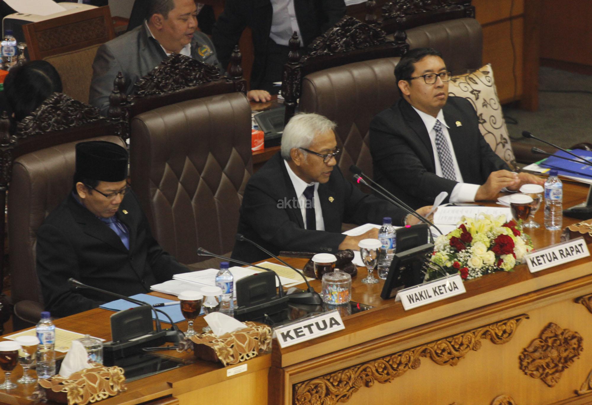 Wakil Ketua DPR, Agus Hermanto Memimpin Sidang Paripurna Ke-7 DPR-RI Masa Persidangan I Tahun Sidang 2015-2016 di Kompleks Parlemen, Senayan, Jakarta, Selasa (13/10/2015). Sidang Paripurna Ke-7 membahas agenda pendapat fraksi-fraksi dan pengambilan keputusan dua RUU Usul Inisiatif Alat Kelengkapan Dewan menjadi RUU DPR-RI yaitu Inisiatif RUU Jasa Konstruksi dan RUU Perlindungan Pekerja Indonesia di Luar Negeri sert Penetapan Susunan Keanggota Panitia Angket Pelindo II dan RUU Tentang Larangan Minuman Beralkohol.