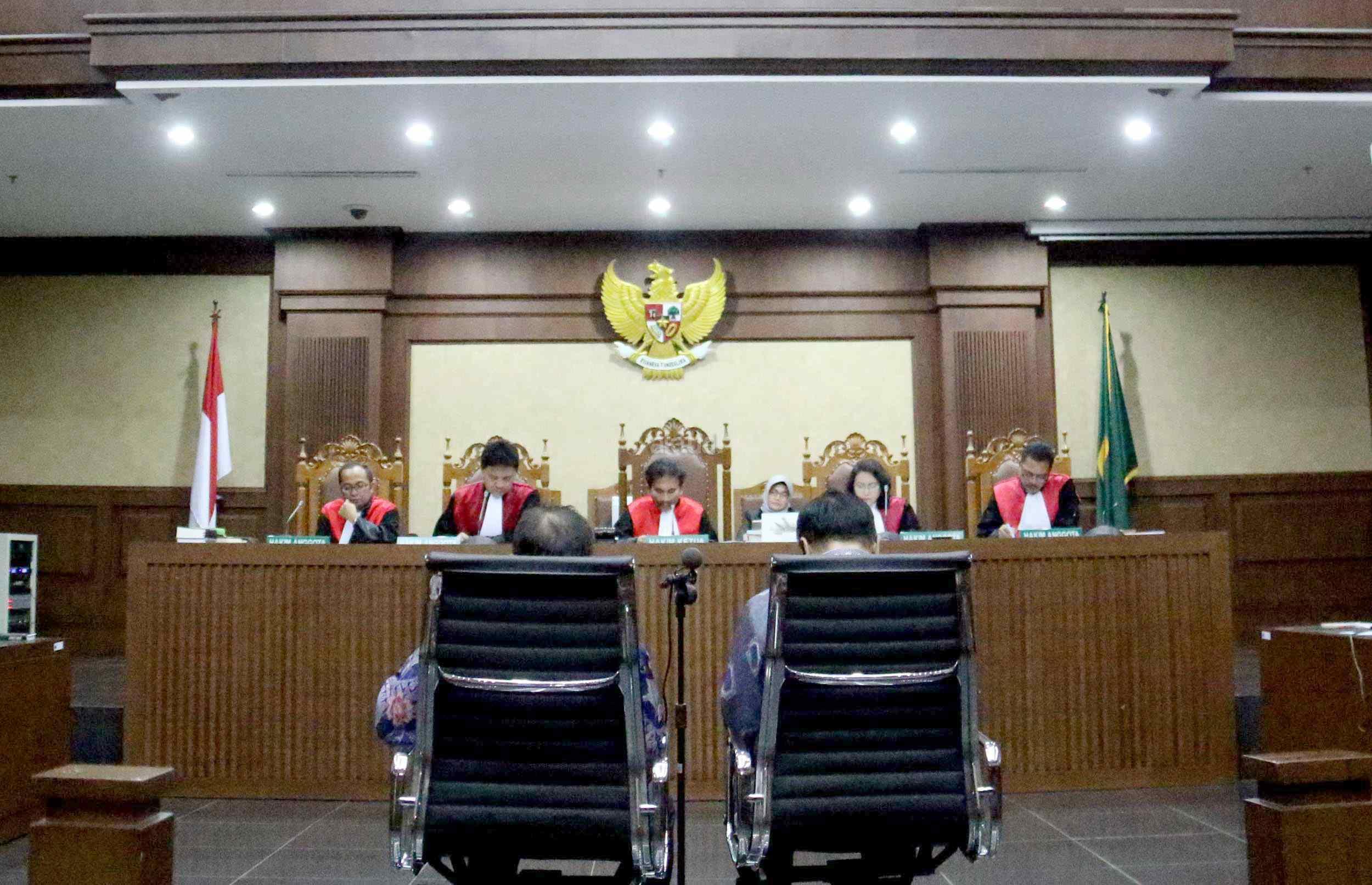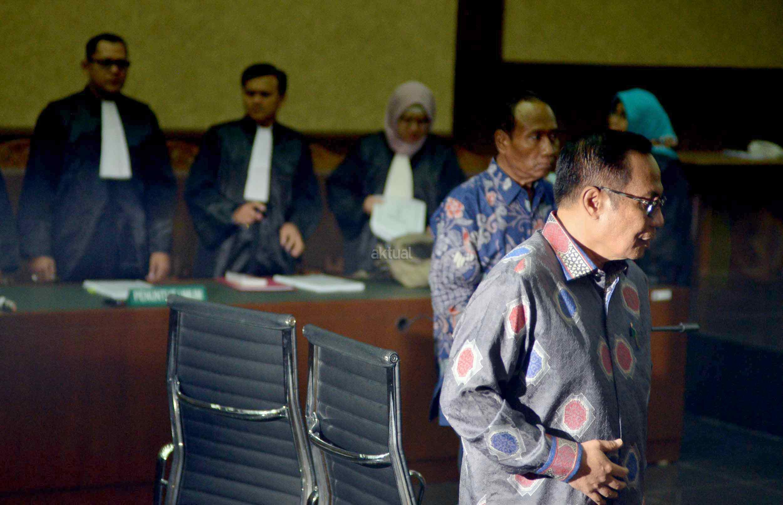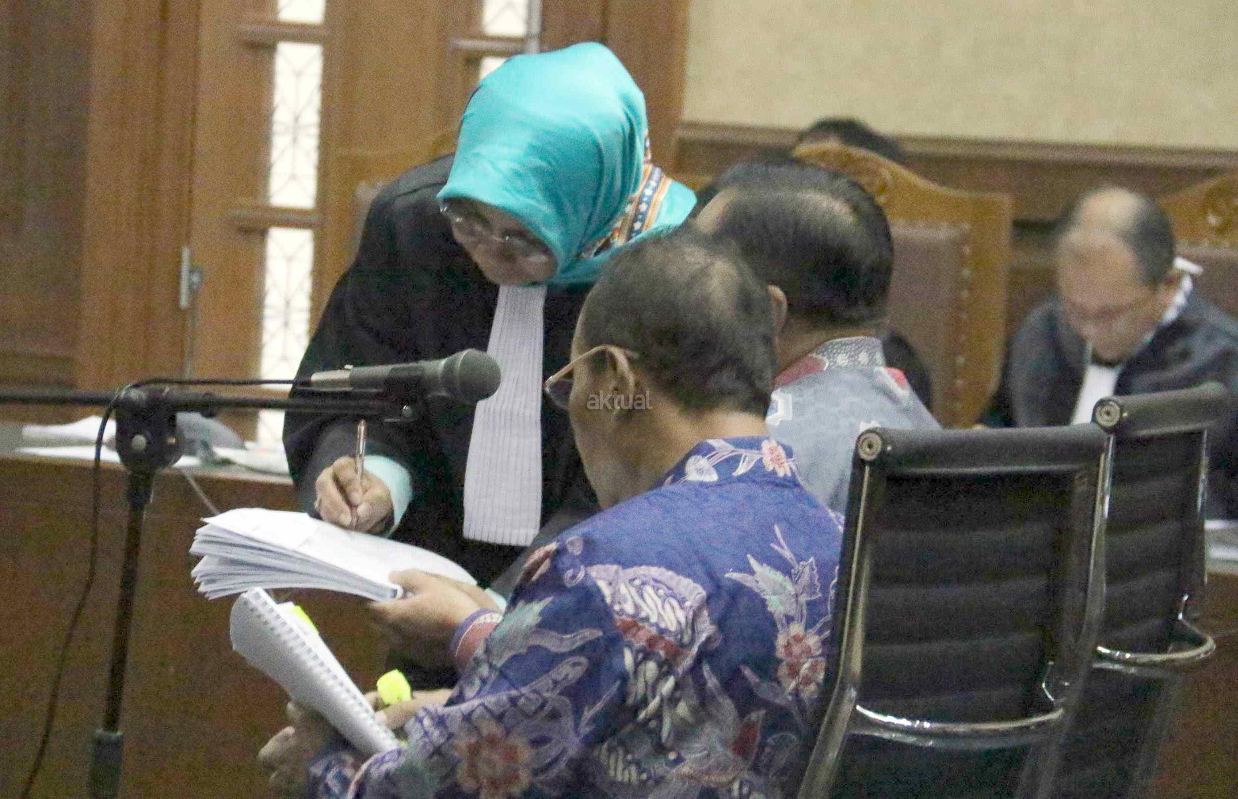 Dua terdakwa kasus dugaan korupsi pengadaan proyek e-KTP, Mantan Dirjen Kependudukan dan Pencatatan Sipil Kemendagri Irman dan Mantan Direktur Pengelolaan Informasi Administrasi Kependudukan dan Pencatatan Sipil Kemendagri Sugiharto, saat menjalani sidang perdana di Pengadilan Tipikor, Jakarta, Kamis (9/3/2017). Dalam pengusutan kasus ini, penyidik telah menyita sejumlah barang bukti di antaranya uang sebesar Rp247 miliar yang didapat dari perorangan maupun korporasi. Sehingga diduga korupsi e-KTP mengakibatkan kerugian hingga Rp2,3 triliun dari total anggaran Rp5,9 triliun.