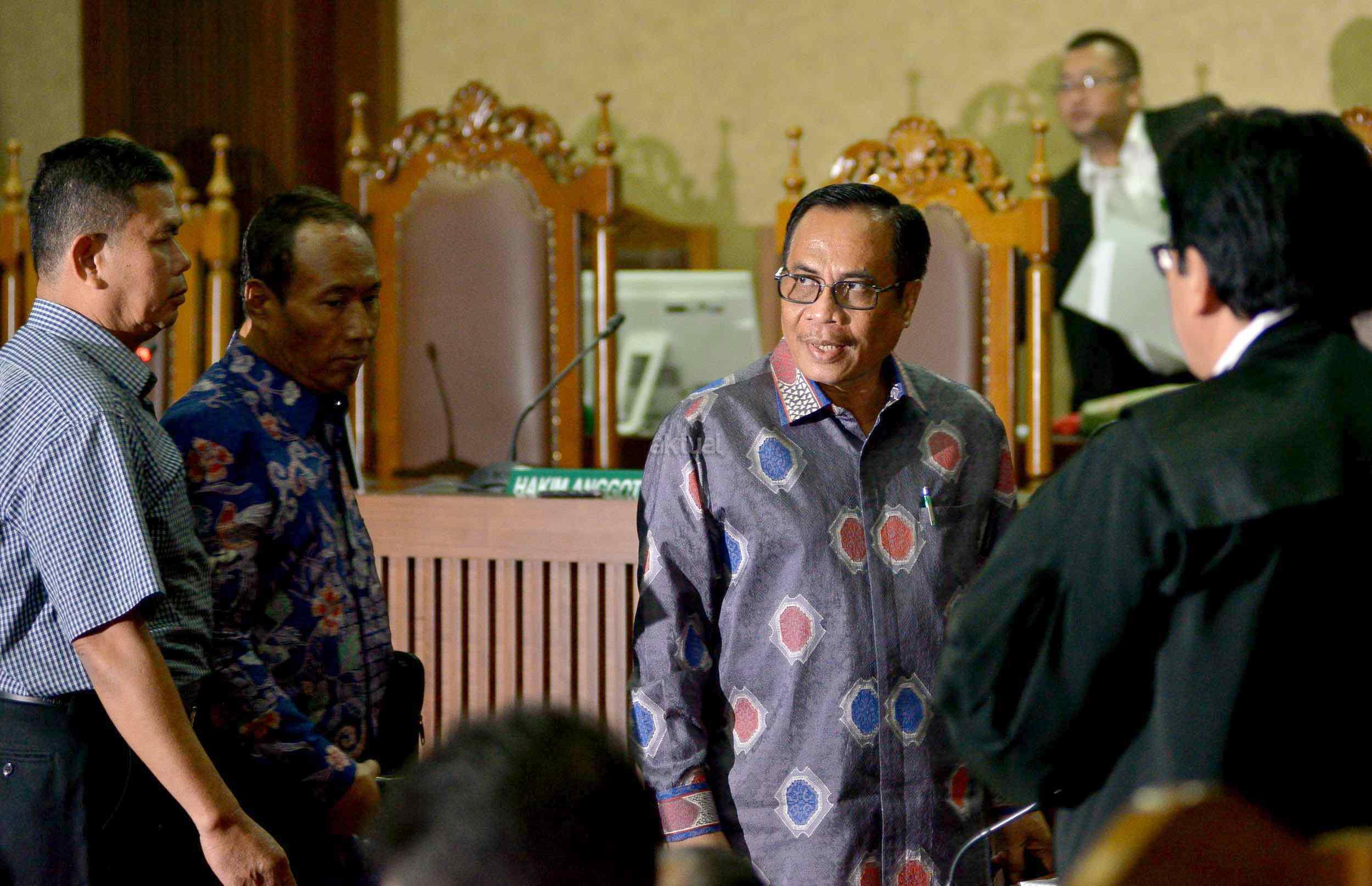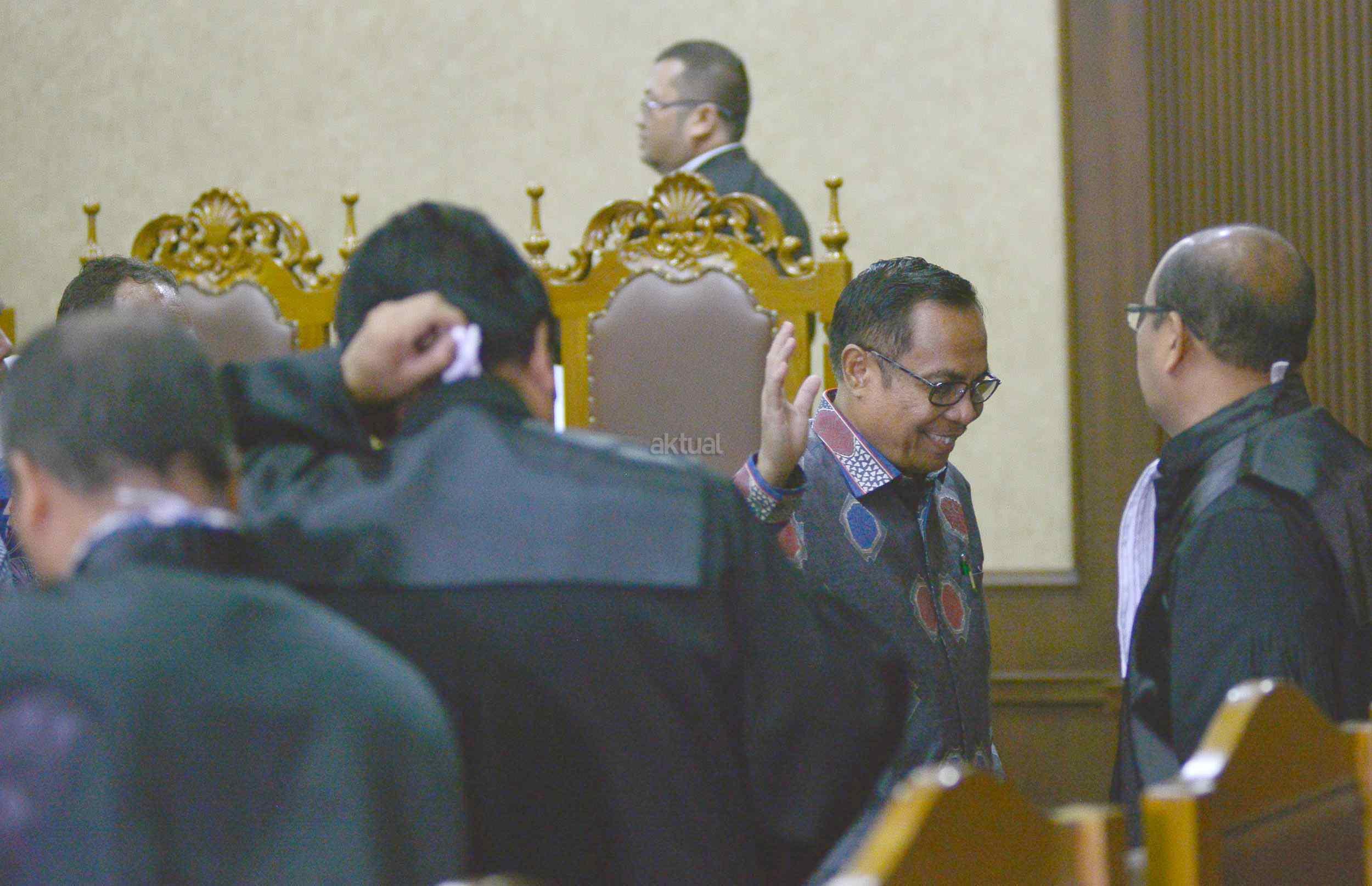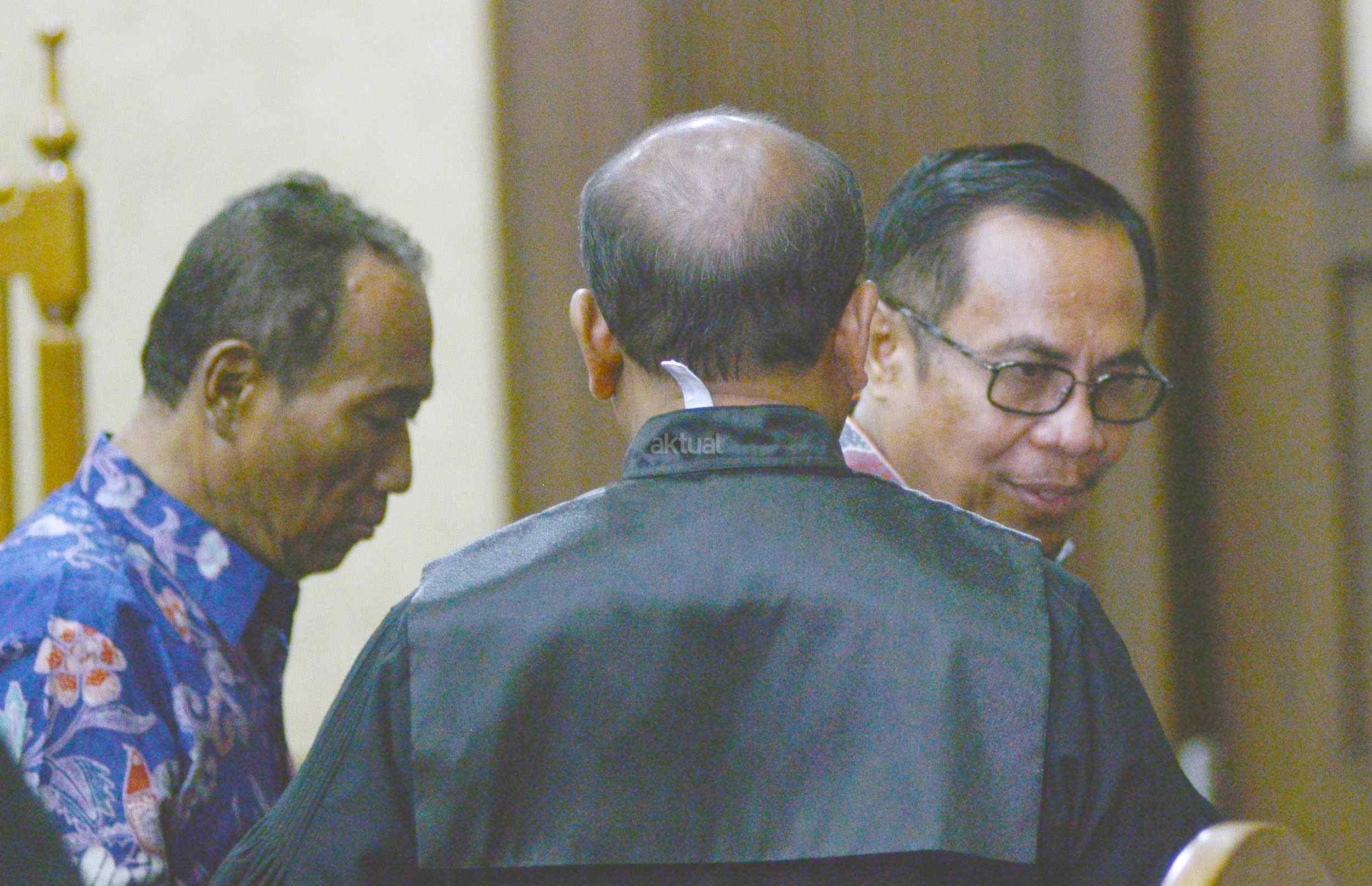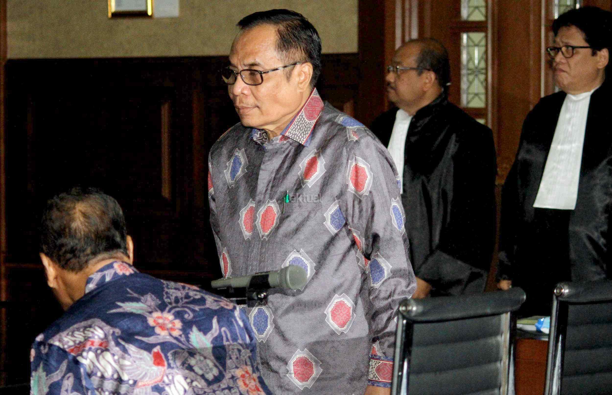Dua terdakwa kasus dugaan korupsi pengadaan proyek e-KTP, Mantan Dirjen Kependudukan dan Pencatatan Sipil Kemendagri Irman dan Mantan Direktur Pengelolaan Informasi Administrasi Kependudukan dan Pencatatan Sipil Kemendagri Sugiharto, saat menjalani sidang perdana di Pengadilan Tipikor, Jakarta, Kamis (9/3/2017). Dalam pengusutan kasus ini, penyidik telah menyita sejumlah barang bukti di antaranya uang sebesar Rp247 miliar yang didapat dari perorangan maupun korporasi. Sehingga diduga korupsi e-KTP mengakibatkan kerugian hingga Rp2,3 triliun dari total anggaran Rp5,9 triliun.
