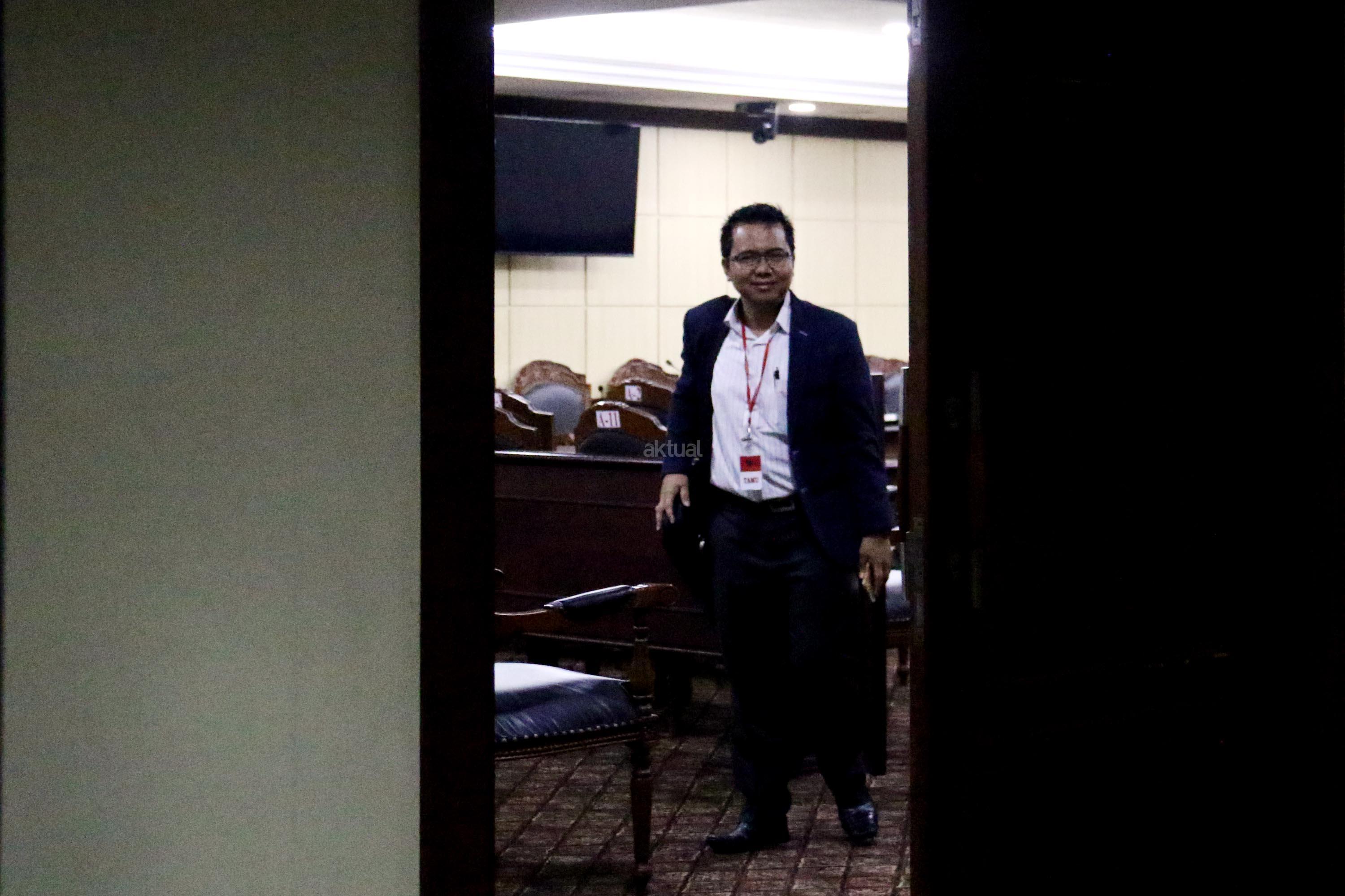 Pemohon Muhammad Soleh keluar dari ruangan usai mengikuti sidang perdana uji materi Pengelolaan Keuangan Haji di pengadilan Mahkamah Konstitusi (MK), Jakarta, Rabu (23/8/2017). Dalam sidang perdana uji materi Pengelolaan Keuangan Haji oleh pemohon Muhammad Soleh merasa telah terjadi pelanggaran hak konstitusional yaitu telah berlaku sewenang-wenang karena memberi mandat kepada Badan Pengelola Keuangan Haji (BPKH) menggunakan dana setoran awal Biaya Penyelenggaraan Ibadah Haji (BPIH) milik Pemohon untuk berinvestasi, padahal pemohon tidak pernah memberikan mandat kepada pembuat UU terkait diperbolehkannya investasi. AKTUAL/Munzir