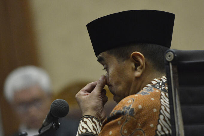 Terdakwa kasus dugaan korupsi dana tahun anggaran 2013-2014 dan dana tugas pembantuan Direktorat Pembinaan Pembangunan Kawasan Transmigrasi (P2KT) Kemenakertrans Jamaluddin Malik menjalani sidang pledoi di Pengadilan Tipikor, Jakarta, Rabu (16/3). Dalam pledoi tersebut, kuasa hukum Jamaluddin menolak tuntutan yang diajukan jaksa penuntut umum. ANTARA FOTO/Rosa Panggabean/foc/16.
