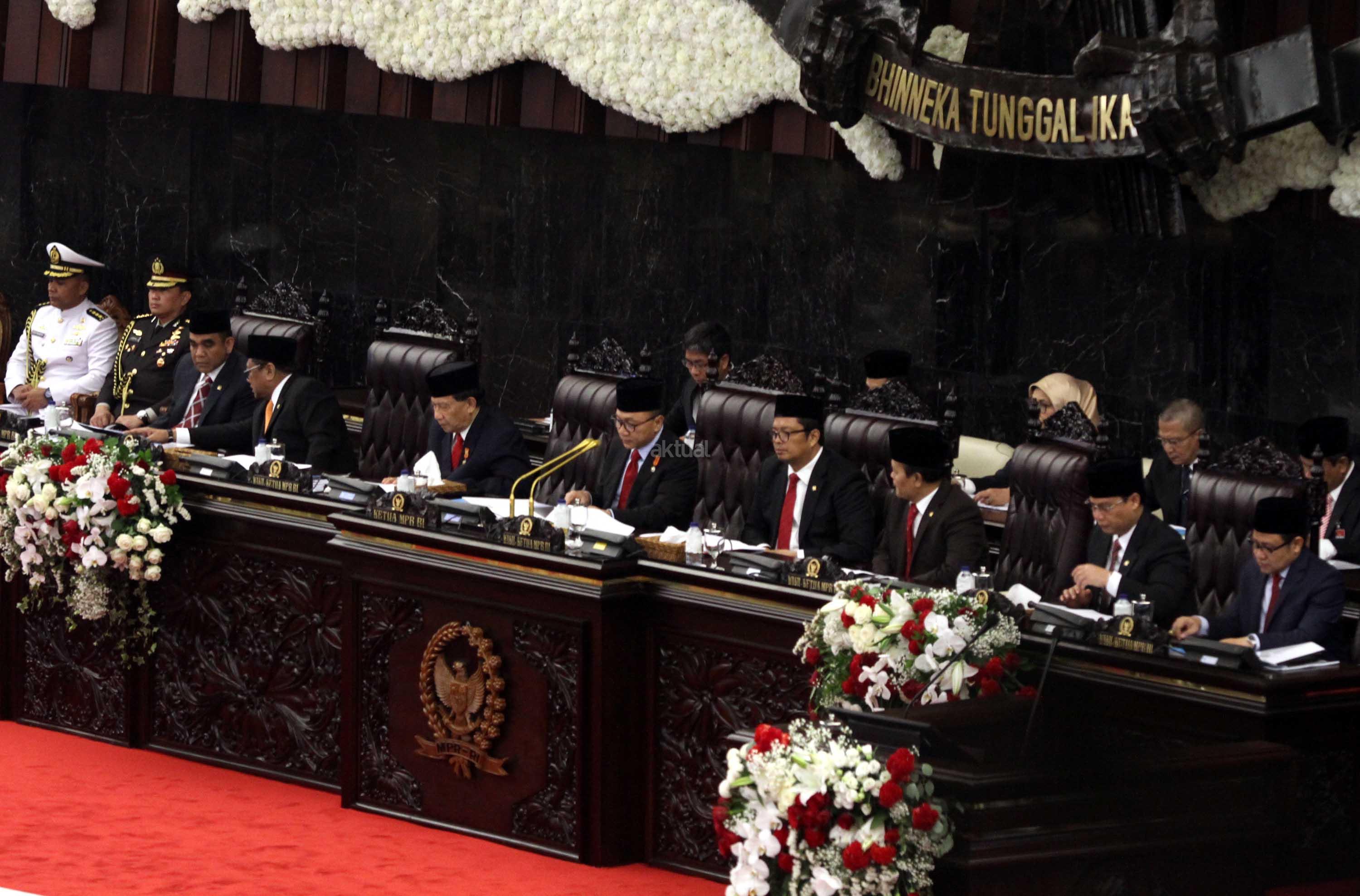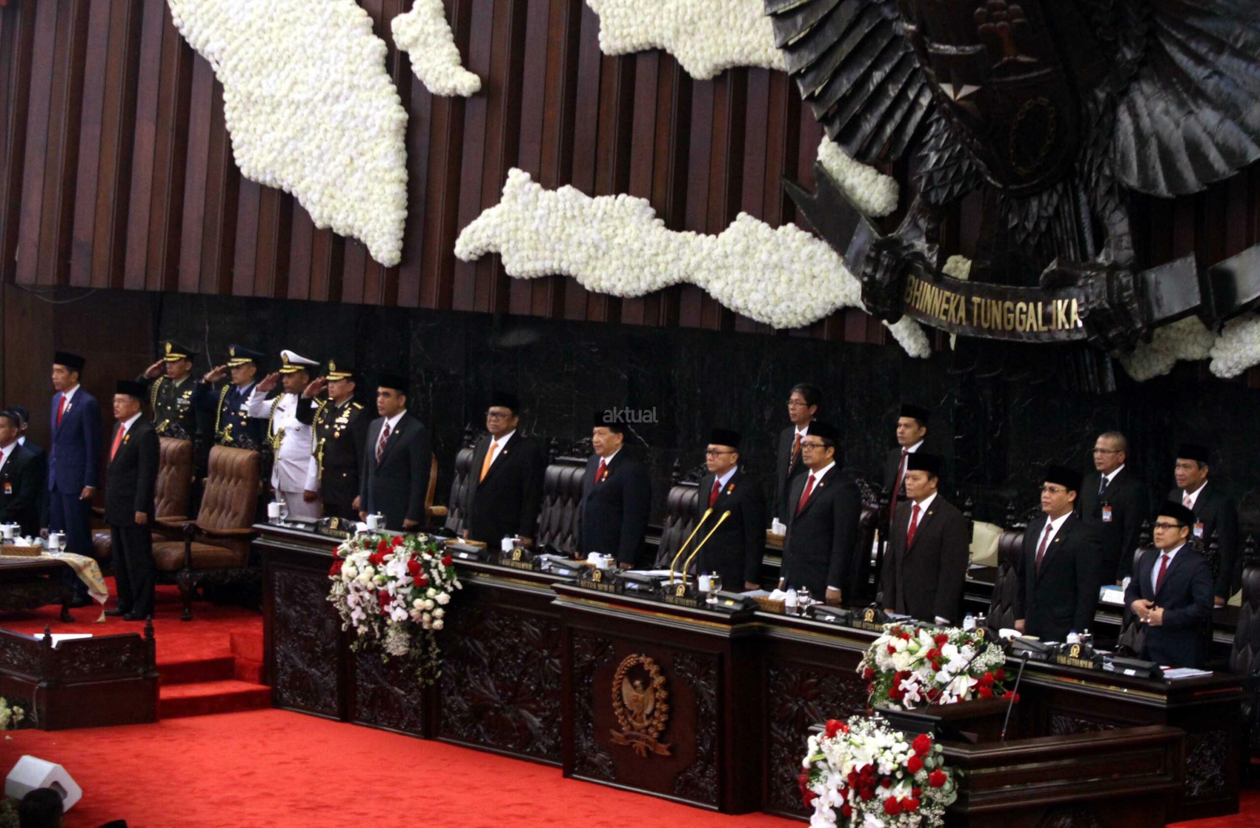 Suasana Sidang Tahunan MPR di Kompleks Parlemen, Senayan, Jakarta, Kamis (16/8). Sidang Tahunan MPR masih dalam satu rangkaian sidang bersama DPR-DPD, dan sidang DPR penyampaian nota keuangan RAPBN 2019. Sidang Tahunan MPR dilaksanakan pagi hari dilanjutkan sidang bersama DPR-DPD, dan sidang penyampaian nota keuangan. AKTUAL/Tino Oktaviano
